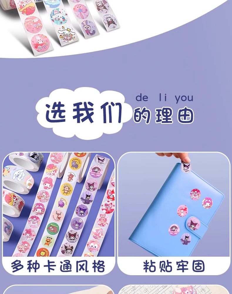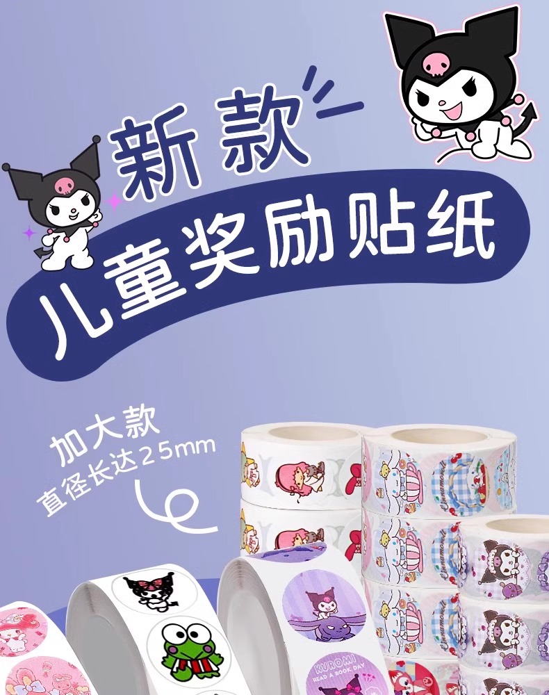 库洛米女孩贴纸儿童卡通手账三丽鸥玩具幼儿园奖励表扬公主贴纸