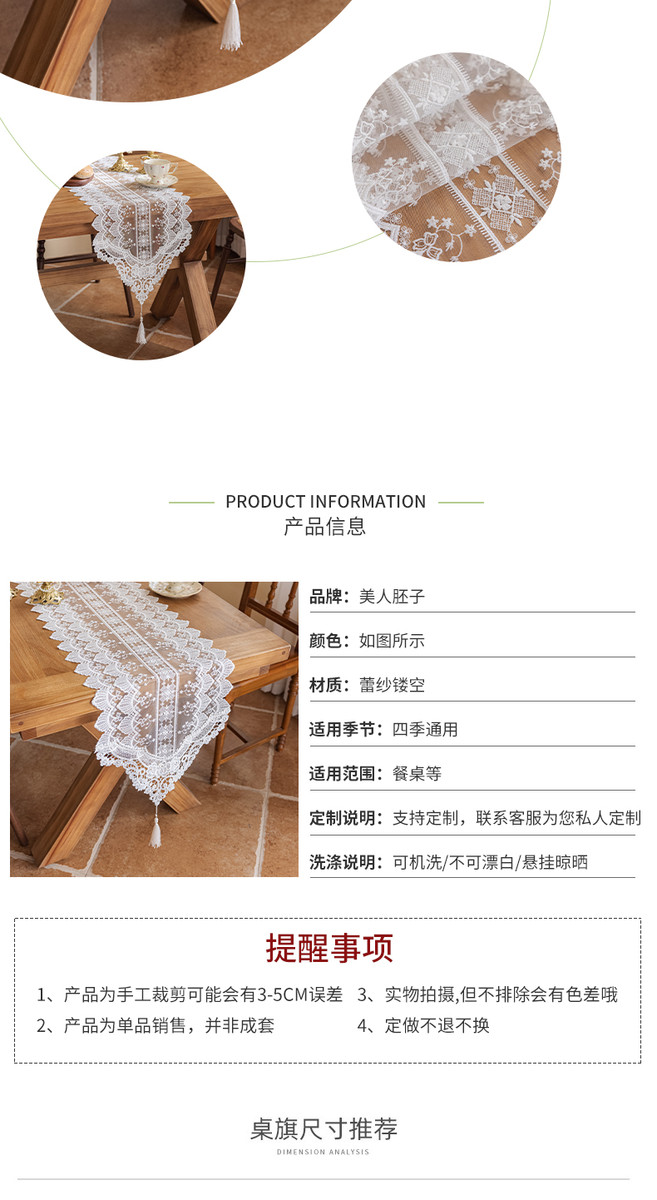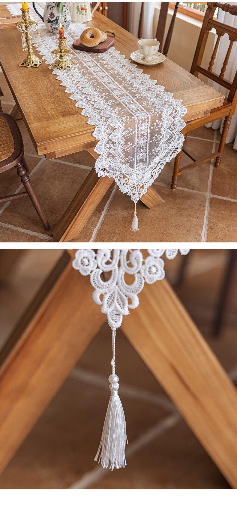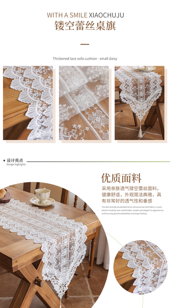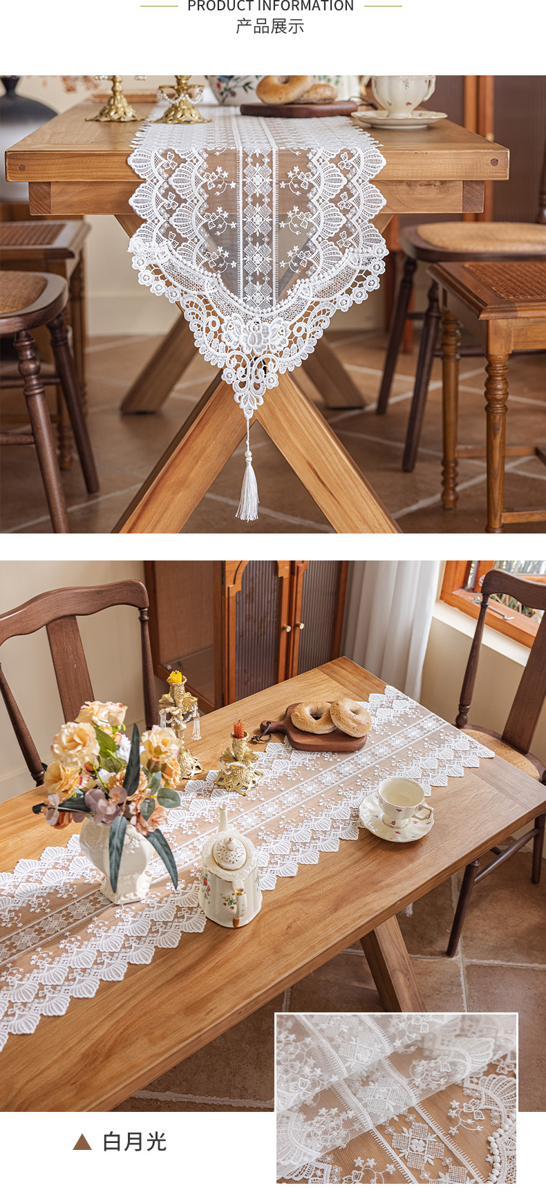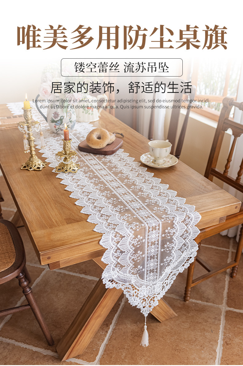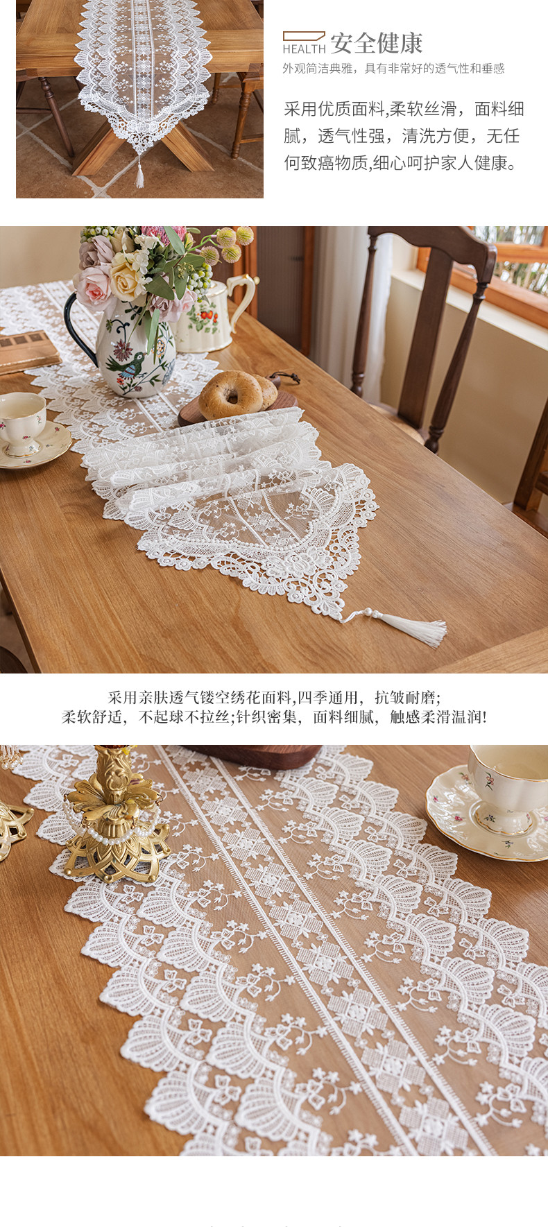 高级感白色蕾丝镂空绣花桌旗斗柜长条桌布茶几法式电视柜盖巾垫