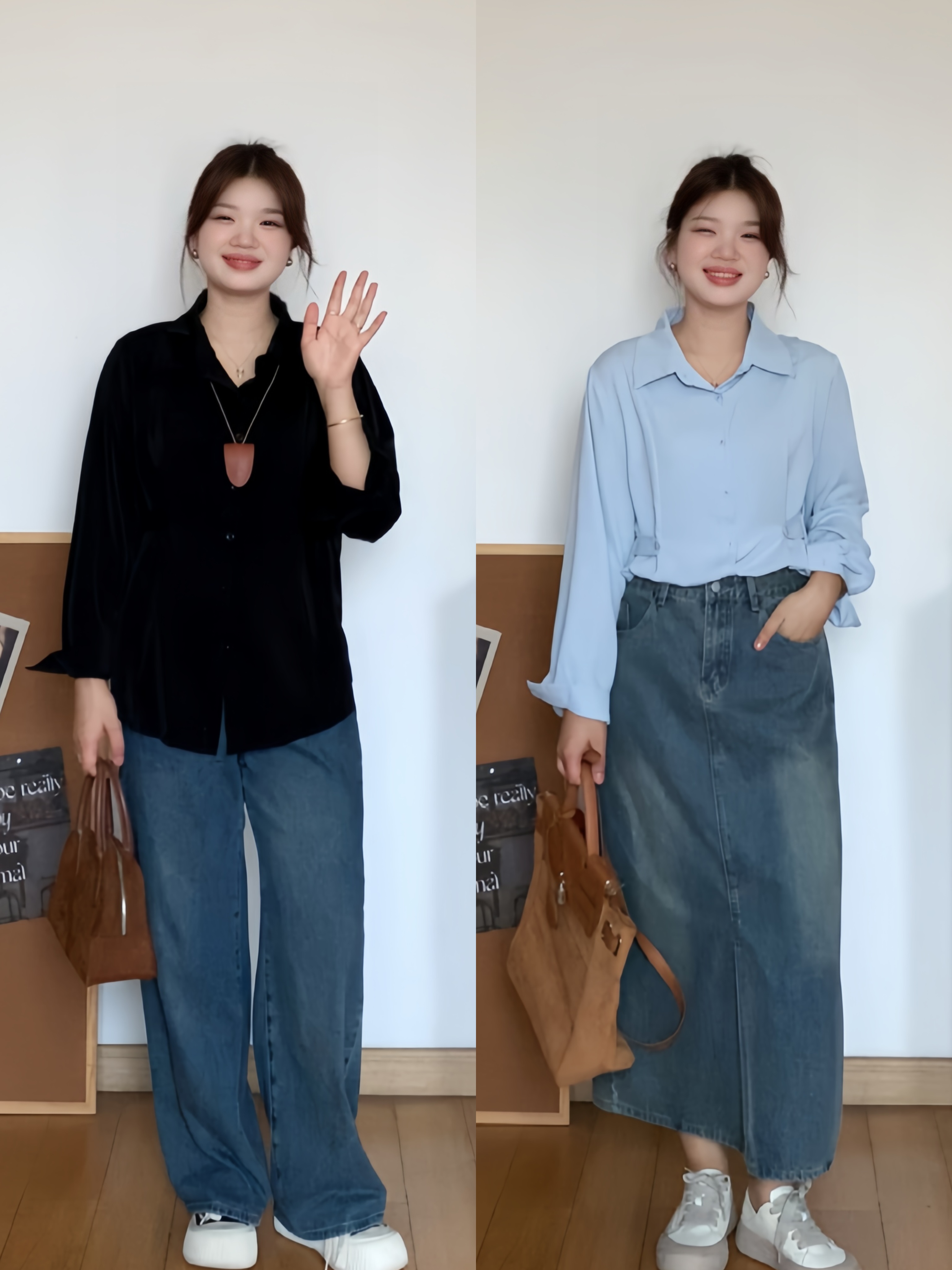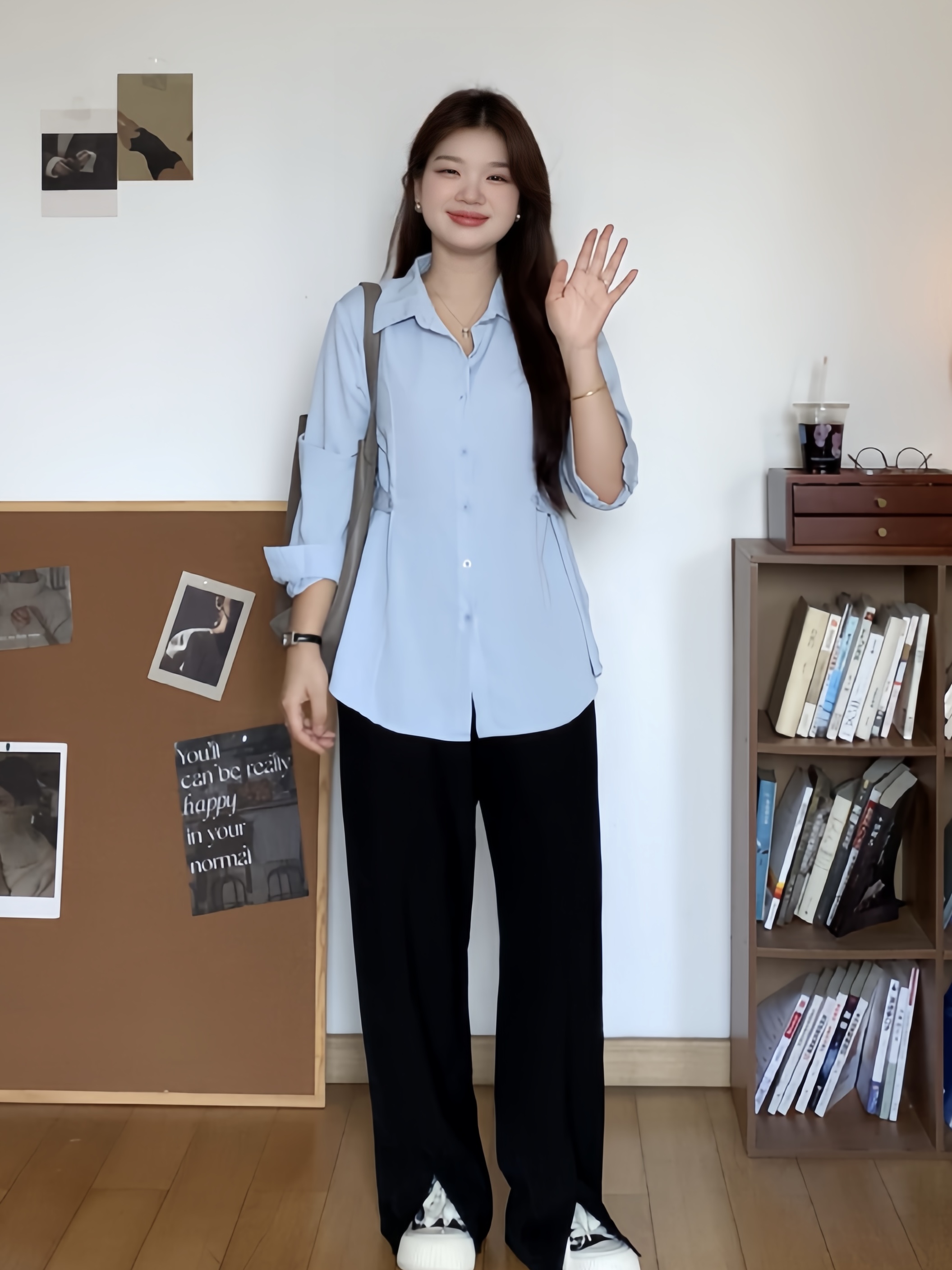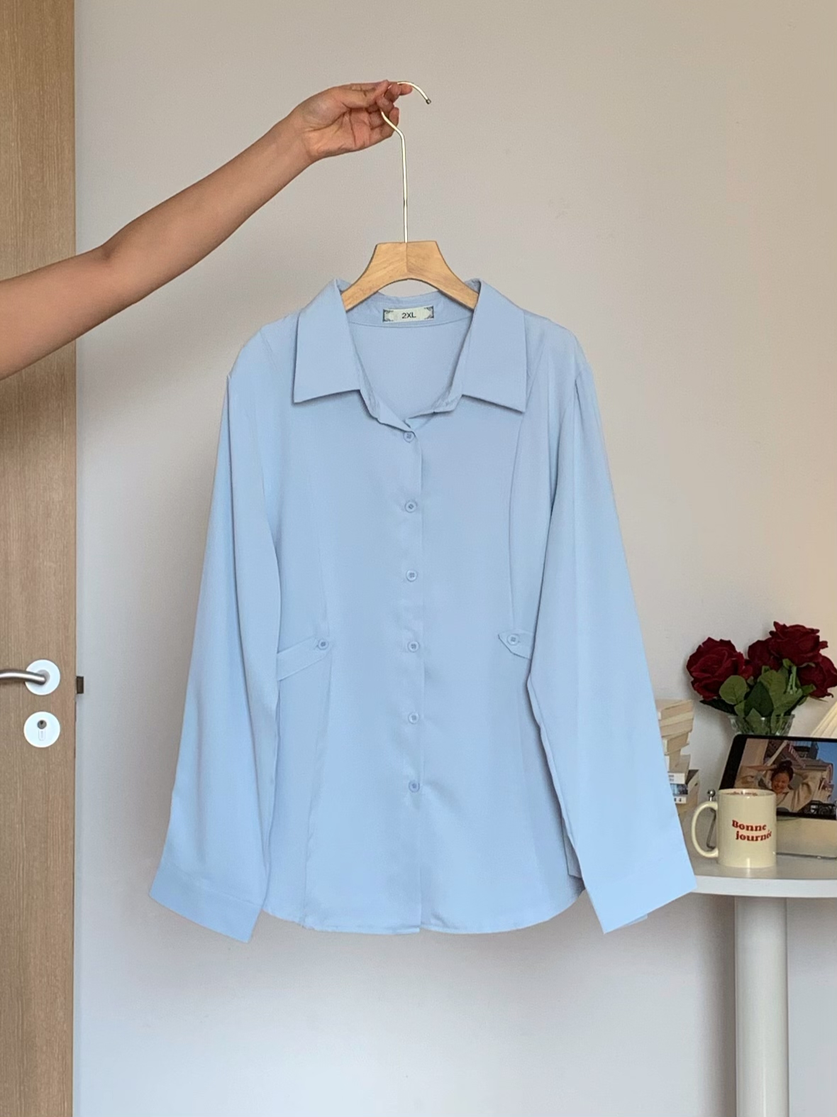 微胖的喵喵大码女装梨形身材mm春季宽松显瘦收腰衬衫长袖上衣0109