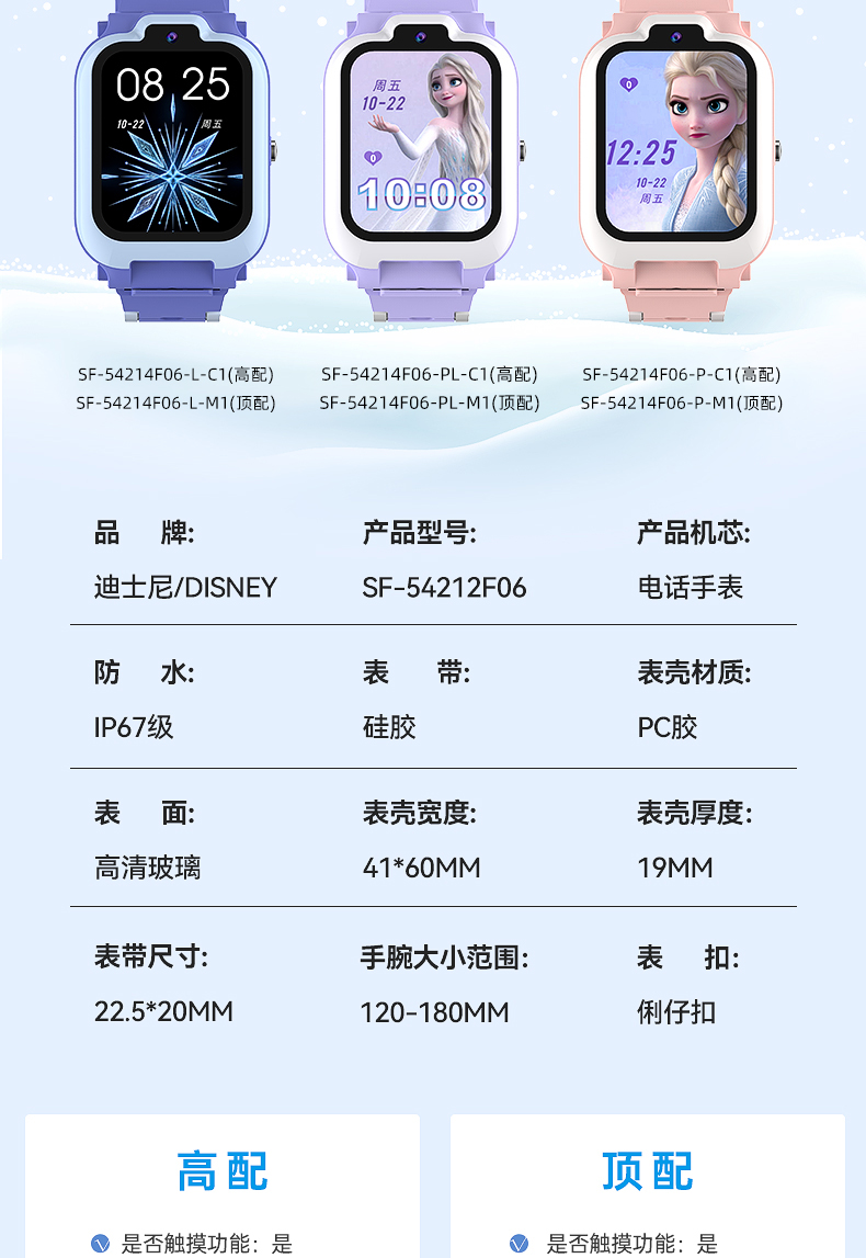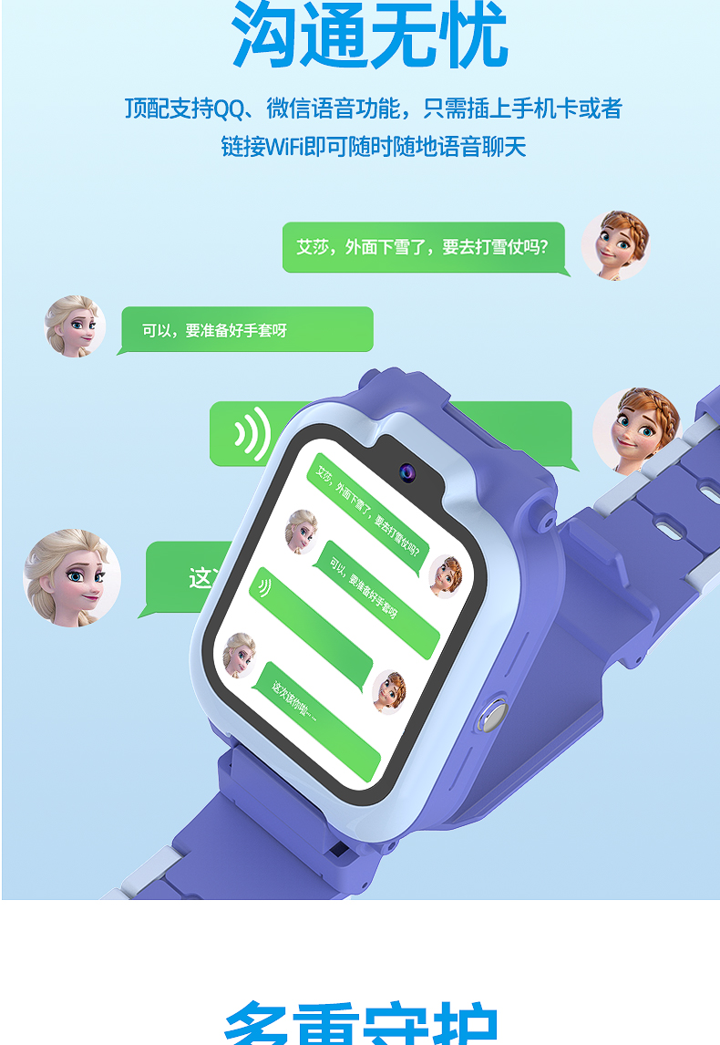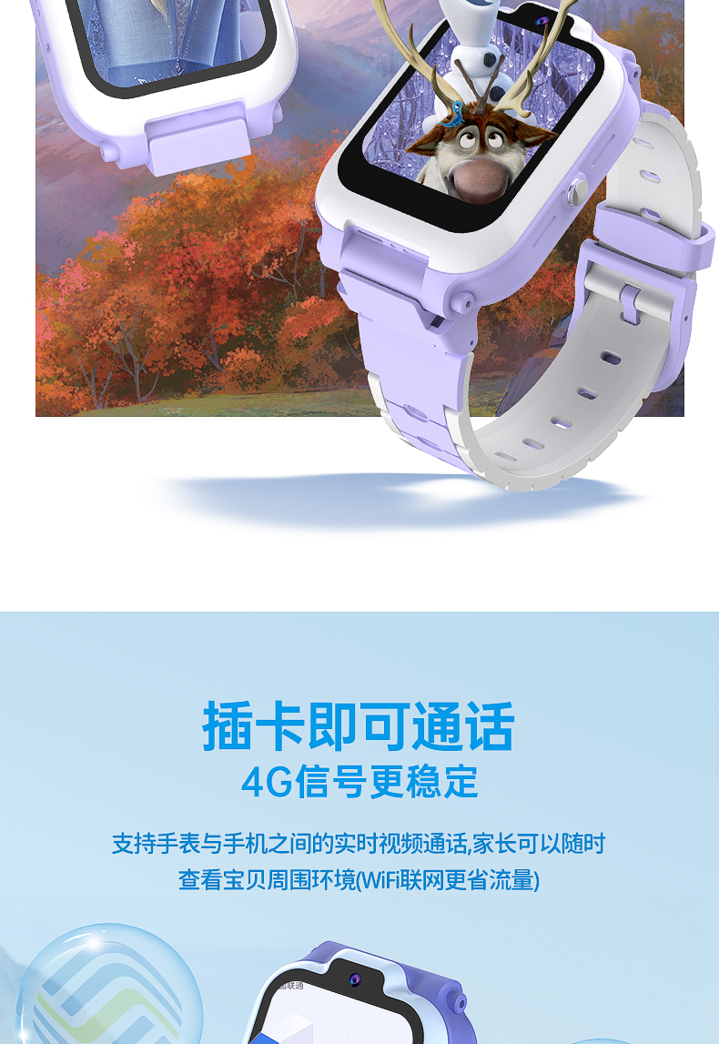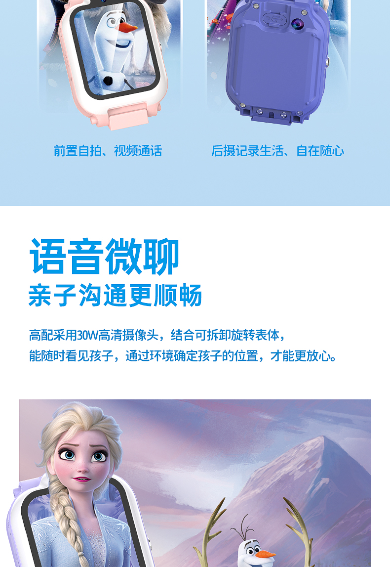 迪士尼儿童电话手表女孩艾莎公主冰雪奇缘小学生天才女童智能手表