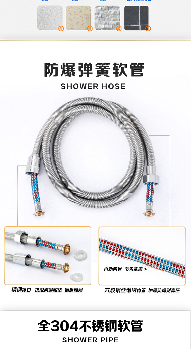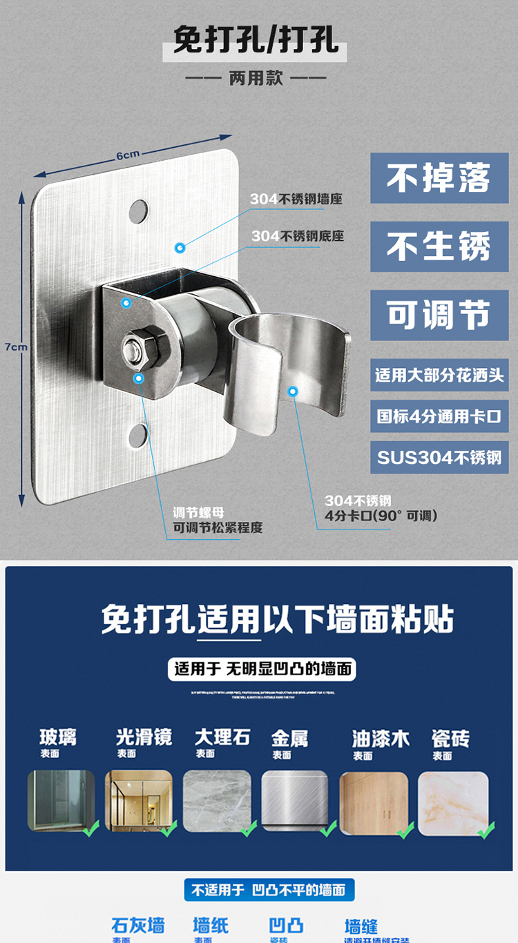 增压淋浴花洒喷头通用304不锈钢套装家用加压洗澡挂墙式晒水龙头