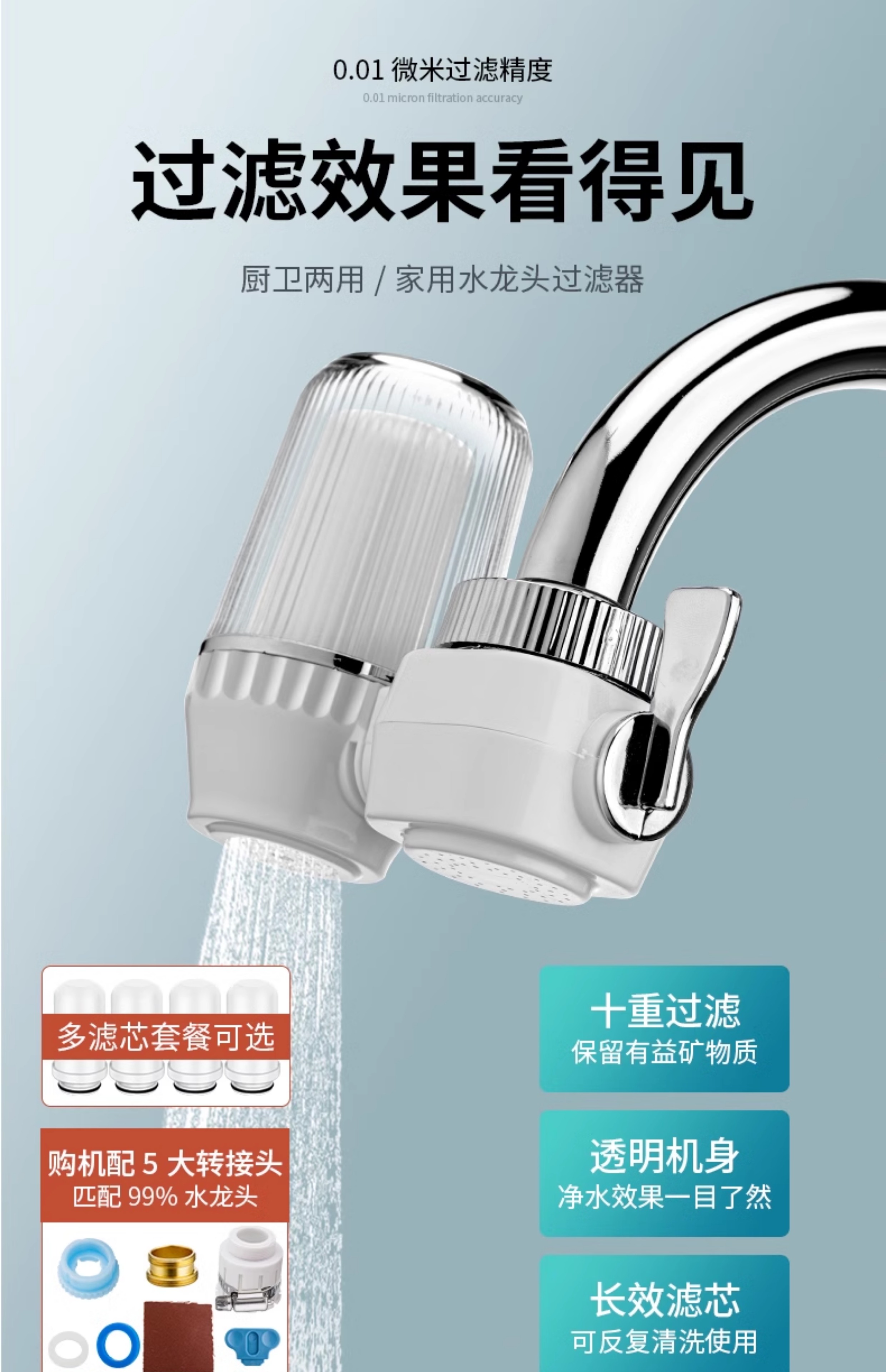 水龙头净水器过滤器家用厨房自来水前置过滤器直饮净水机滤水器
