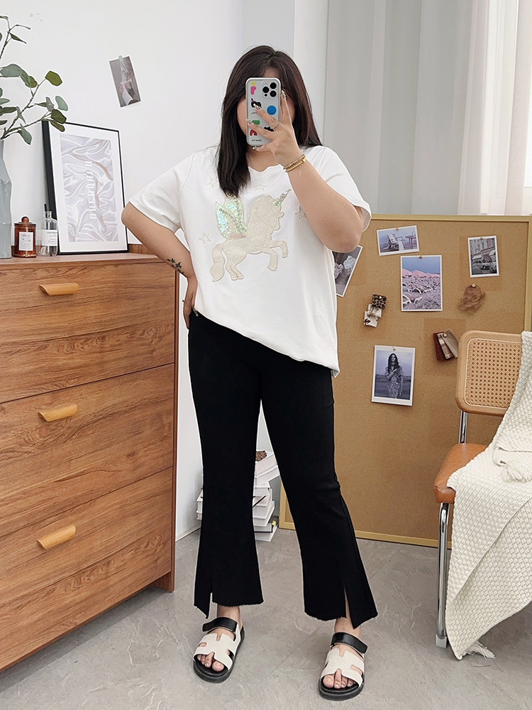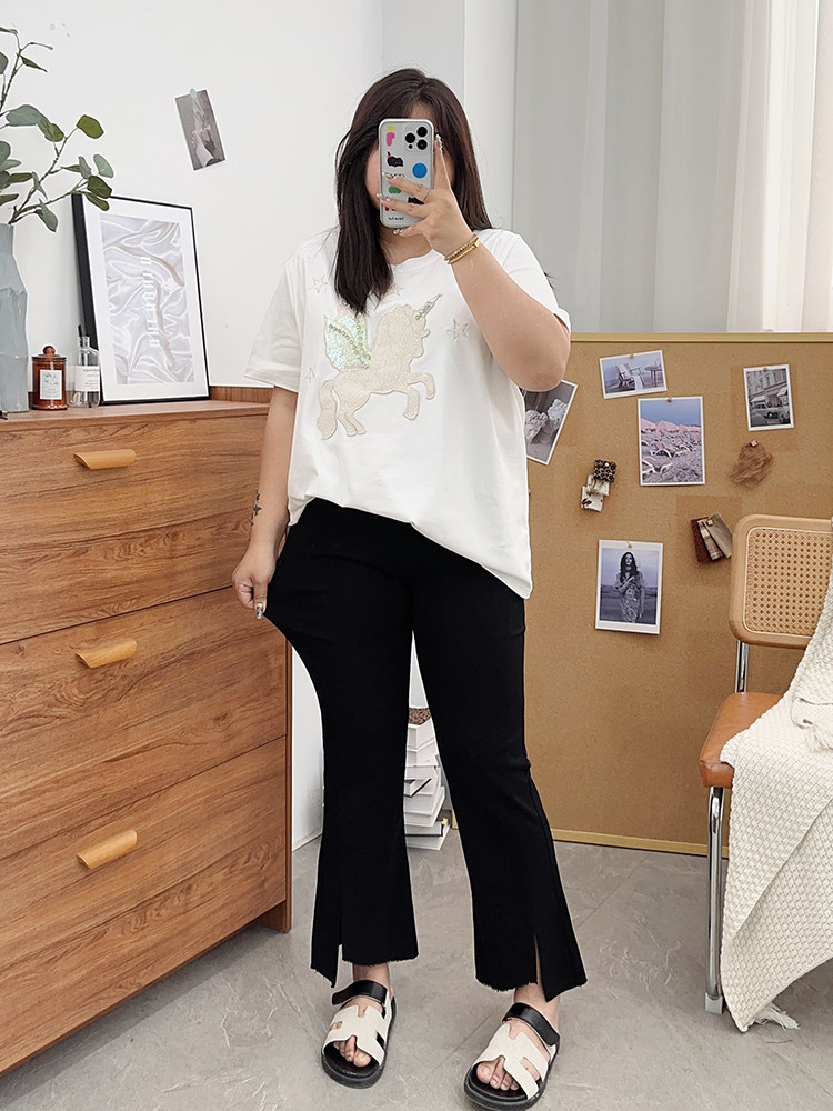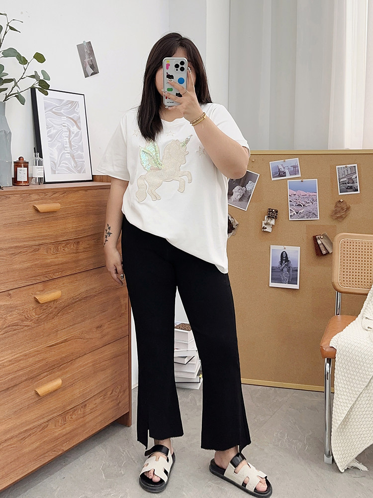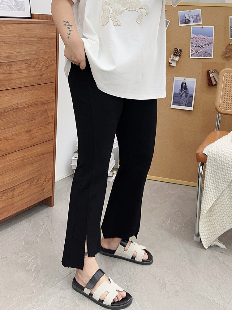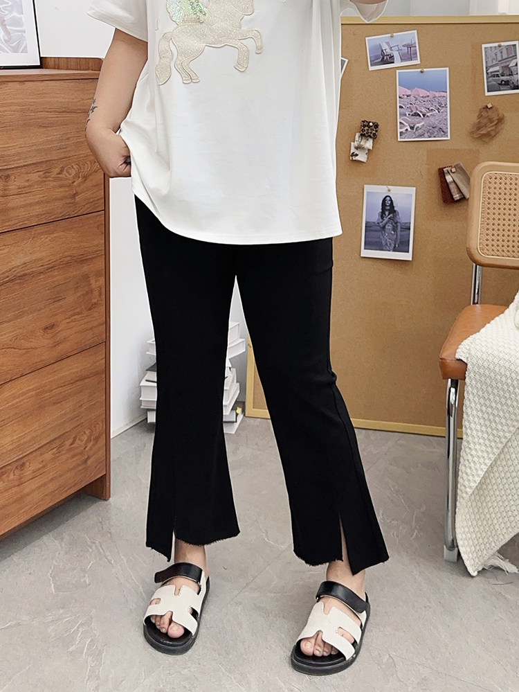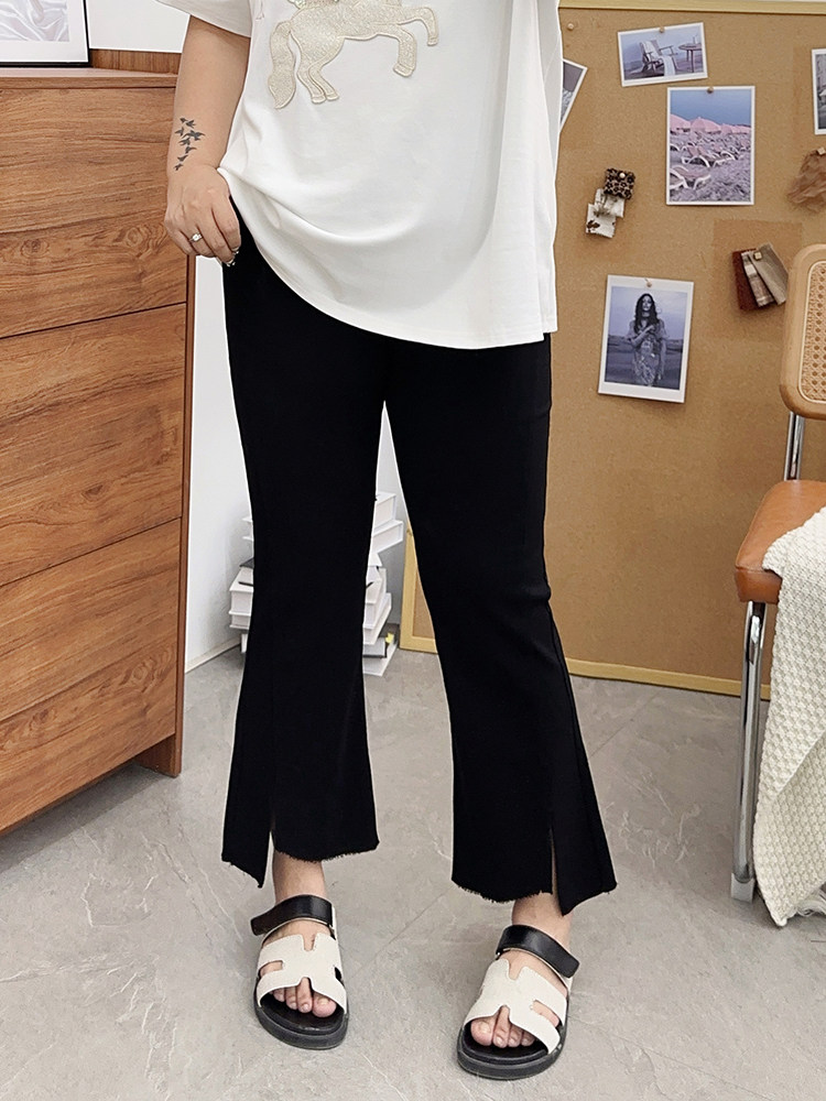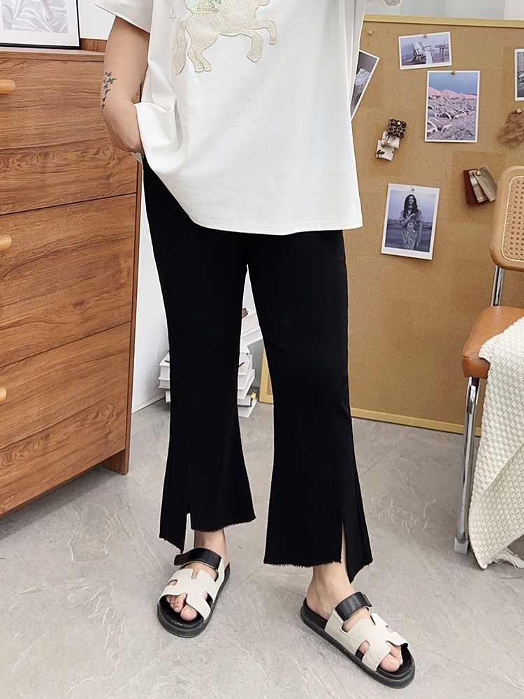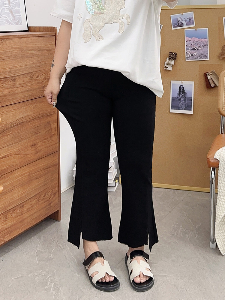 夏装胖mm九分裤女冰丝微胖微喇叭裤大码开叉显瘦200斤百搭裤子潮