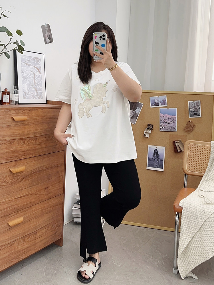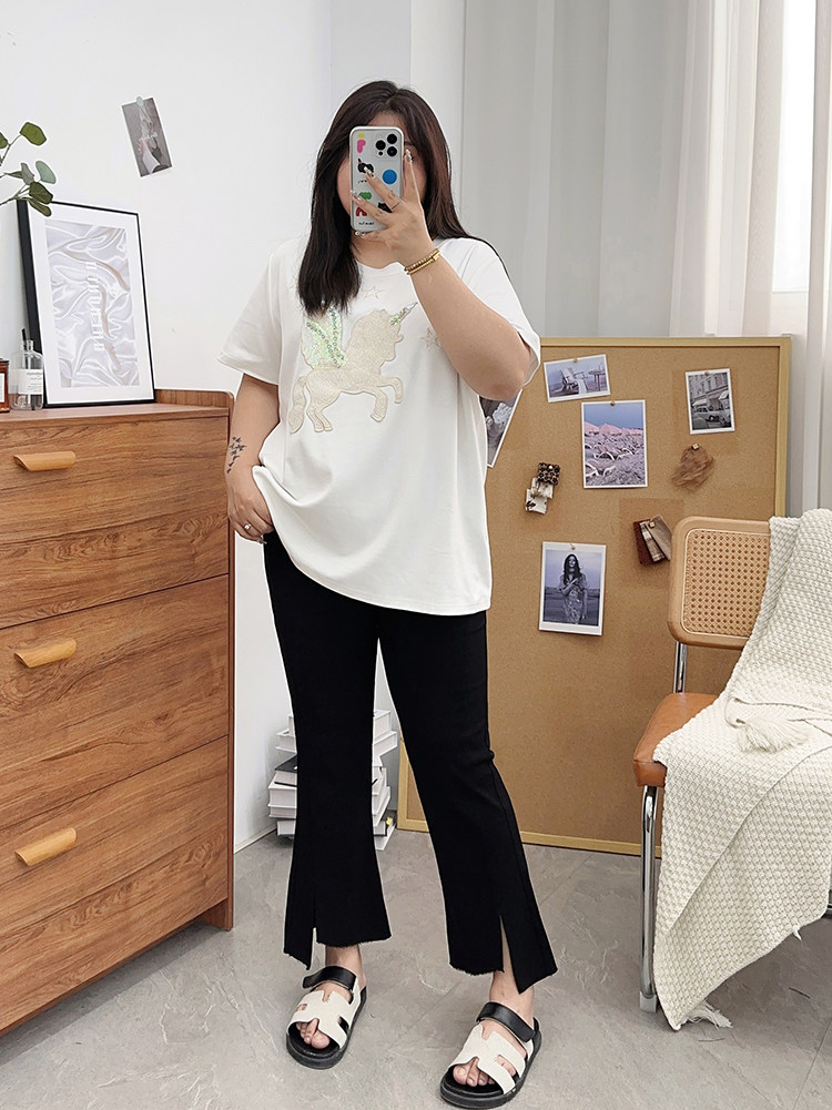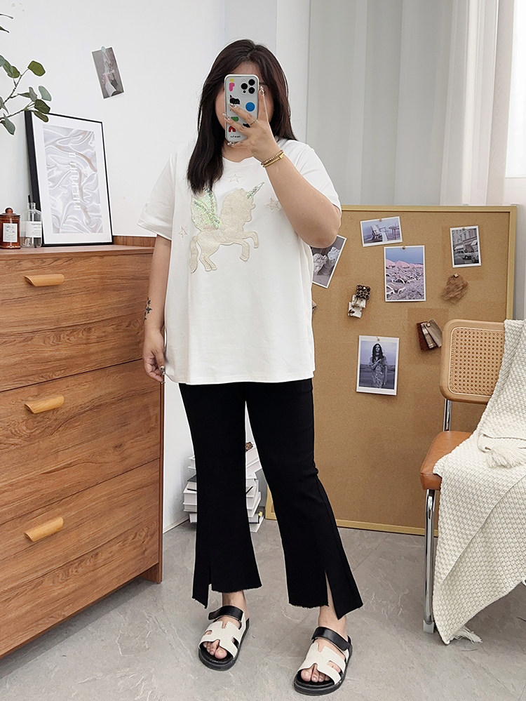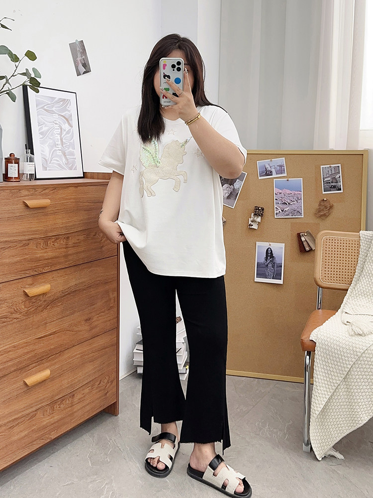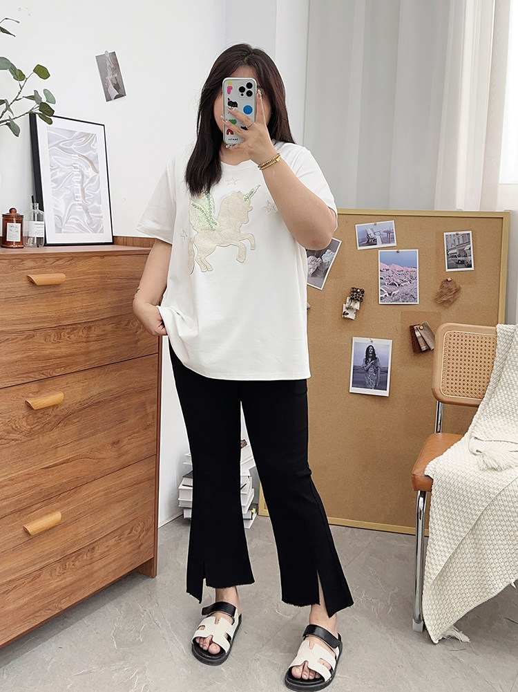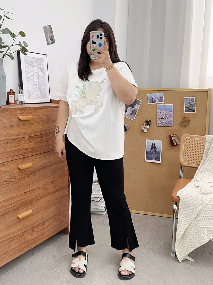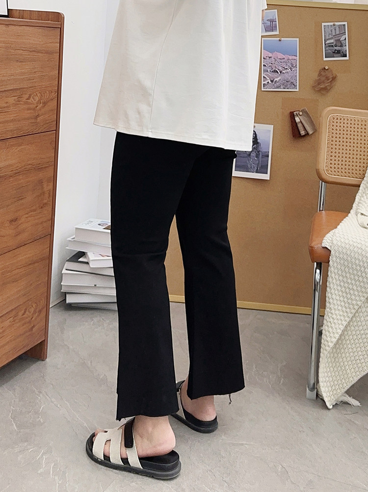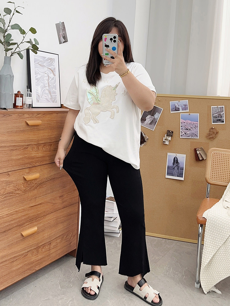 夏装胖mm九分裤女冰丝微胖微喇叭裤大码开叉显瘦200斤百搭裤子潮