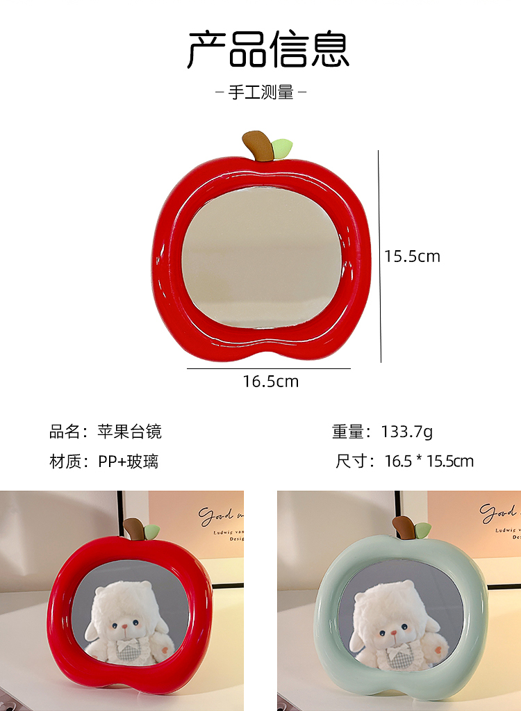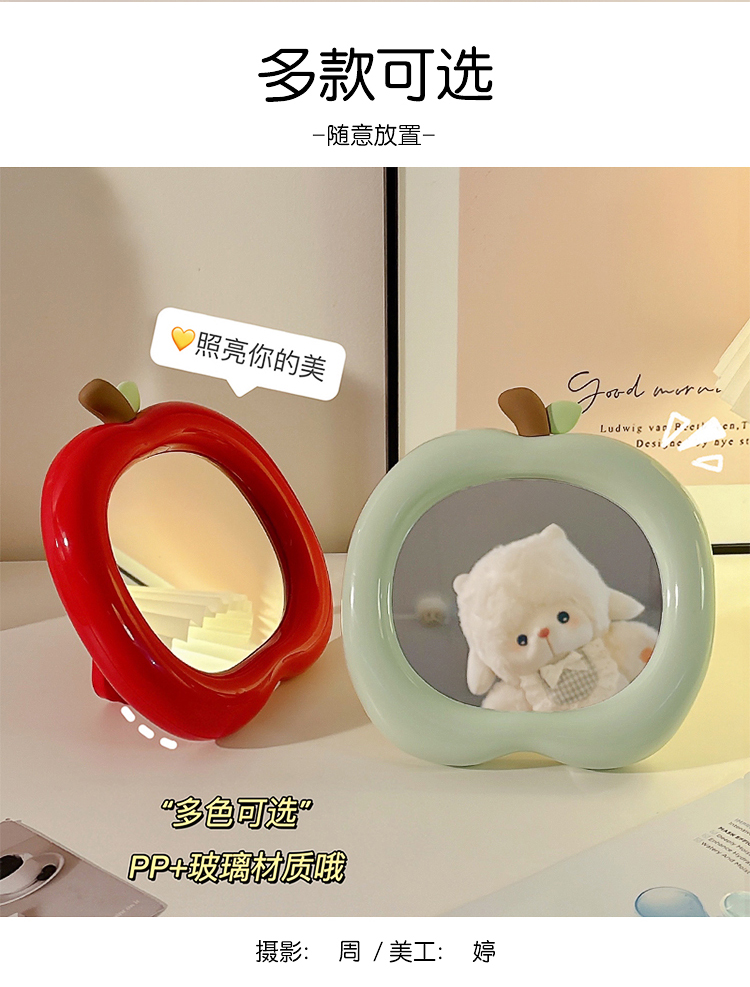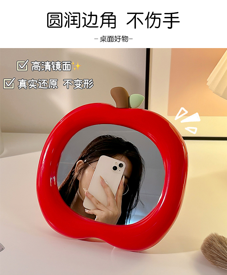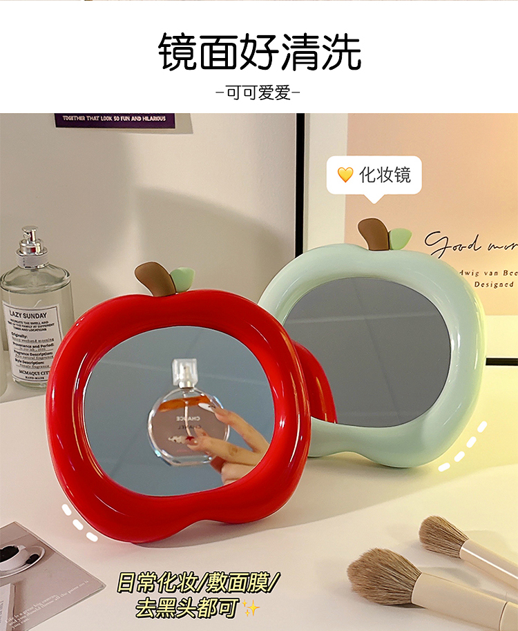苹果化妆镜学生宿舍办公室桌面台式可立随身可爱小镜子便携梳妆镜