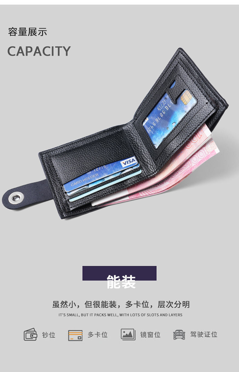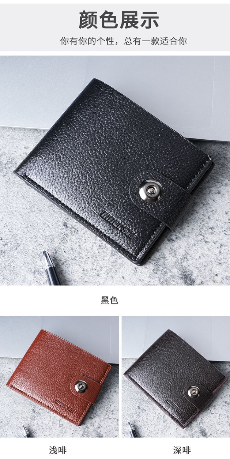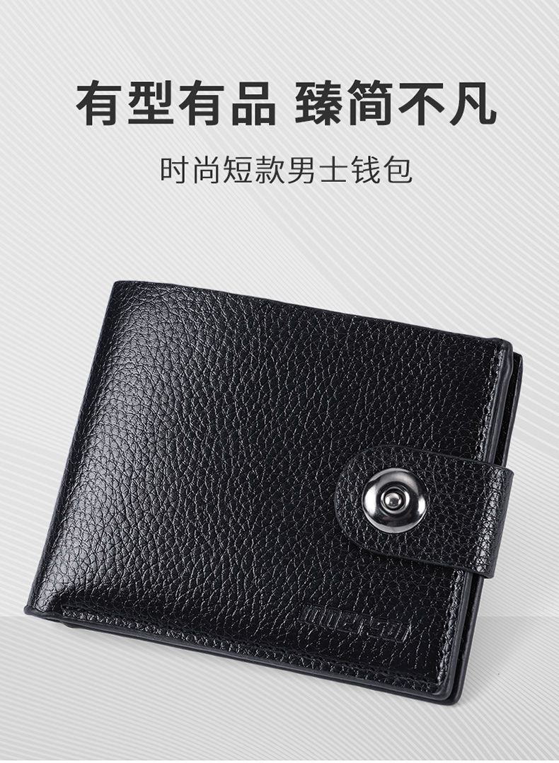 休闲复古男士钱包短款2025新款带拉链带扣大容量荔枝纹横款软皮夹