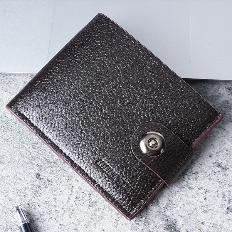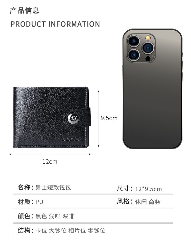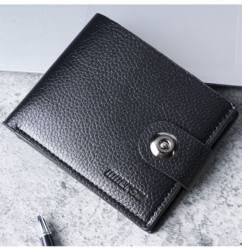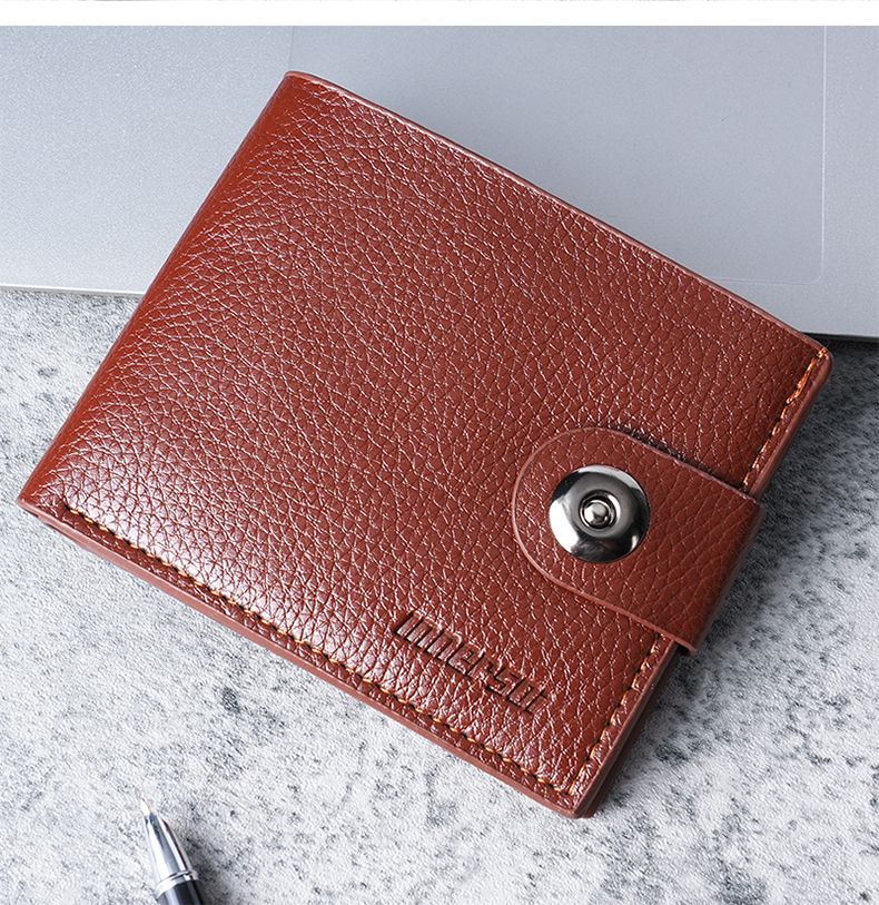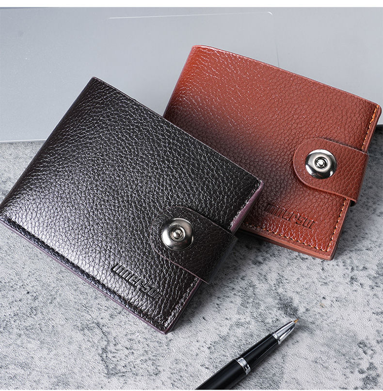 休闲复古男士钱包短款2025新款带拉链带扣大容量荔枝纹横款软皮夹