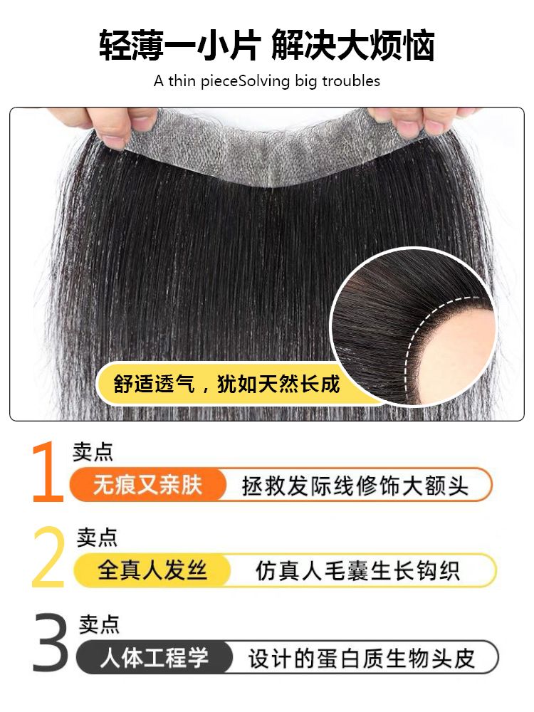 女发际线假发贴片真发前额刘海生物头皮隐形胎毛无痕鬓角补发神器