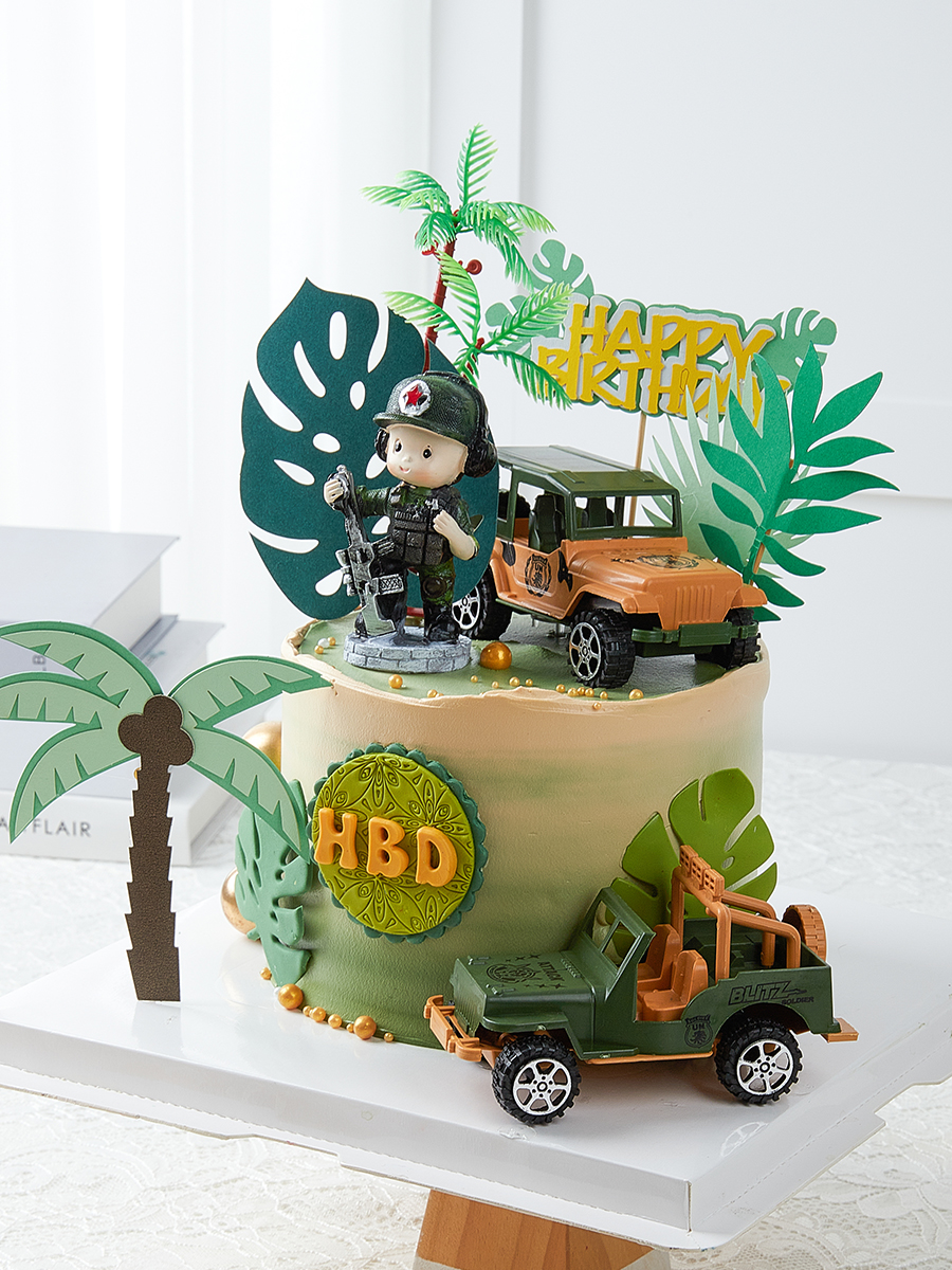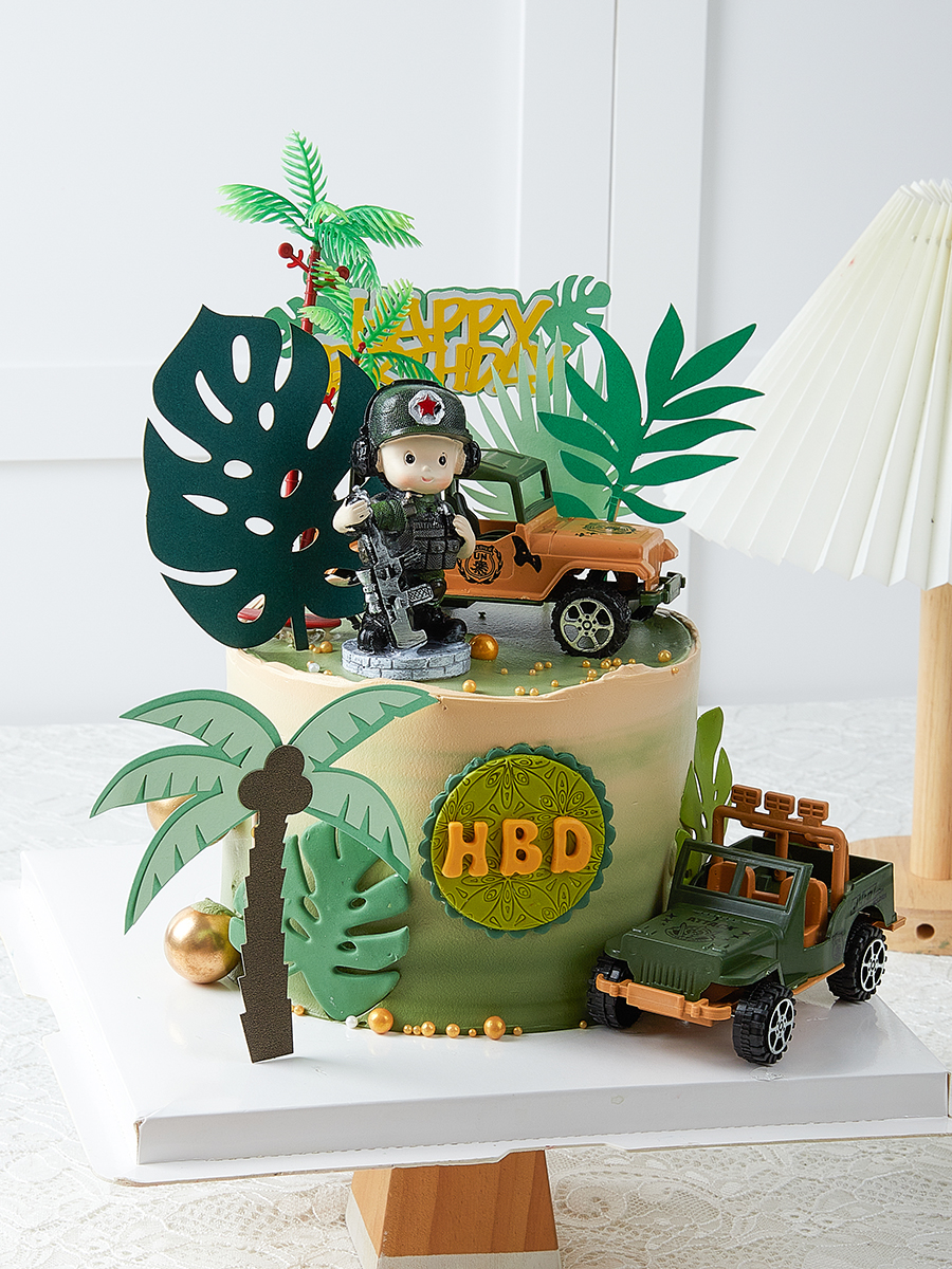 10.1特种兵蛋糕装饰摆件男孩军事车椰树英雄国庆节日烘焙配件插
