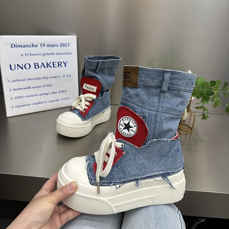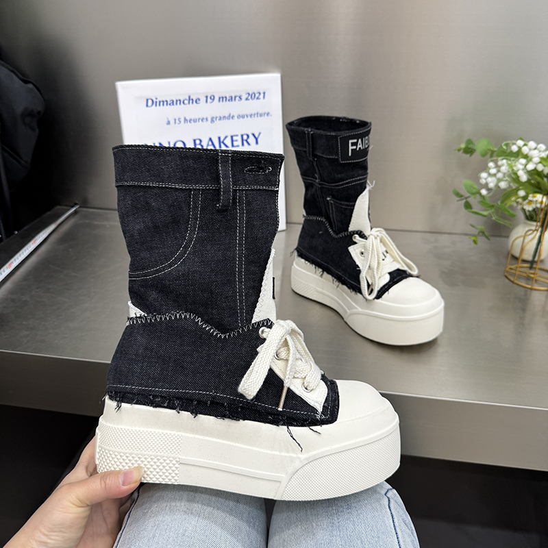 2025新款厚底松糕高帮鞋凉鞋时尚百搭水钻舒适休闲运动鞋鞋布靴子
