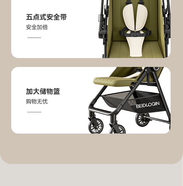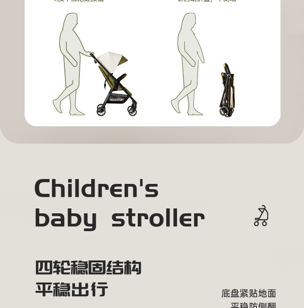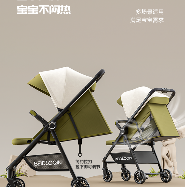 婴儿车口袋推车可坐可躺0到3岁遛娃神器轻便可折叠双向新生婴幼儿
