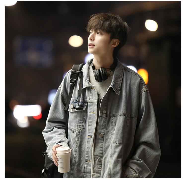 春秋季新款牛仔衣夹克男士美式高街潮牌工装复古潮流外套薄款黑色