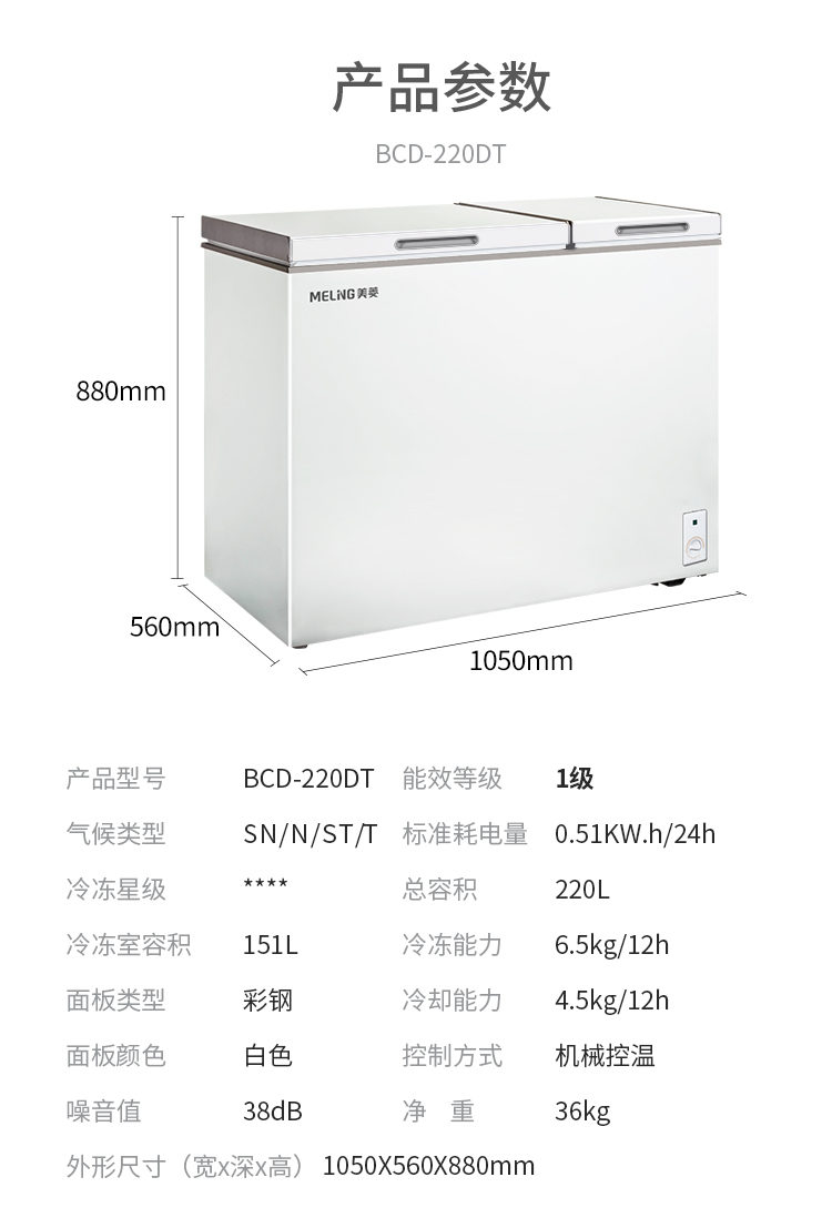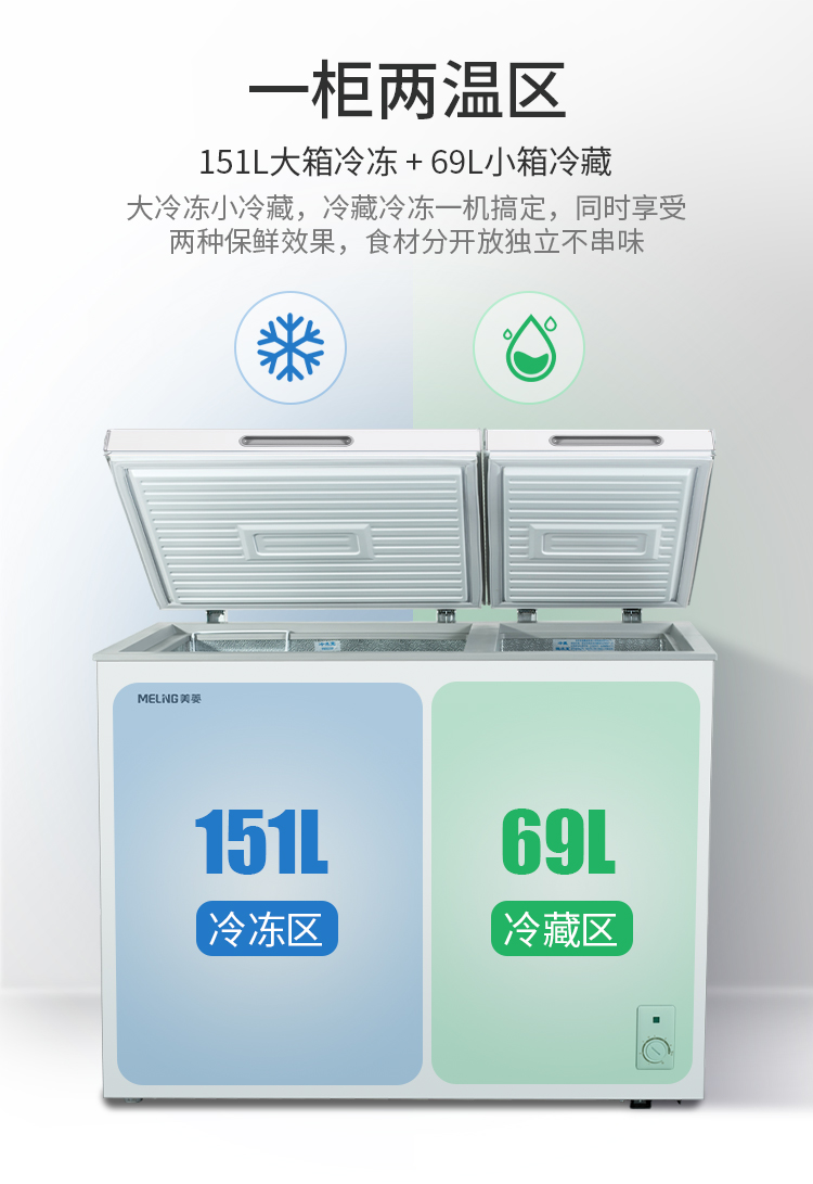 美菱220L小型双温家用大容量商用冷藏冷冻囤货冰柜政府补贴