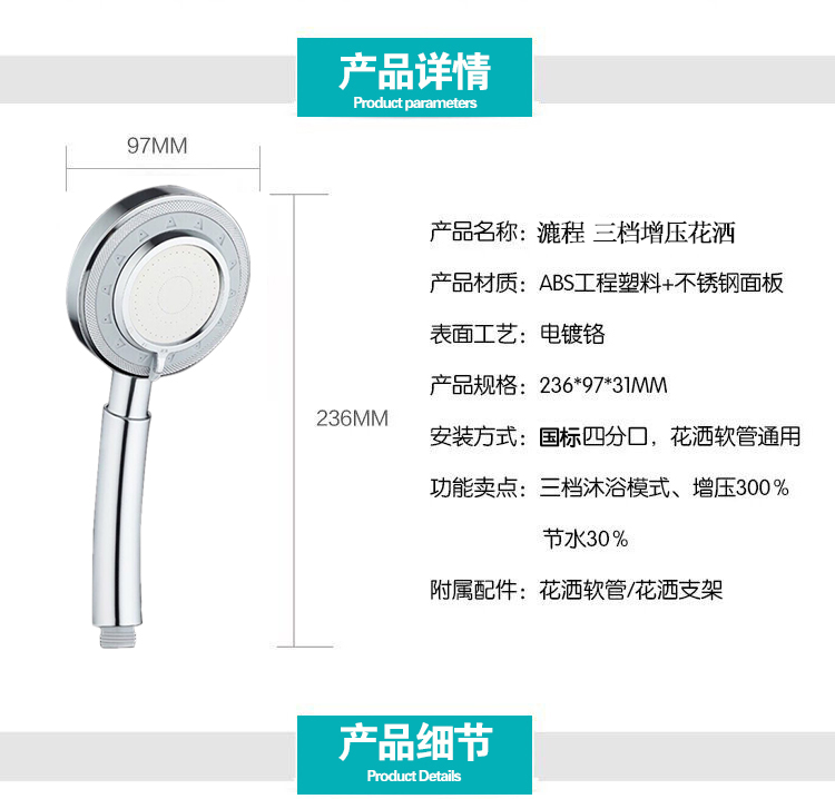 德式增压淋浴花洒喷头超强加压手持沐浴洗澡高压淋雨太阳能花晒头