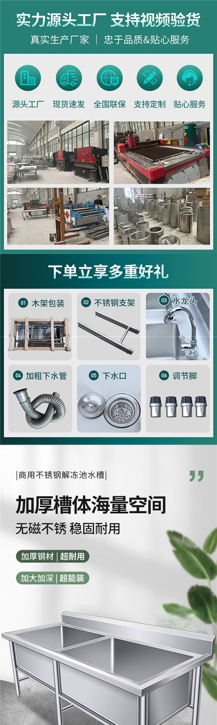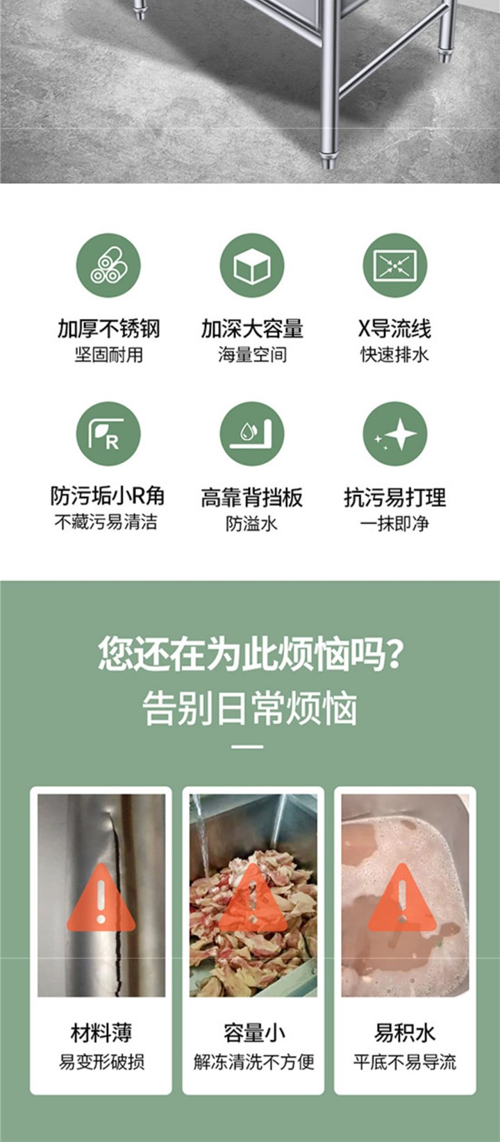 热卖1W+商用不锈钢水槽双槽洗菜盆消毒洗手解冻池厨房食品厂超大