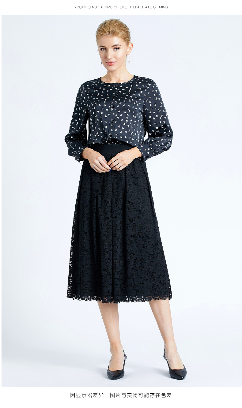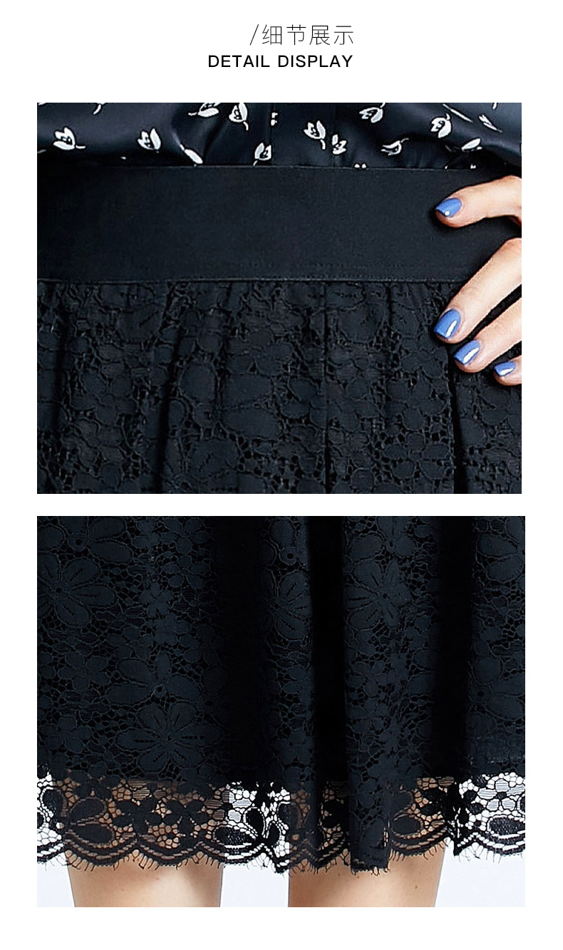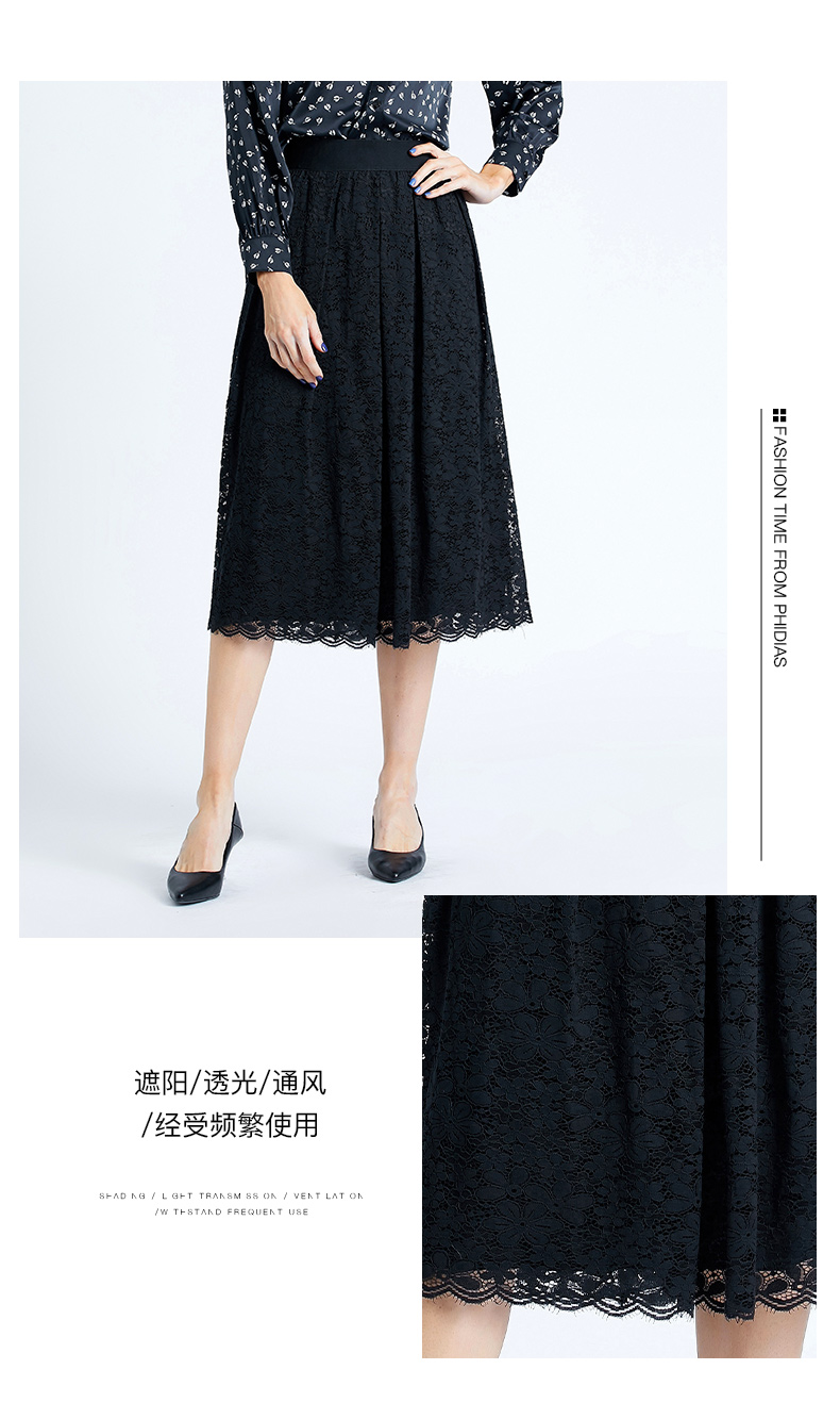 Phidias蕾丝高腰半身裙女高腰洋气百搭黑色显瘦法式复古a字半裙子
