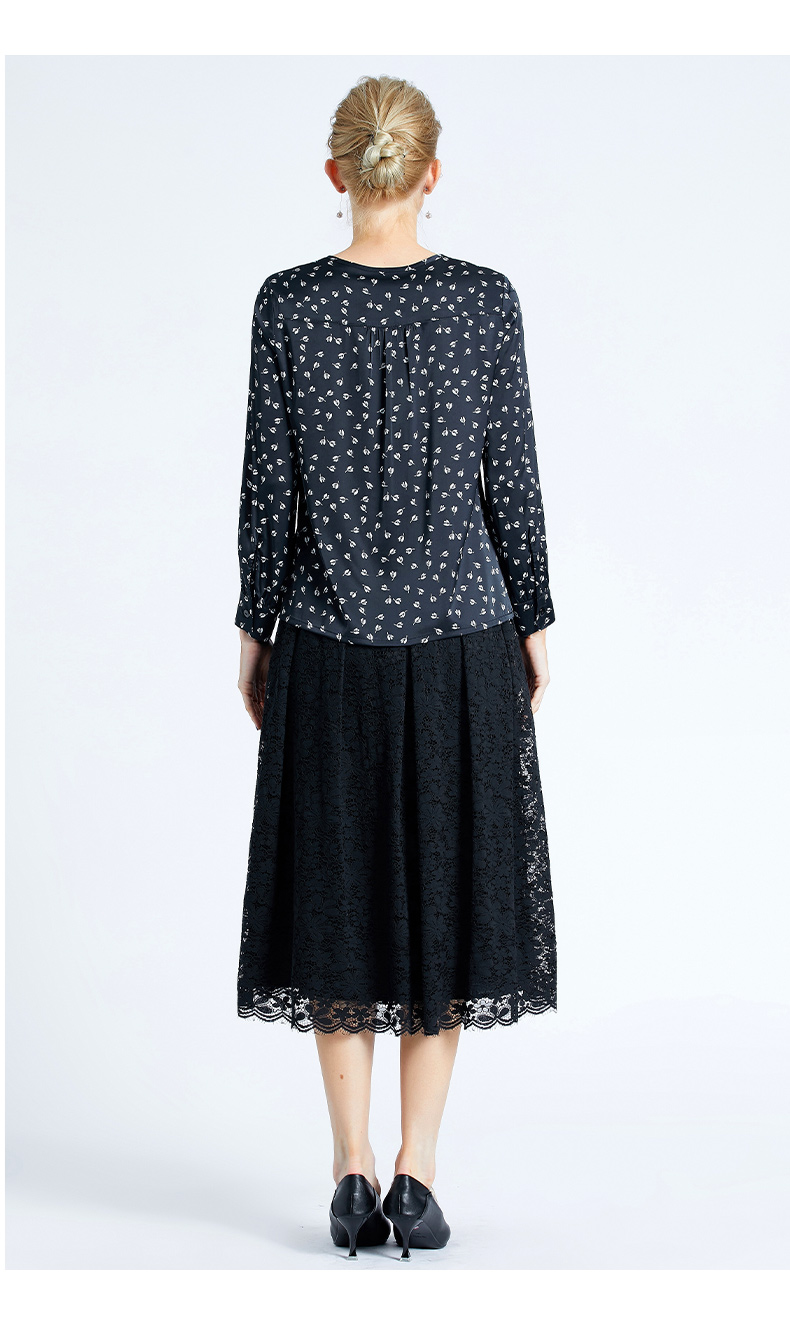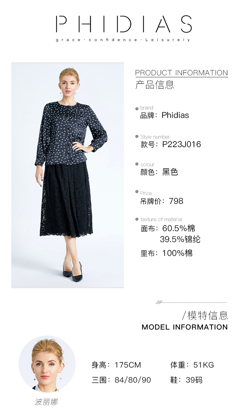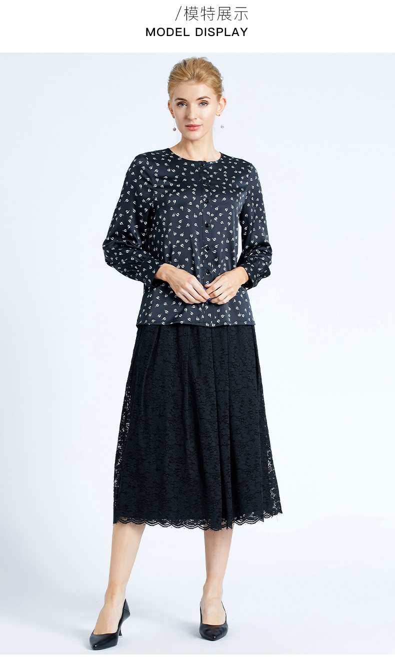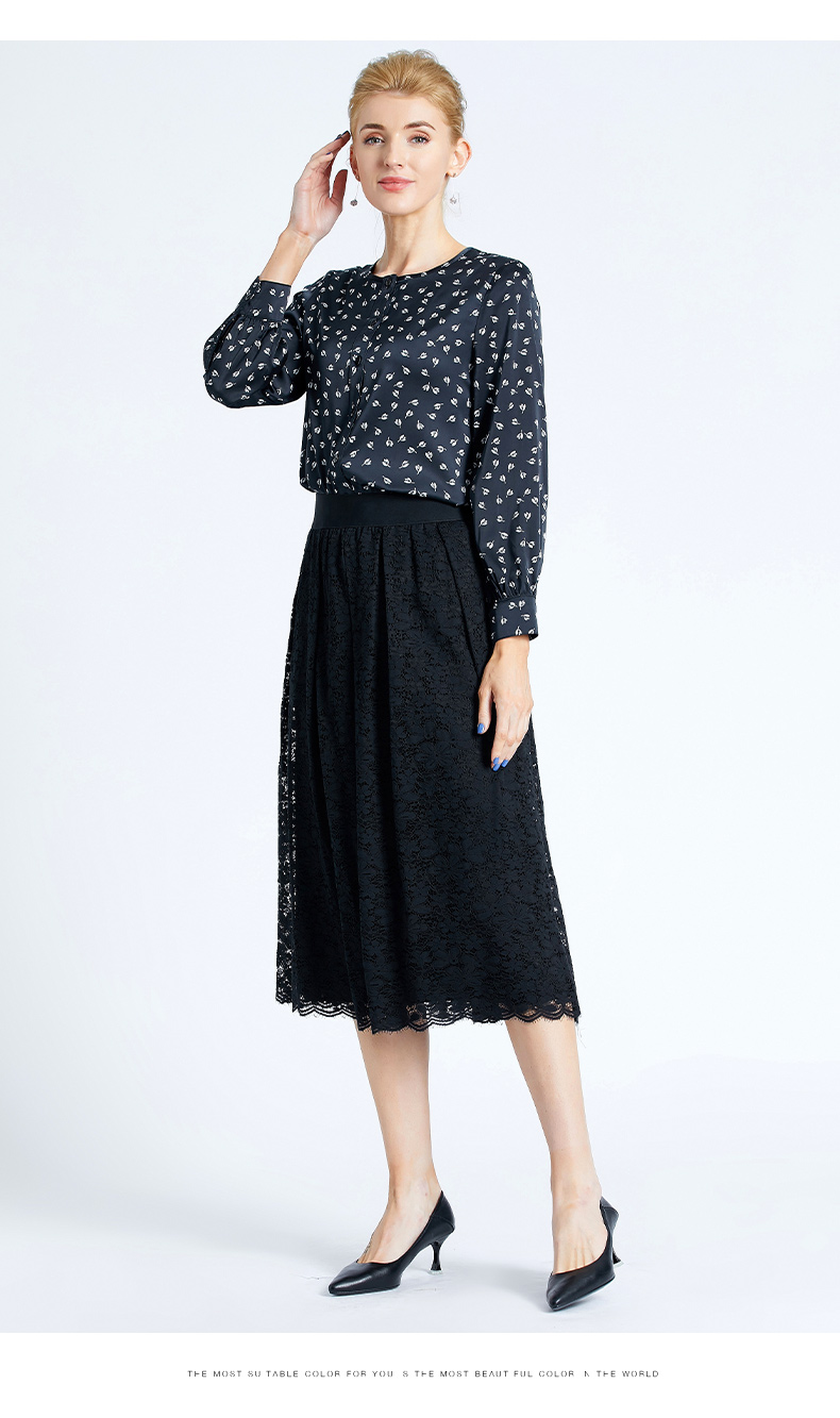 Phidias蕾丝高腰半身裙女高腰洋气百搭黑色显瘦法式复古a字半裙子