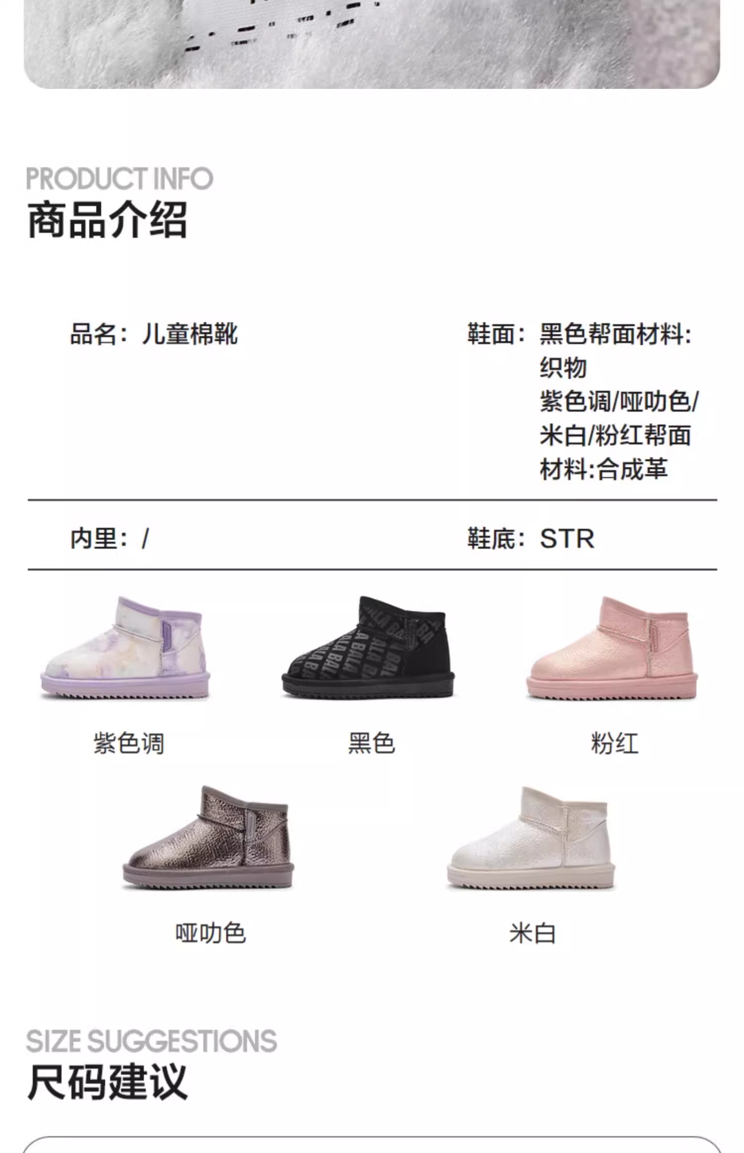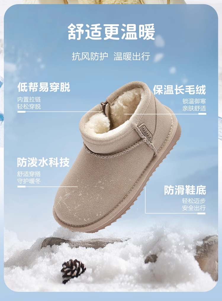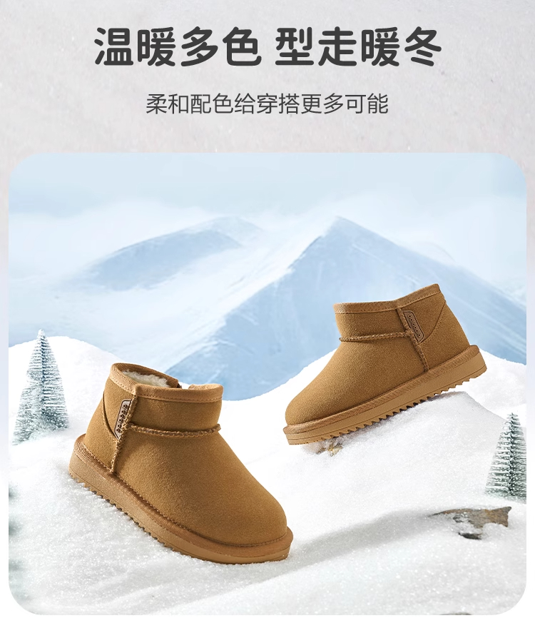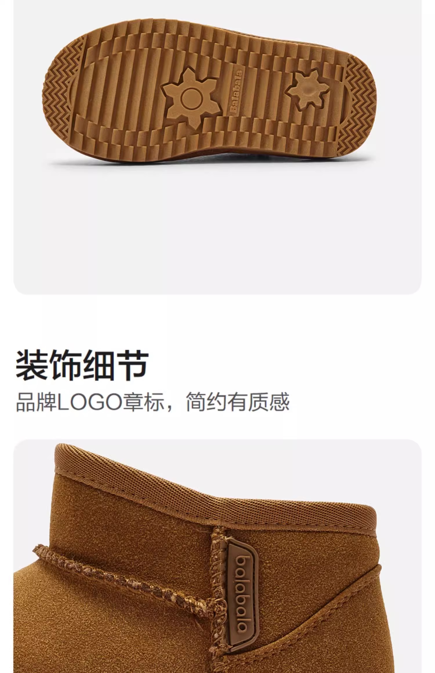 巴拉巴拉儿童雪地靴男女童冬季鞋子宝宝加厚加绒靴子防滑亲子棉靴