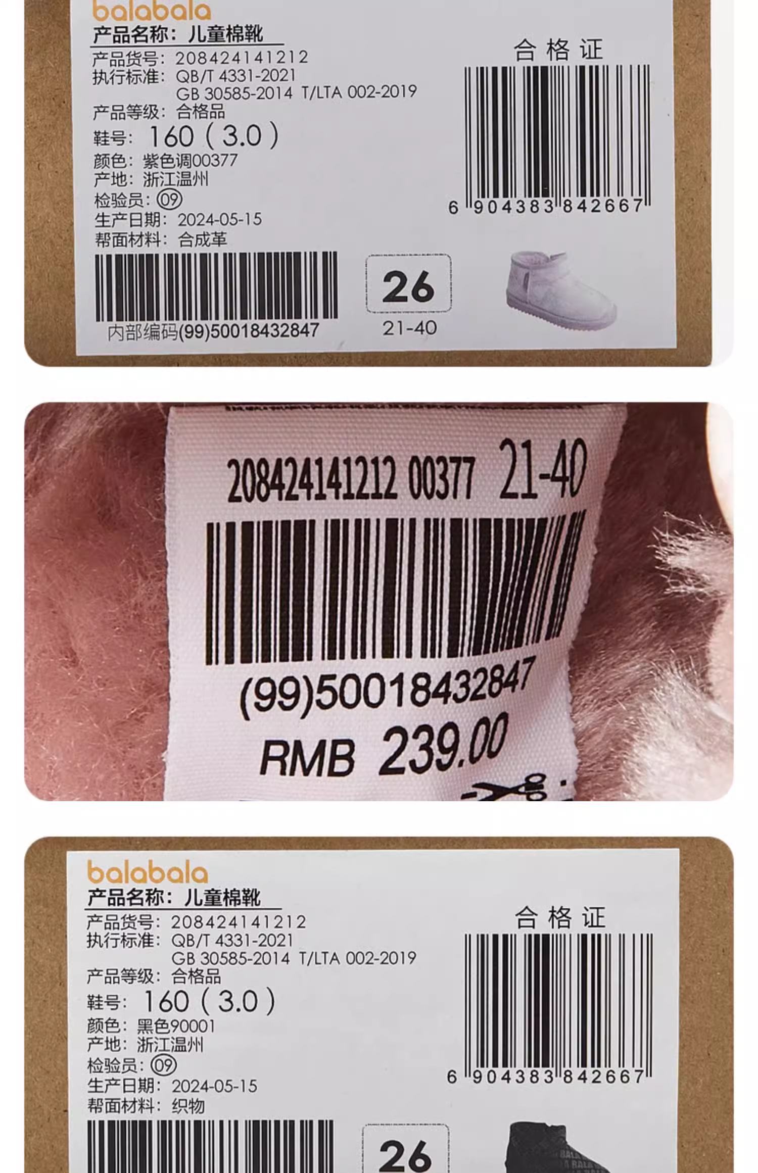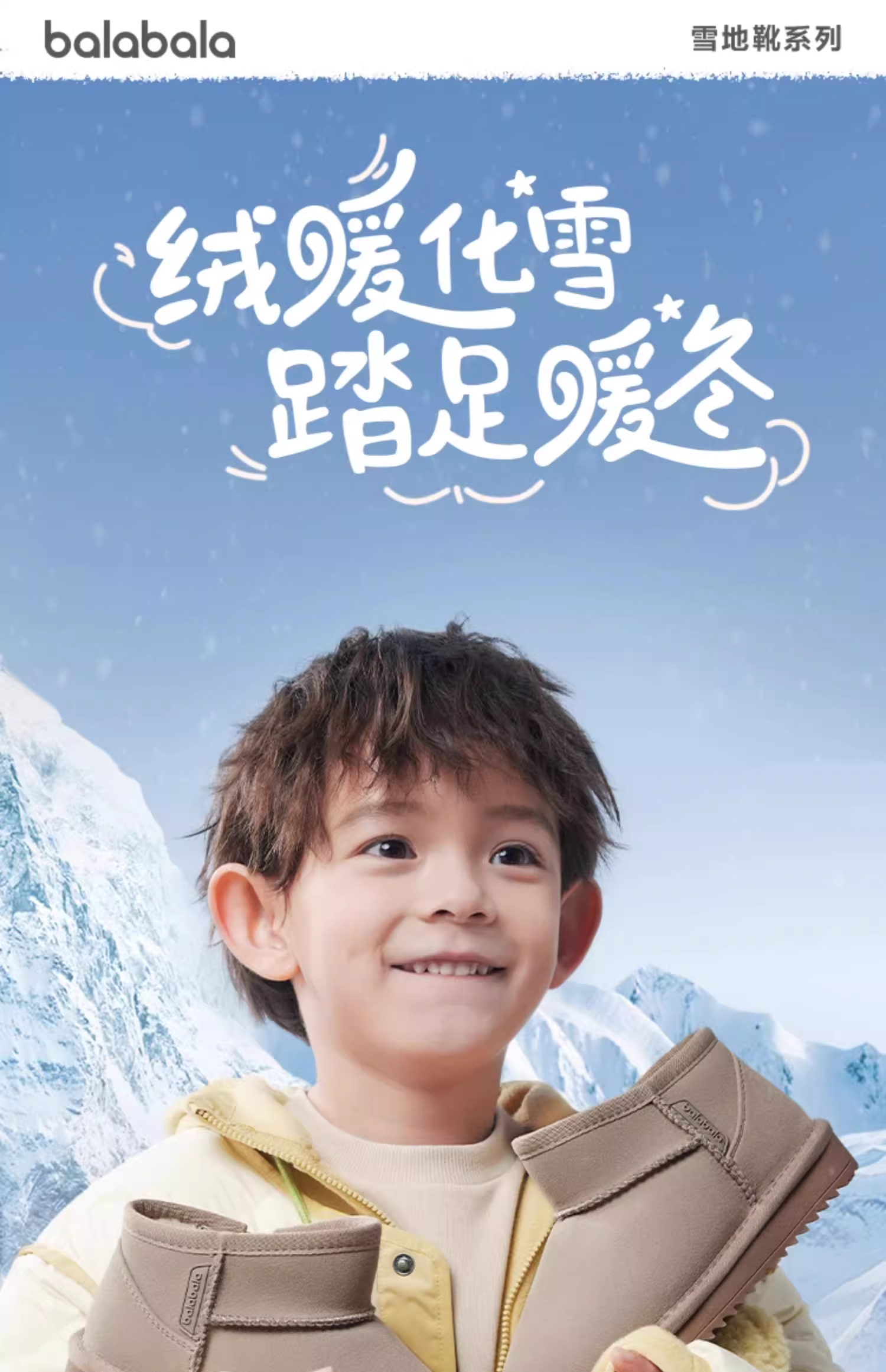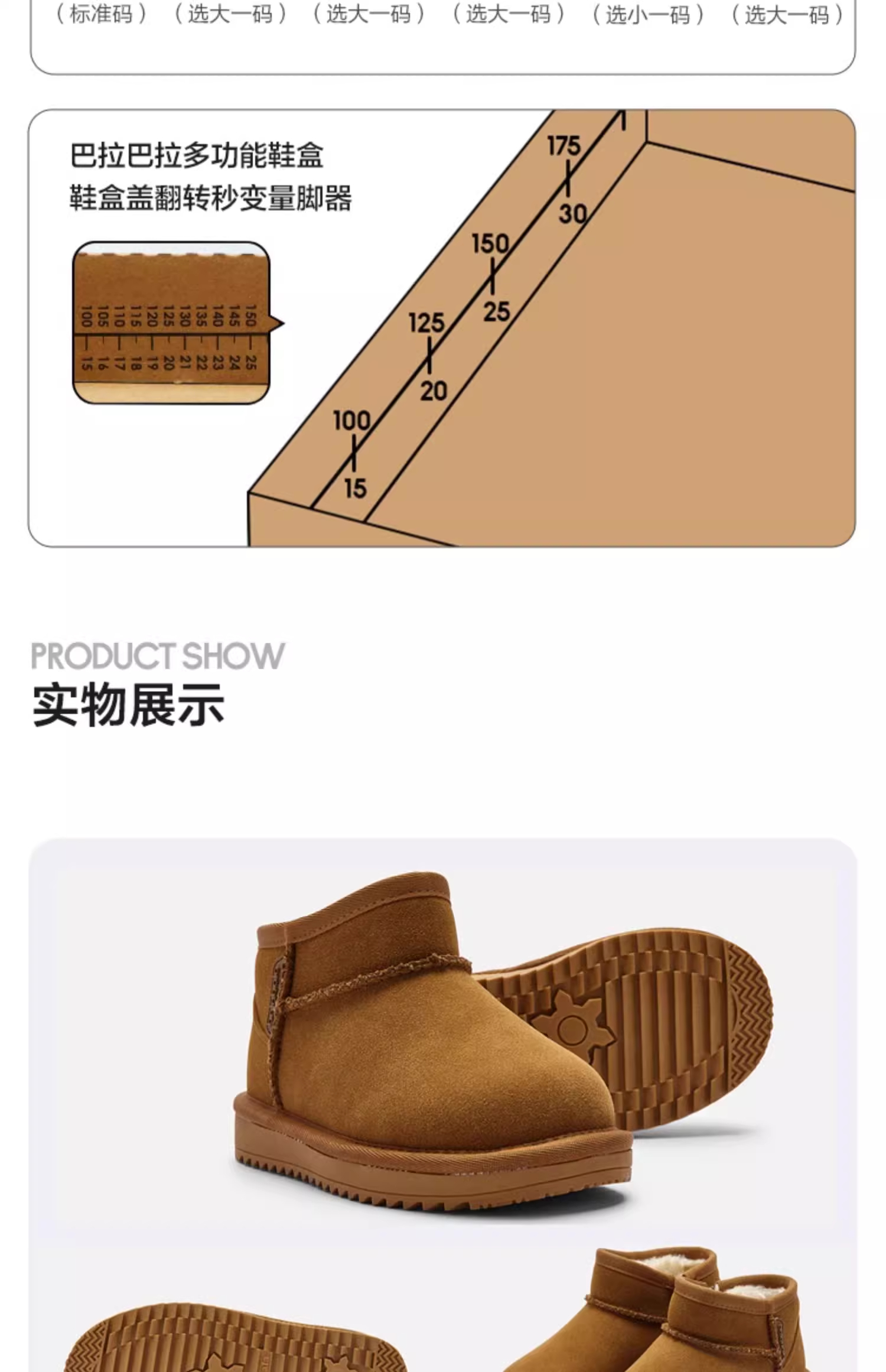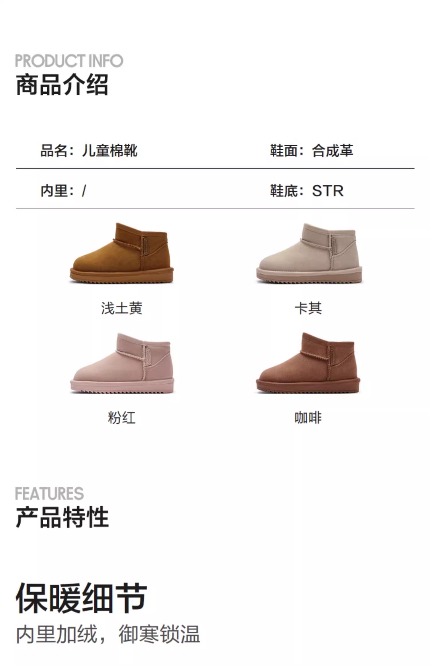 巴拉巴拉儿童雪地靴男女童冬季鞋子宝宝加厚加绒靴子防滑亲子棉靴