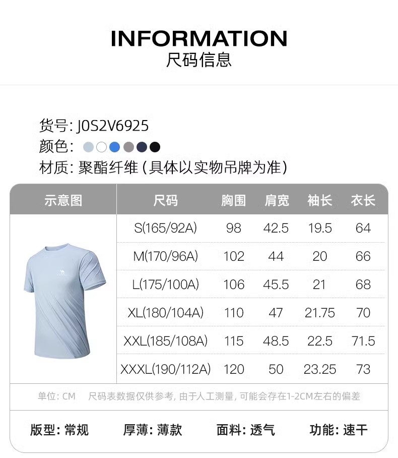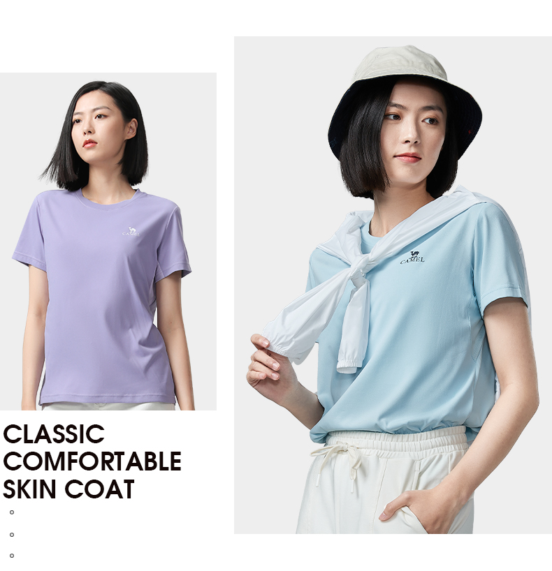 骆驼户外吸湿速干棉感T恤女2025夏款短袖圆领运动上衣男爆款体恤