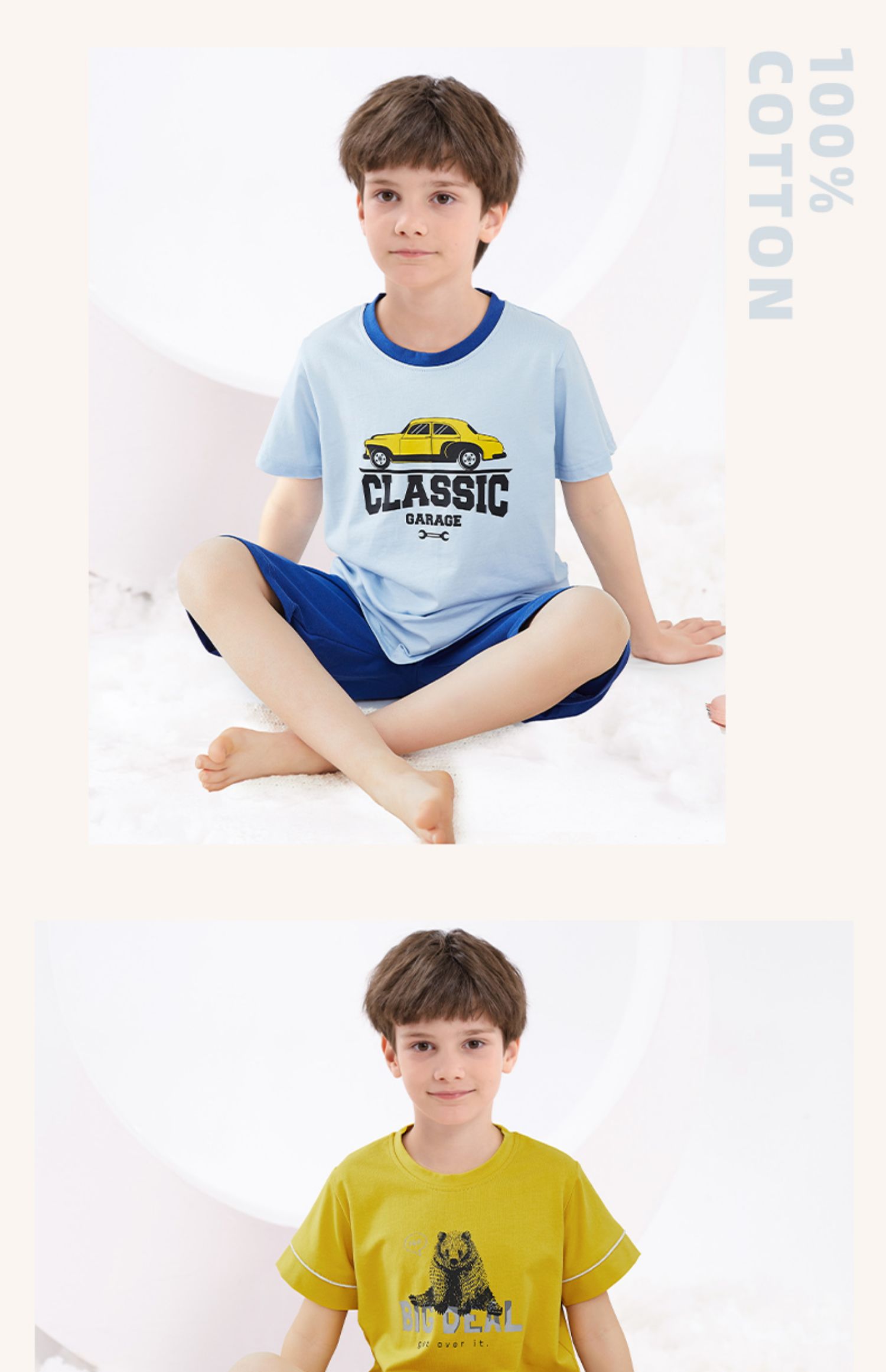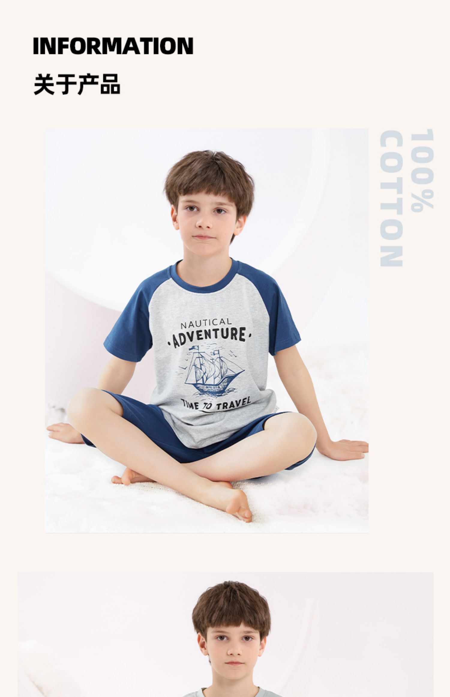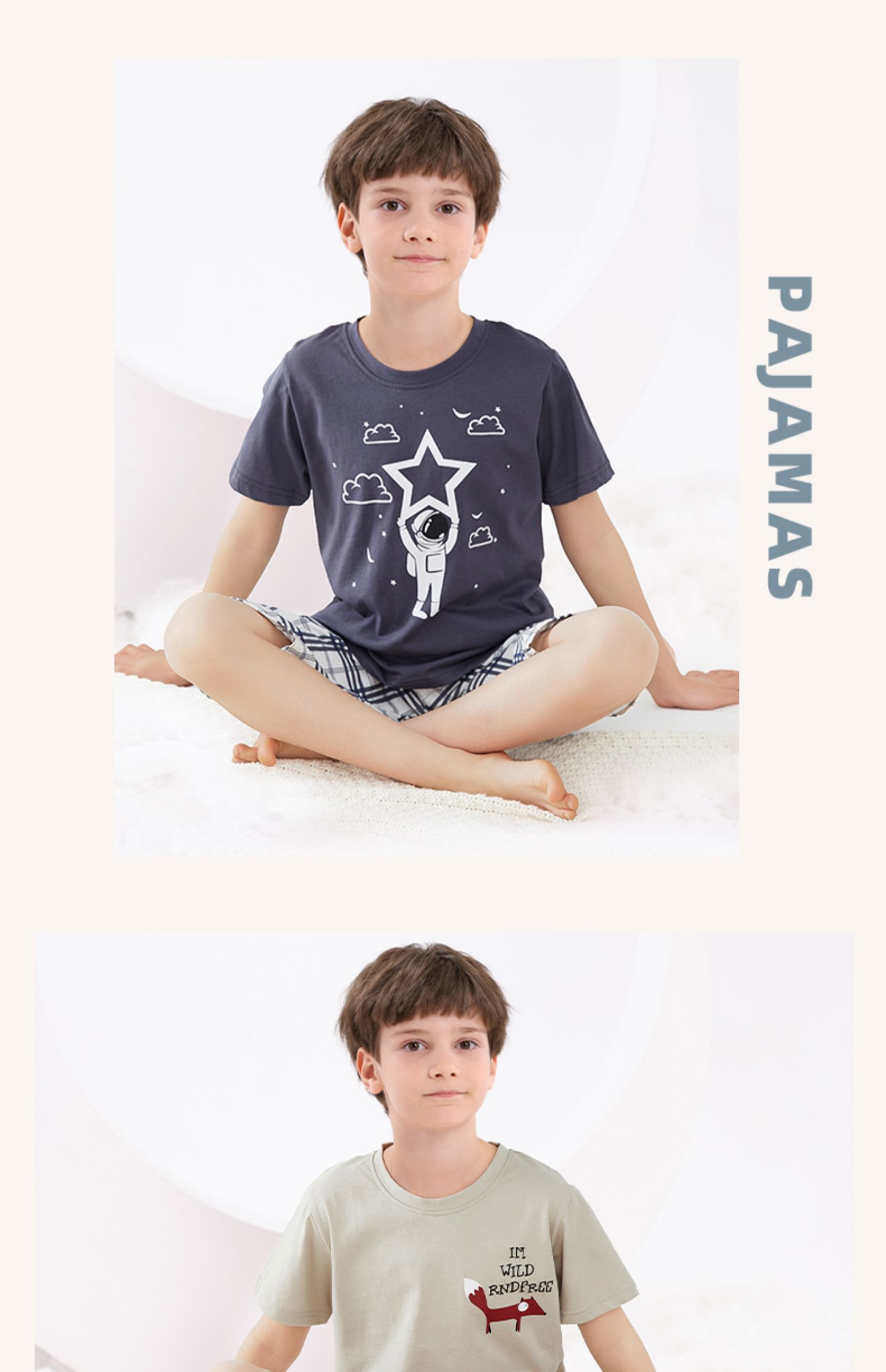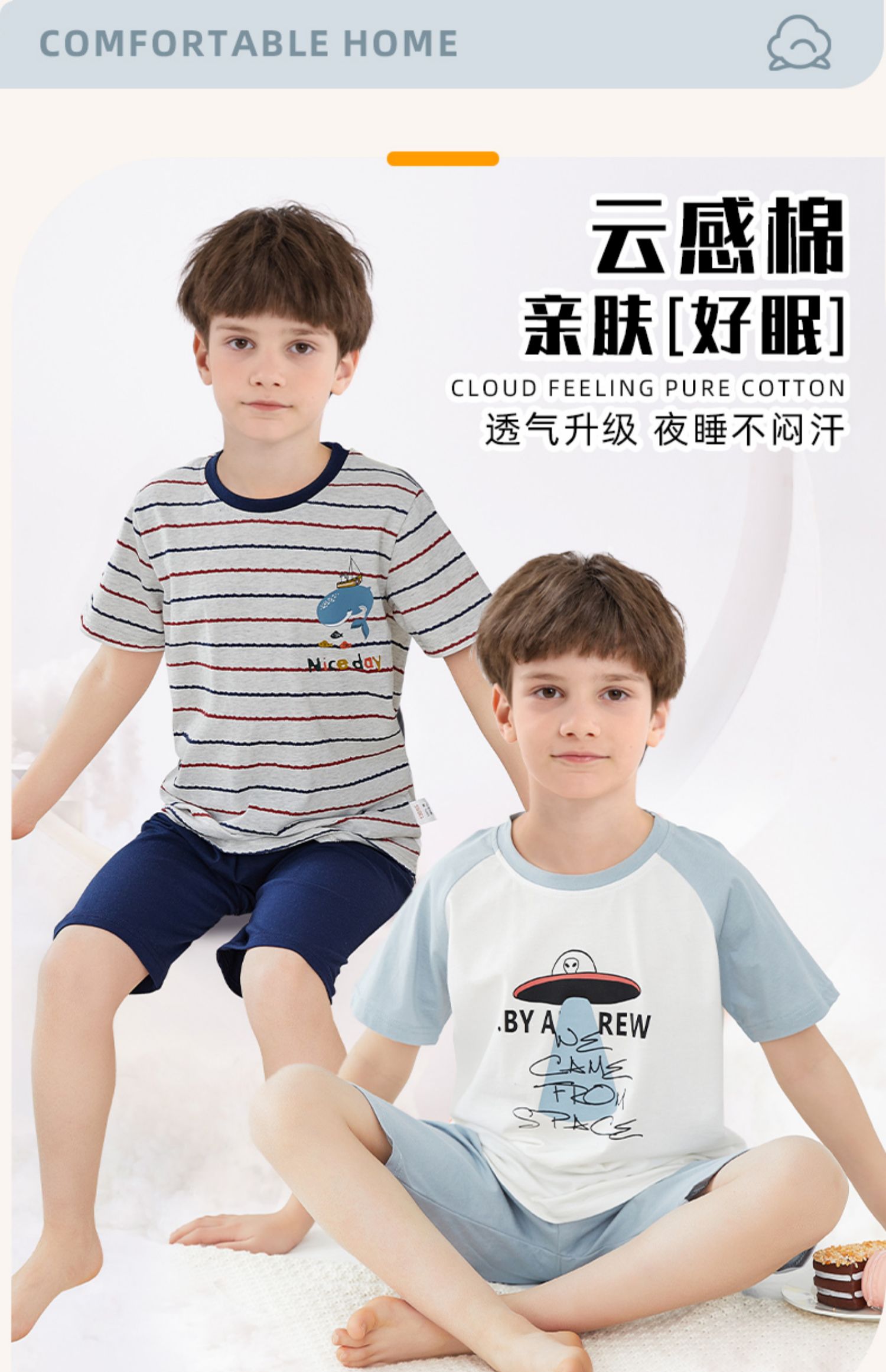 儿童睡衣2025新款a类男童短袖纯棉夏季薄款男孩中大童家居服套装