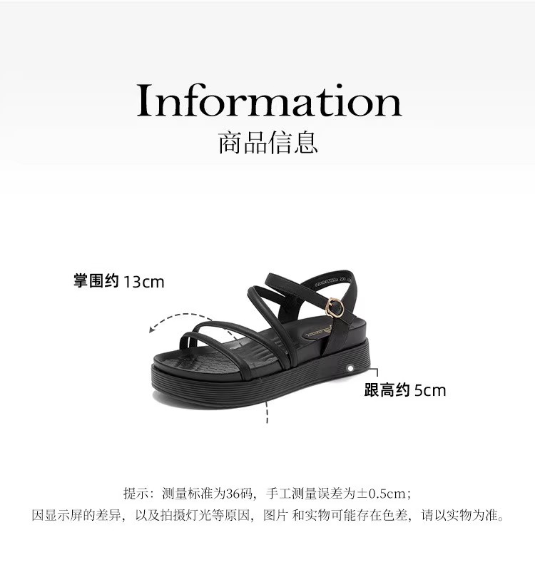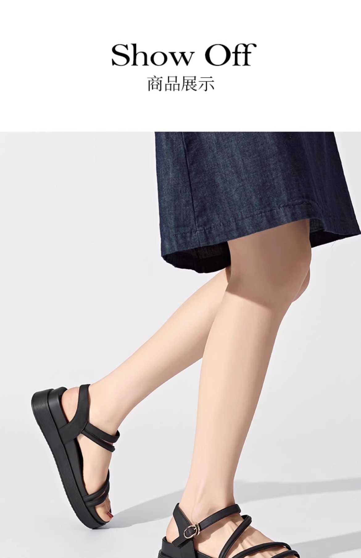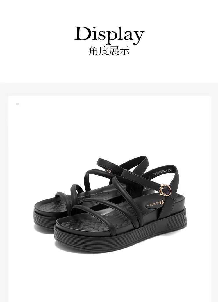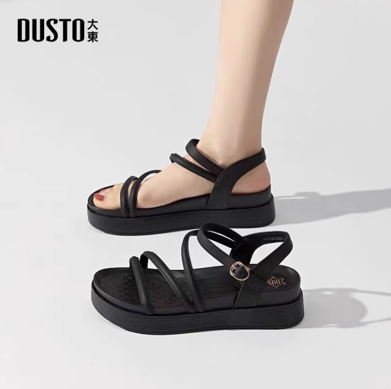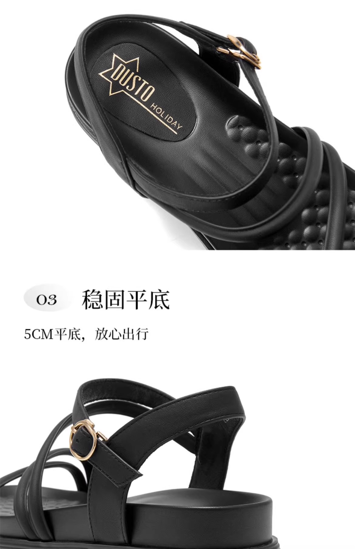 大东绑带凉鞋24夏季新款罗马风平底中跟一字扣圆头厚底鞋24X3553