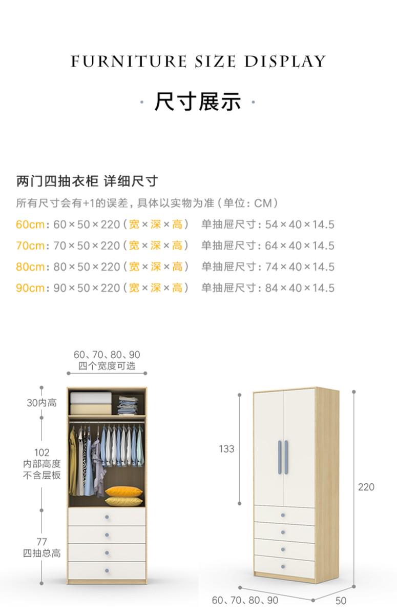 儿童衣柜小户型省空间小房间北欧实木香港卧室70cm一米宽衣柜90cm