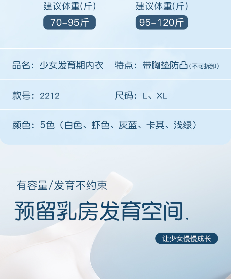少女内衣发育期二阶段女童背心运动防震高中生文胸初中学生青少年