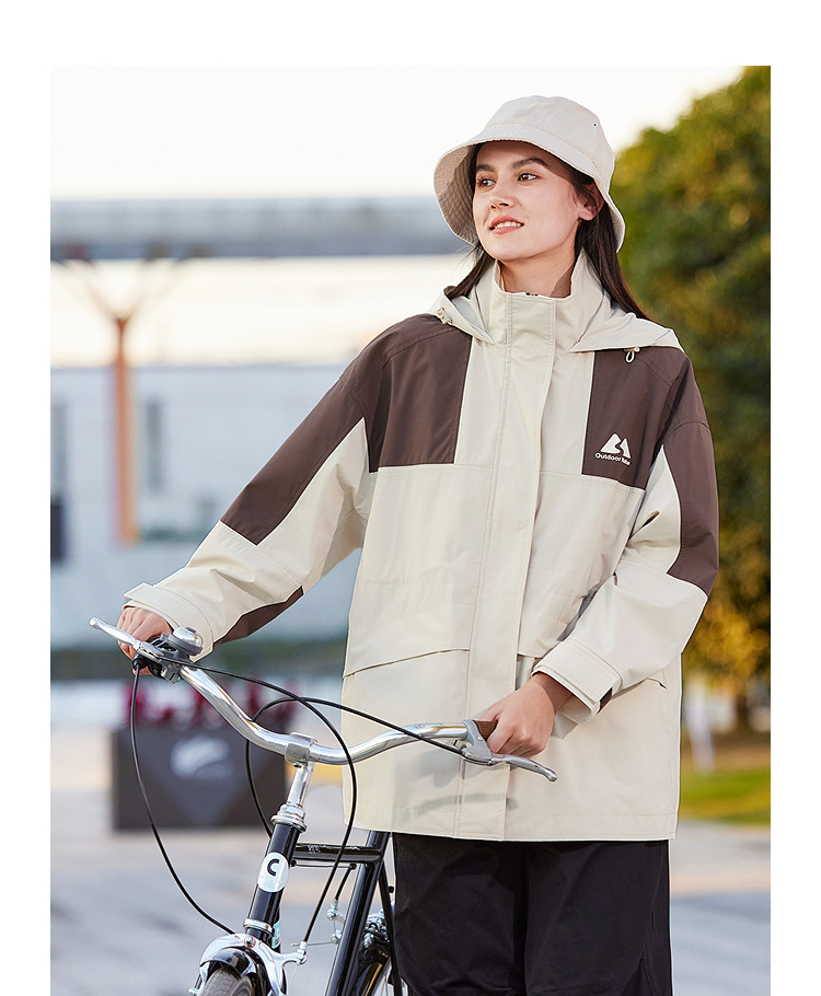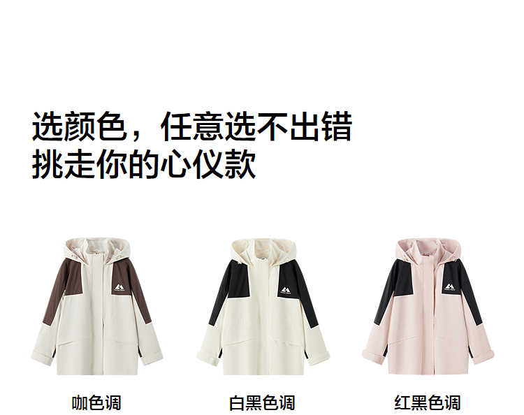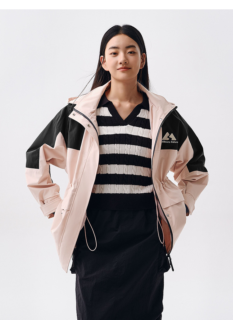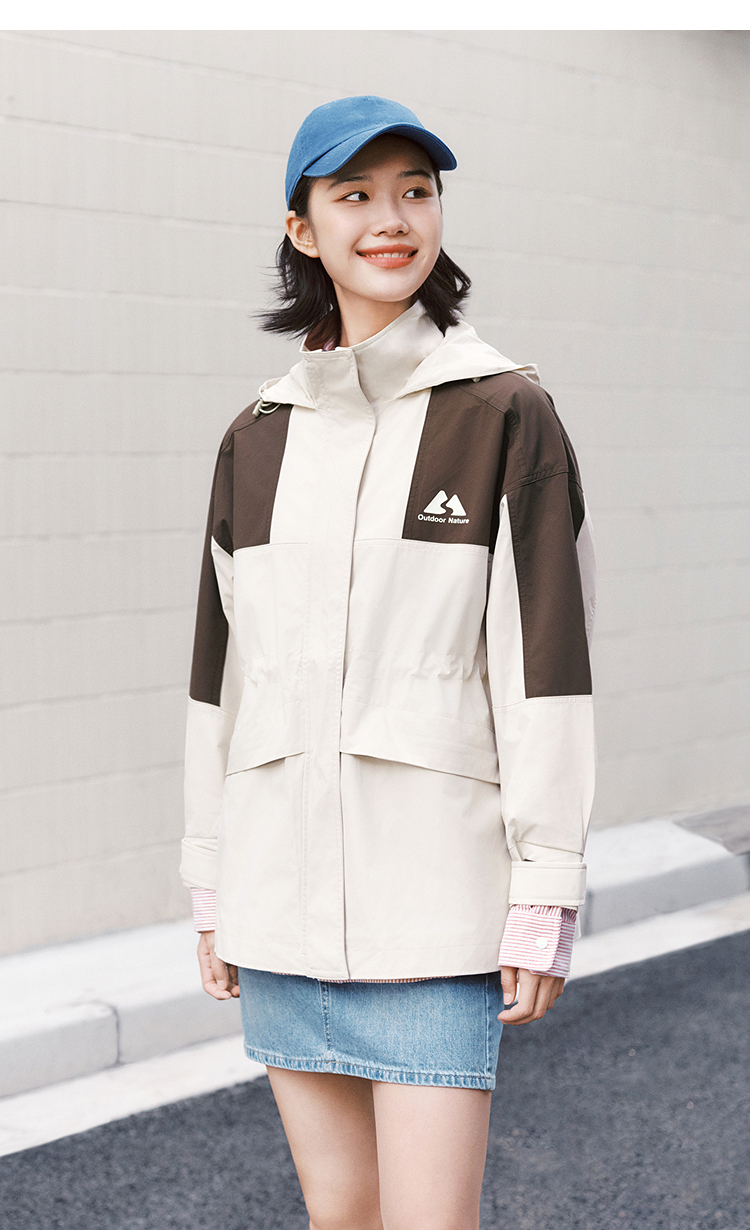 森马外套女中长款拼色三防宽松2024春新款帅气连帽上衣