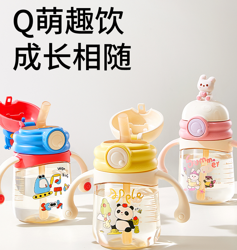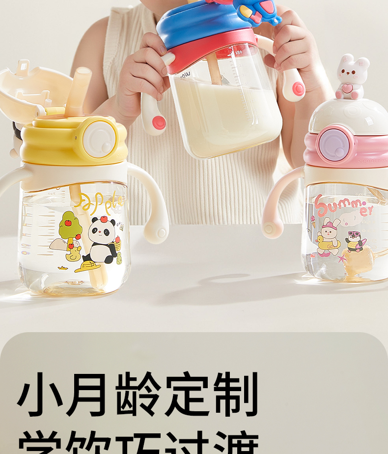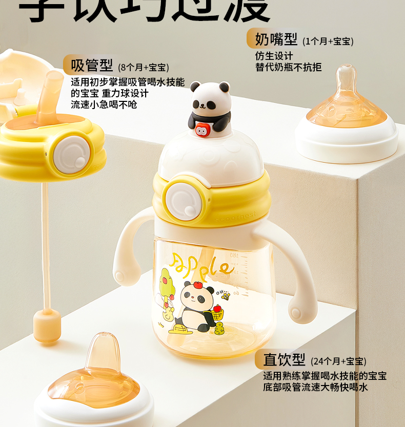 科巢公仔学饮杯鸭嘴杯婴儿3-6个月以上宝宝吸管直饮水杯防呛奶瓶