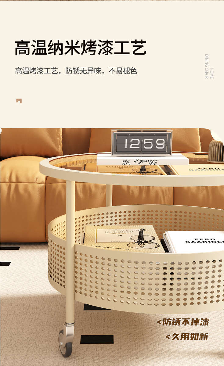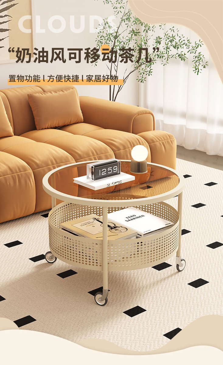 奶油风可移动小茶几客厅家用沙发边几小户型简约现代阳台小圆桌