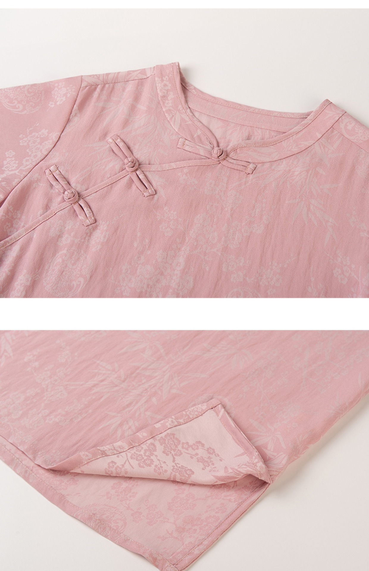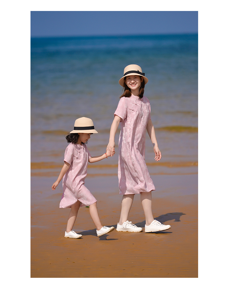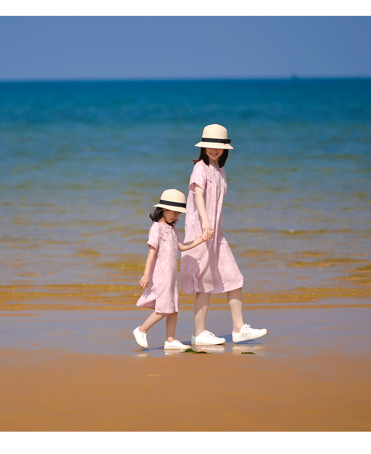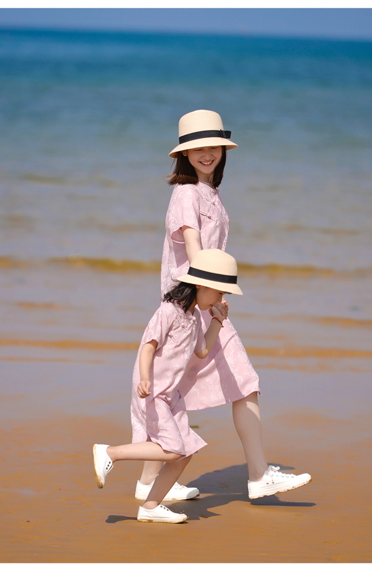 小乐往亲子装128课 夏女童中式改良粉色旗袍母女装清新文艺连衣裙