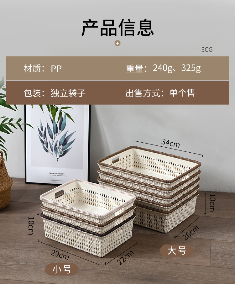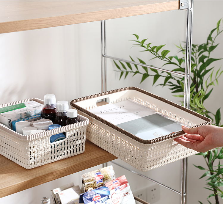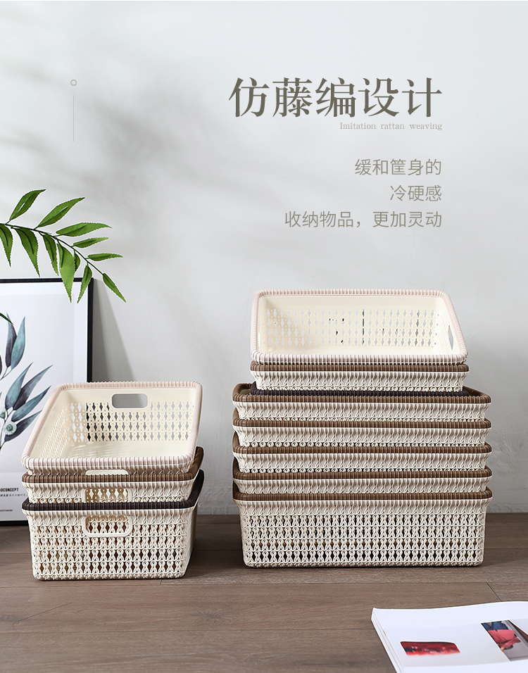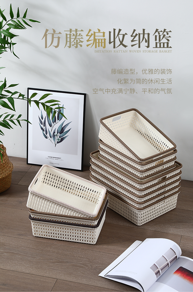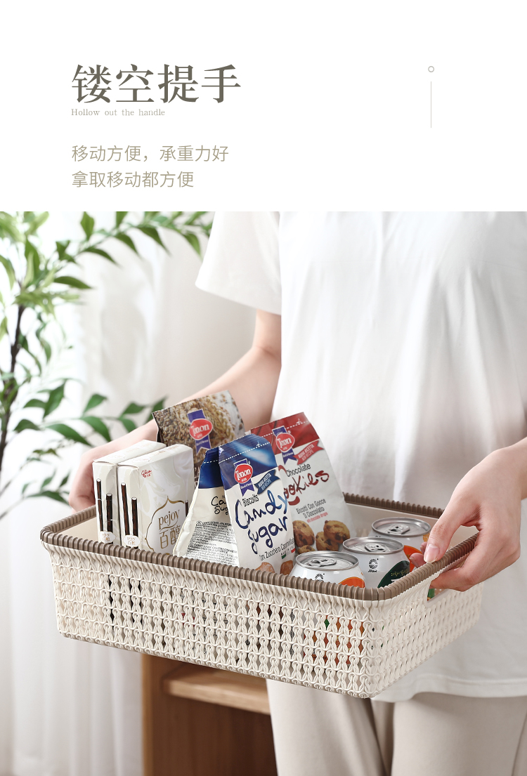 仿藤编桌面收纳筐家用浴室脏衣服篮子带提手塑料镂空杂物置物篮
