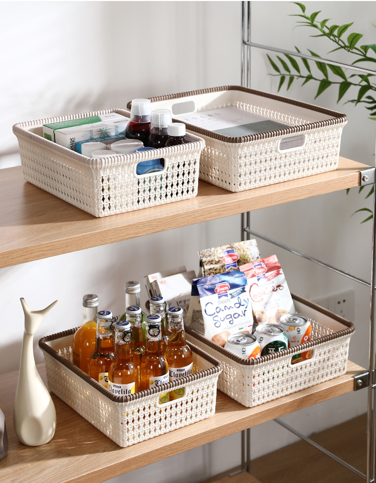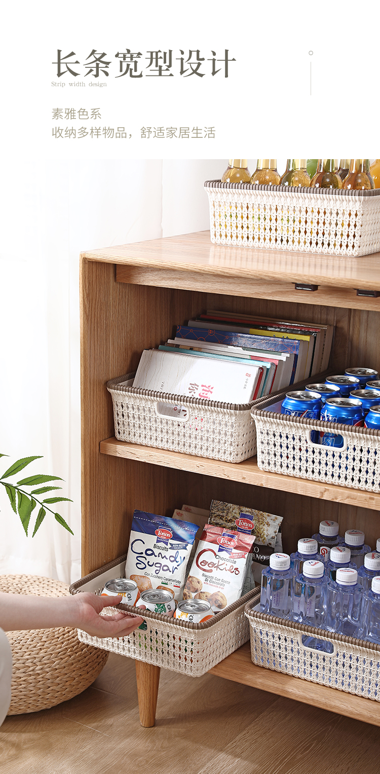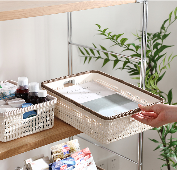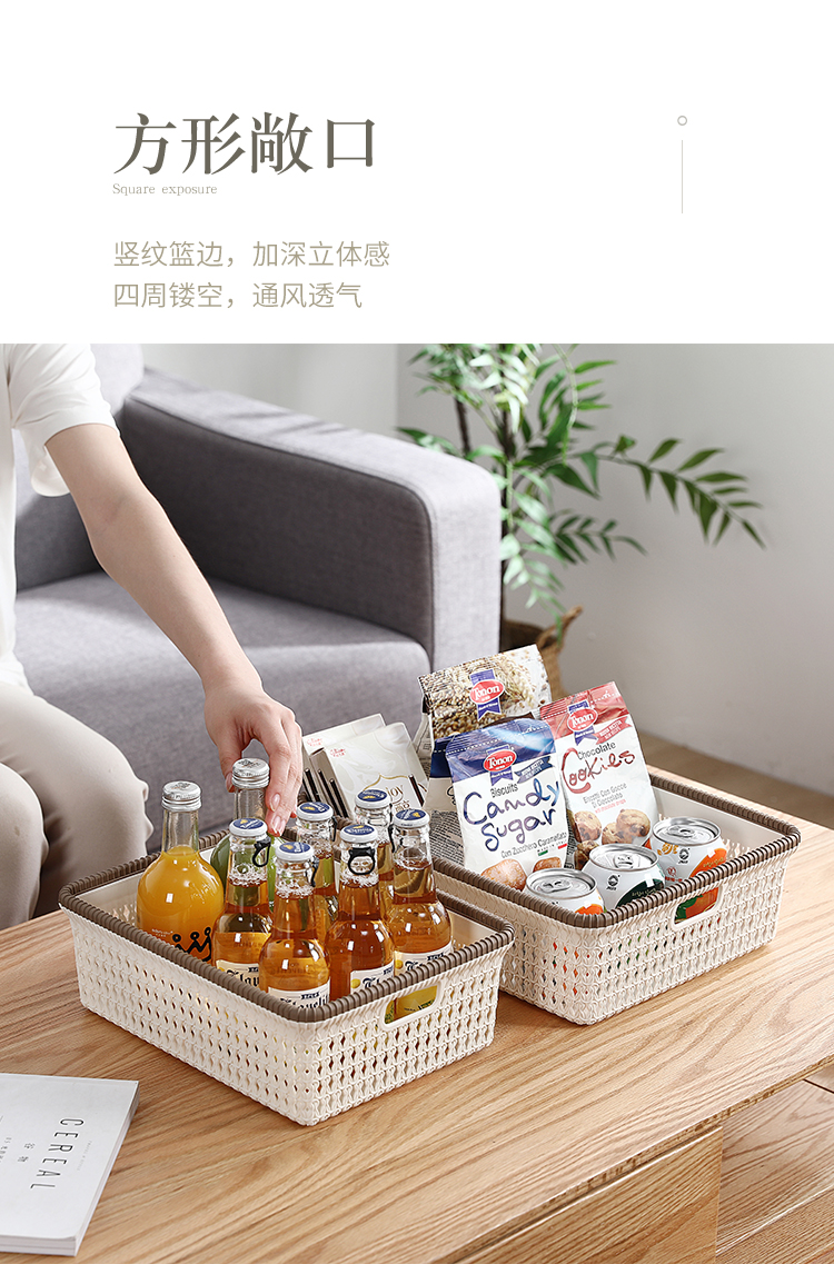 仿藤编桌面收纳筐家用浴室脏衣服篮子带提手塑料镂空杂物置物篮
