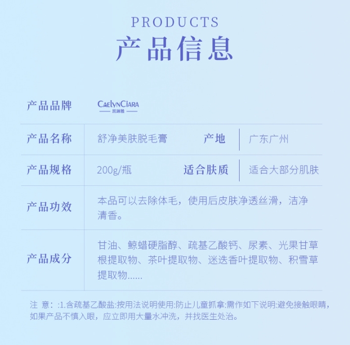 CAELYNCIARA凯琳雅舒净美肤脱毛膏200g芳香脱毛脱腿毛腋毛AB