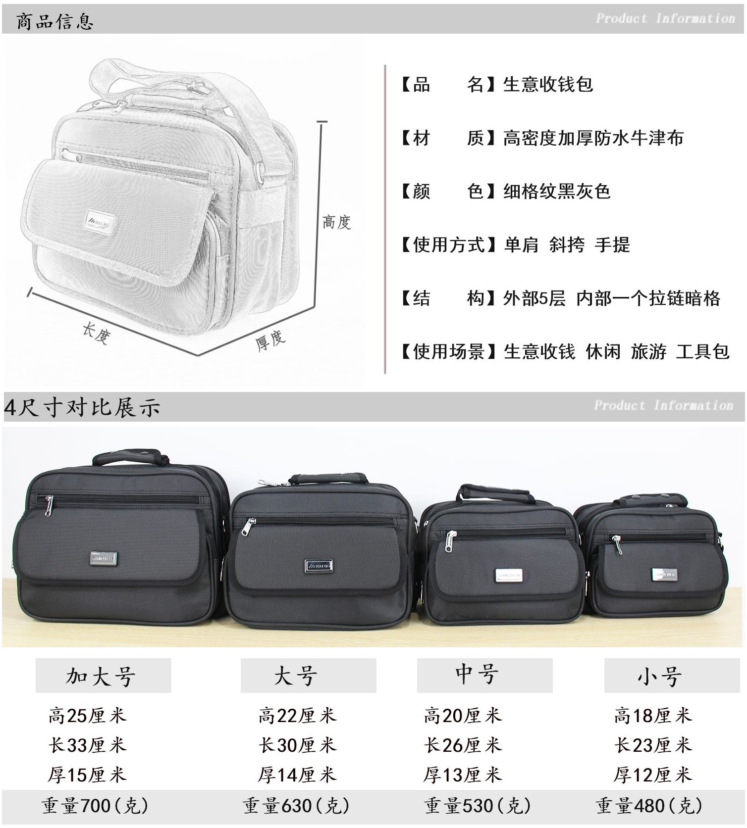 新款防水单肩包斜挎包男女收银包收纳包快递手提收钱包生意包黑色