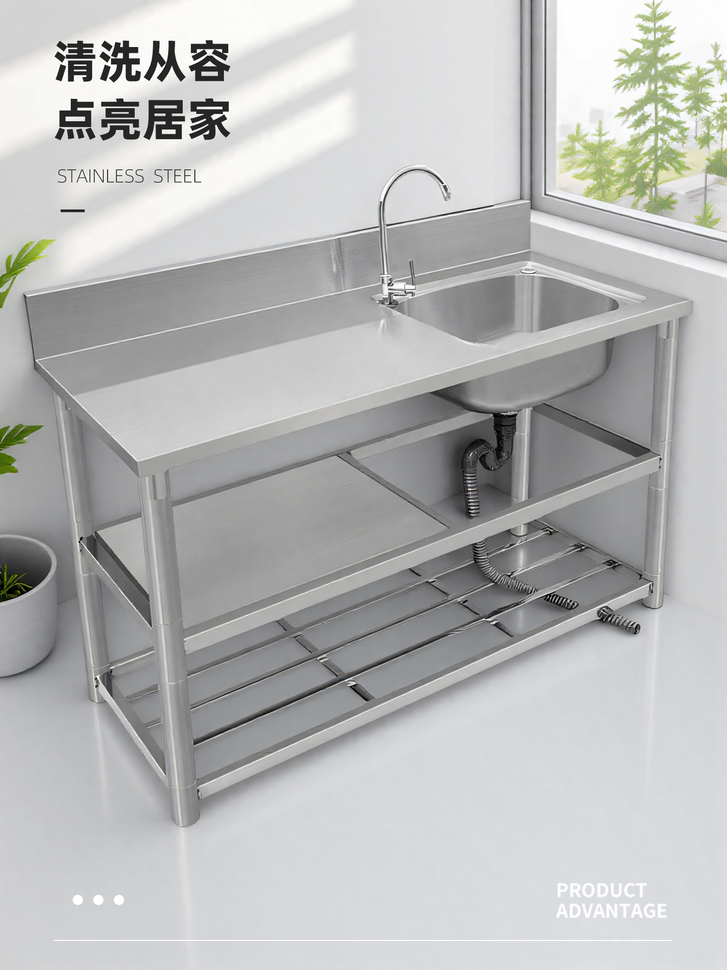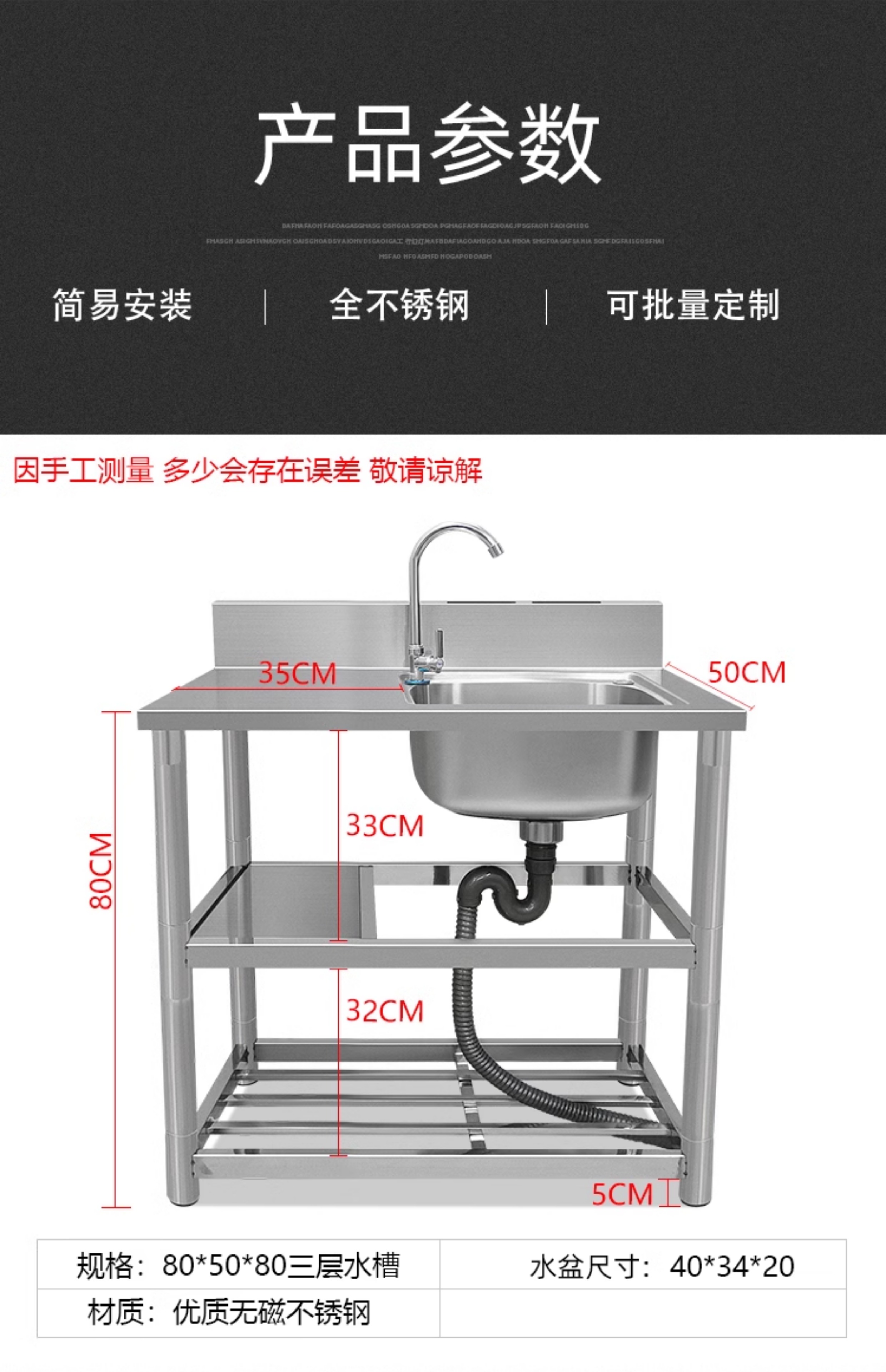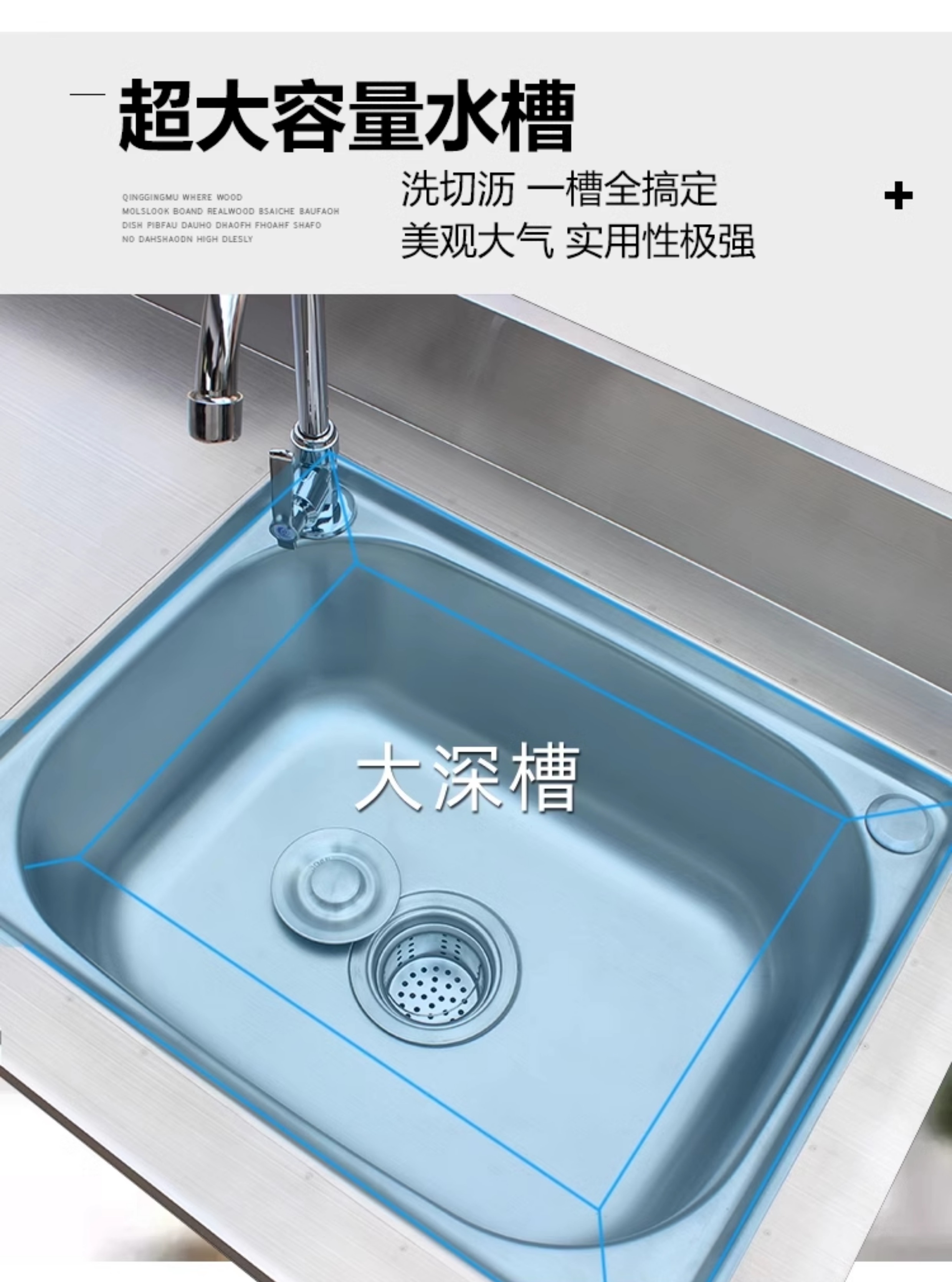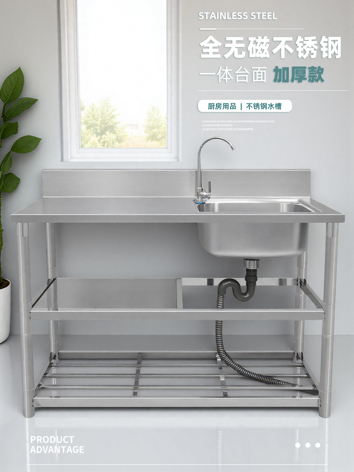 厨房不锈钢水槽带支架简易洗碗洗手台盆台面一体柜洗菜盆水池家用