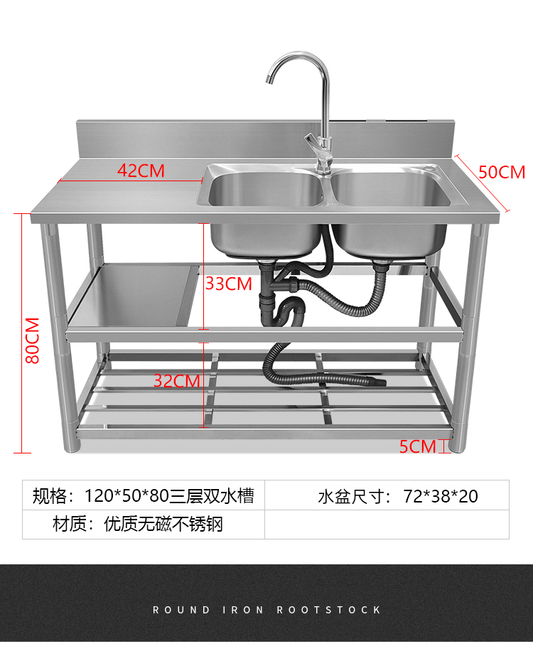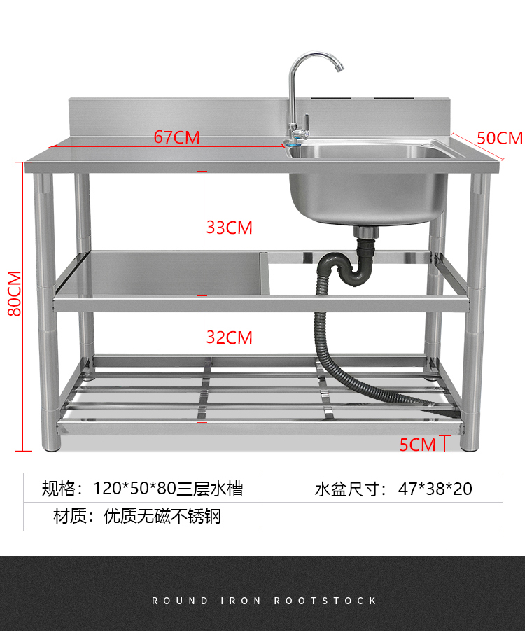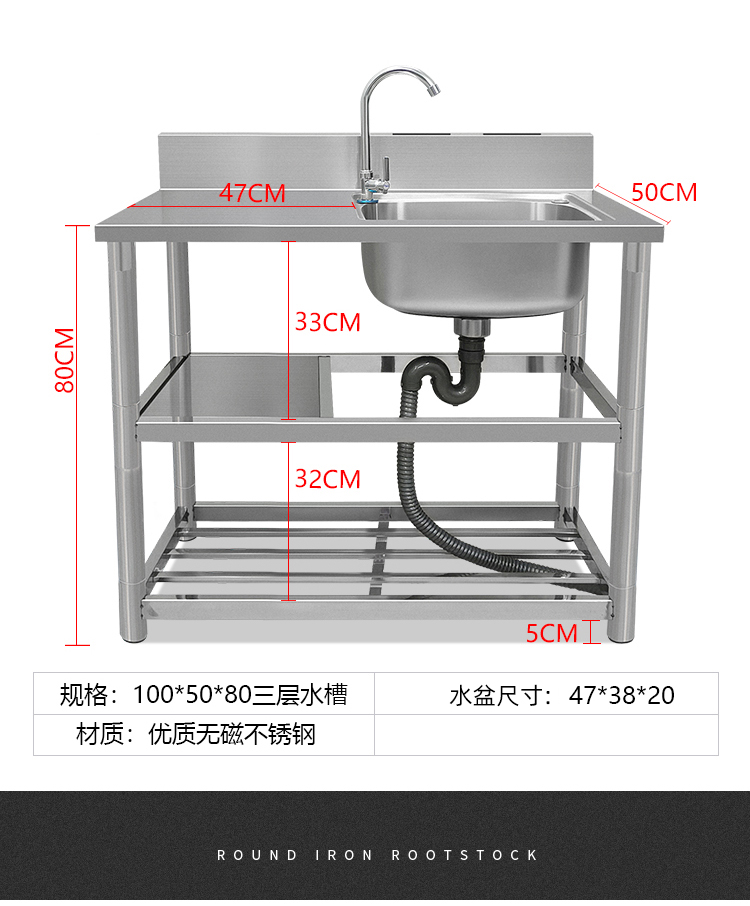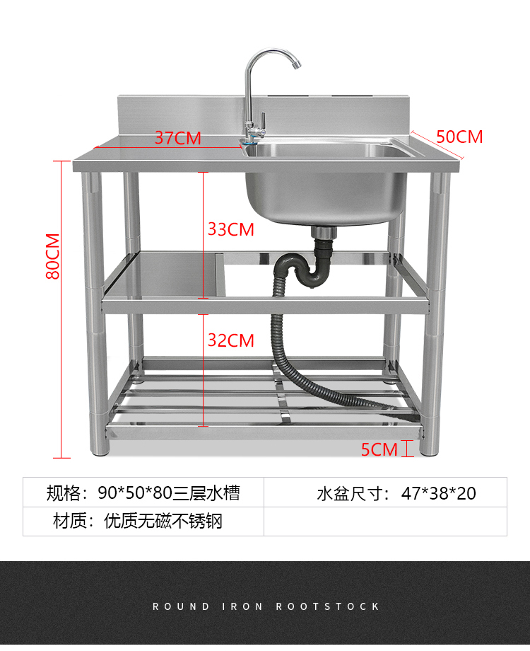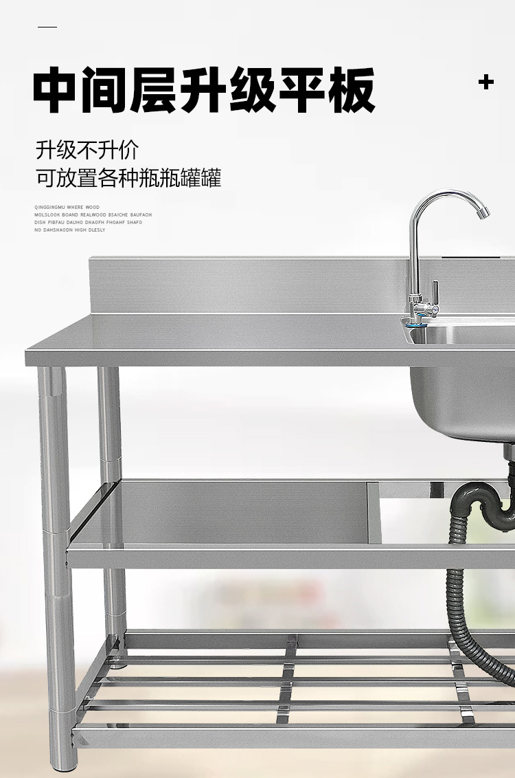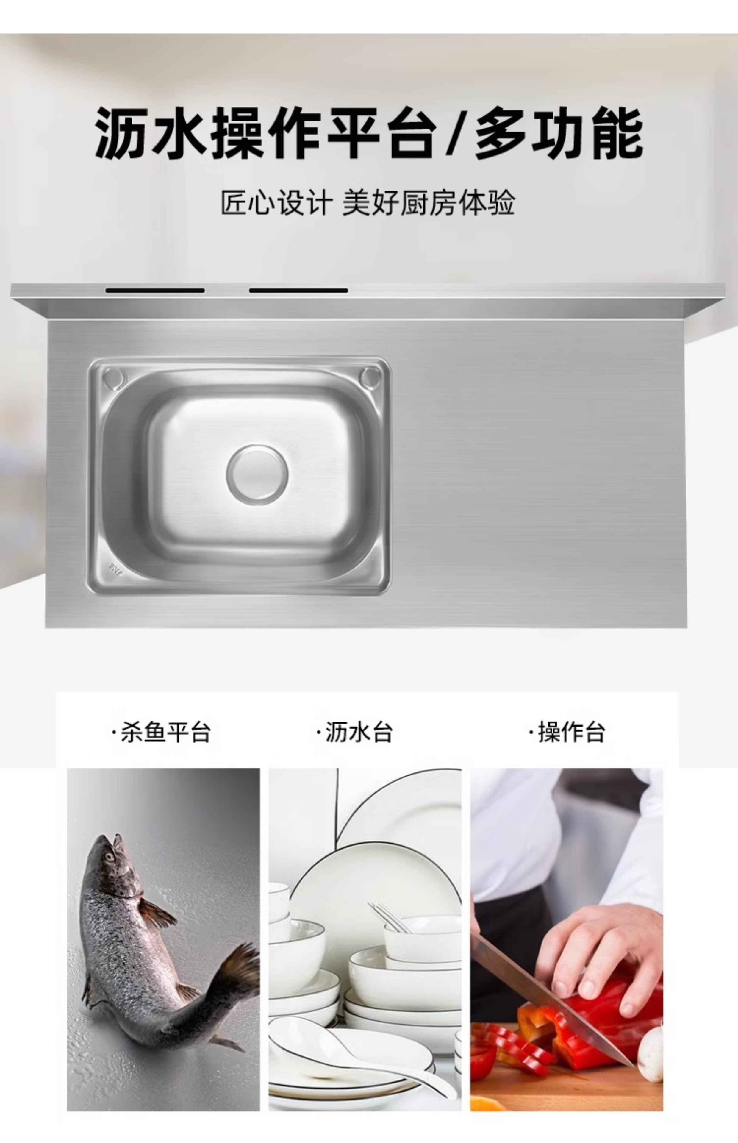 厨房不锈钢水槽带支架简易洗碗洗手台盆台面一体柜洗菜盆水池家用
