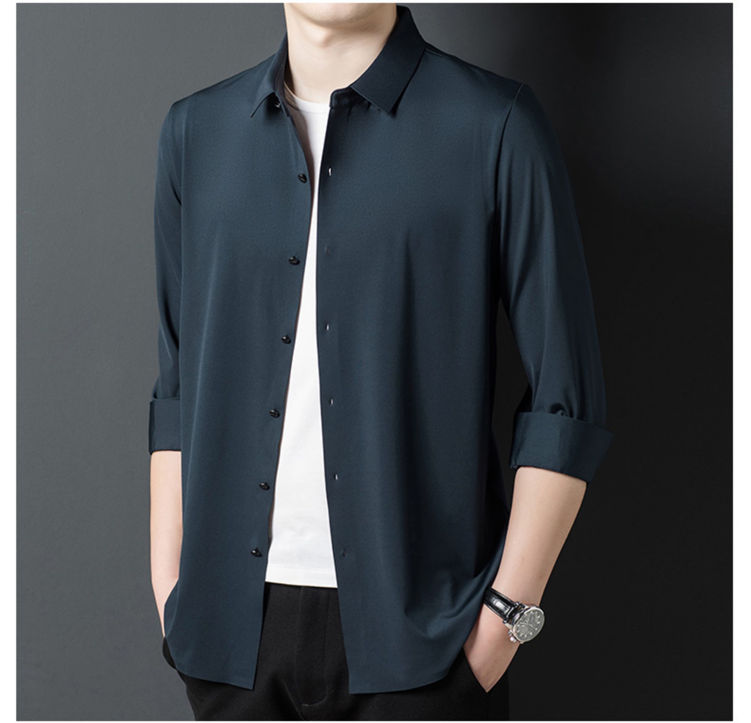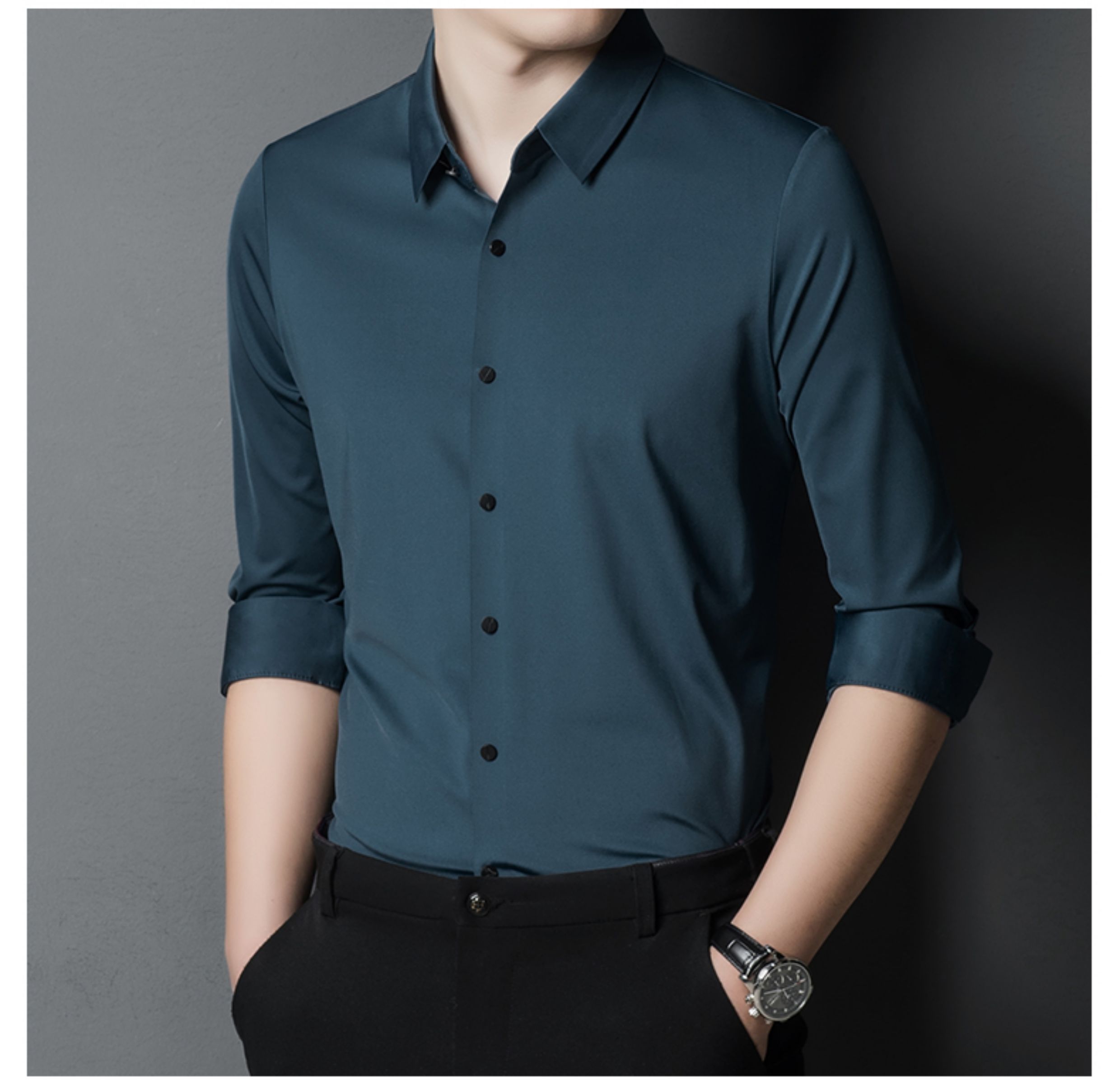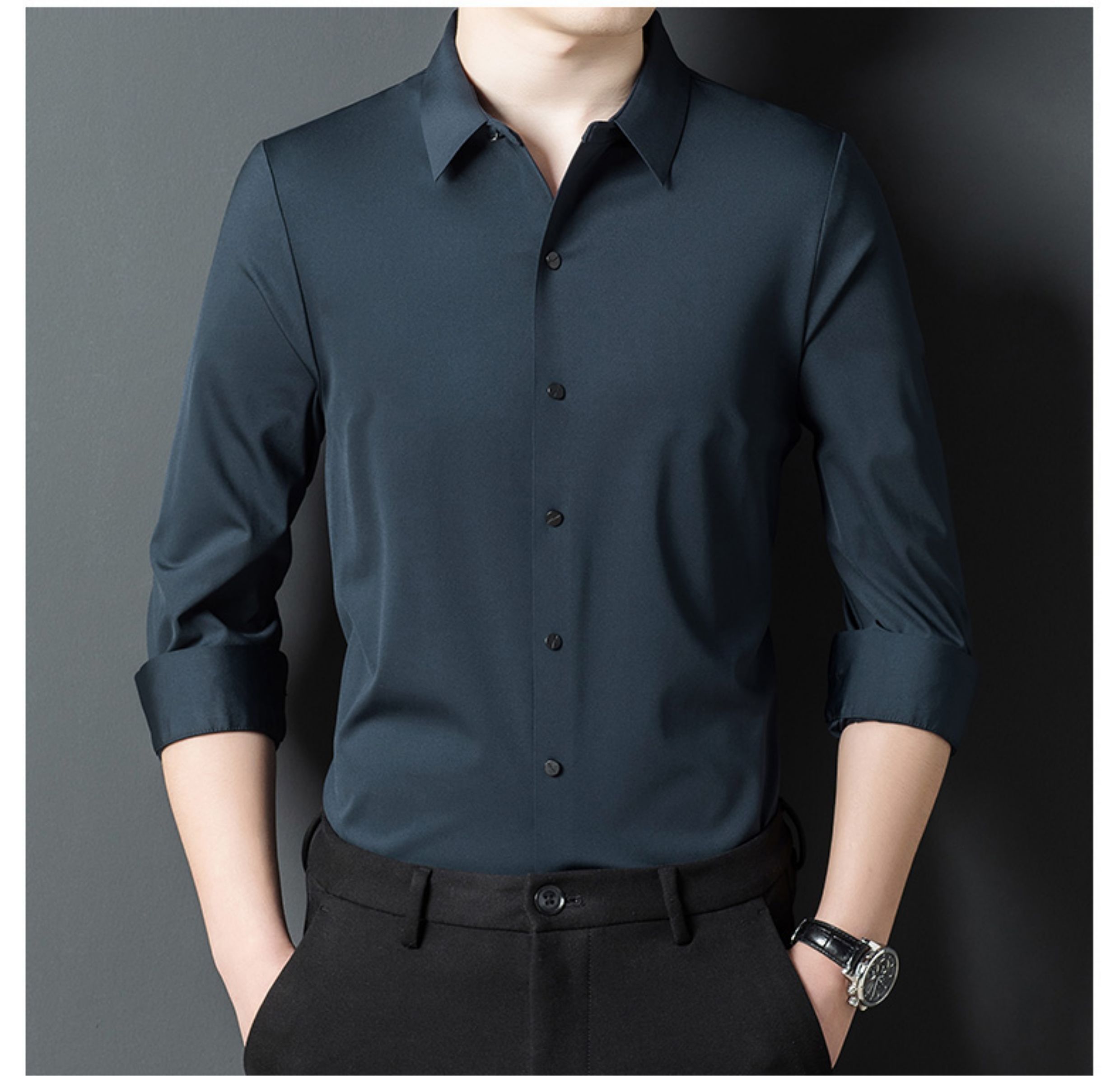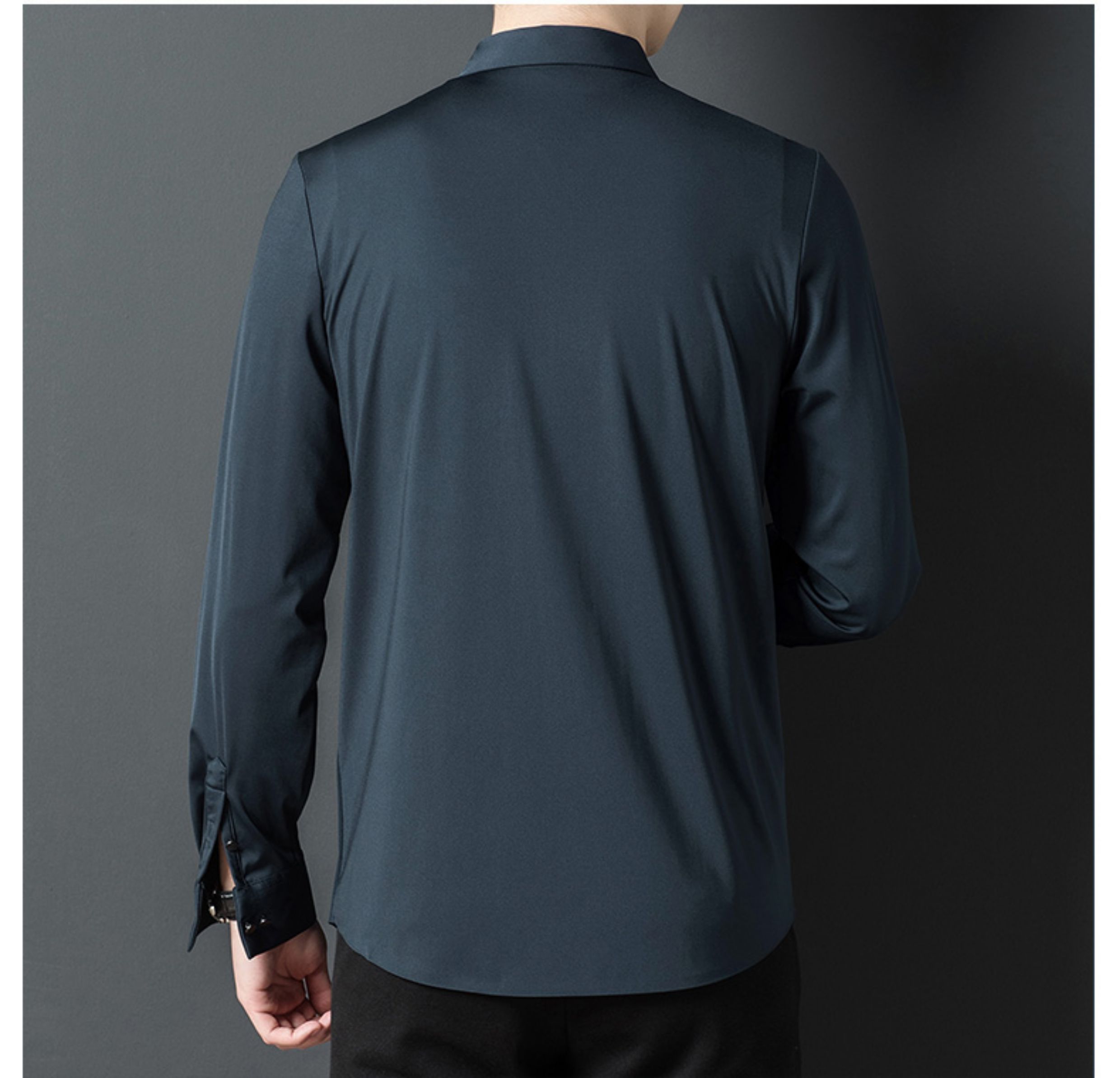 罗蒙无痕弹力衬衫男长袖春秋季新款垂感商务休闲免烫中年衬衣男士