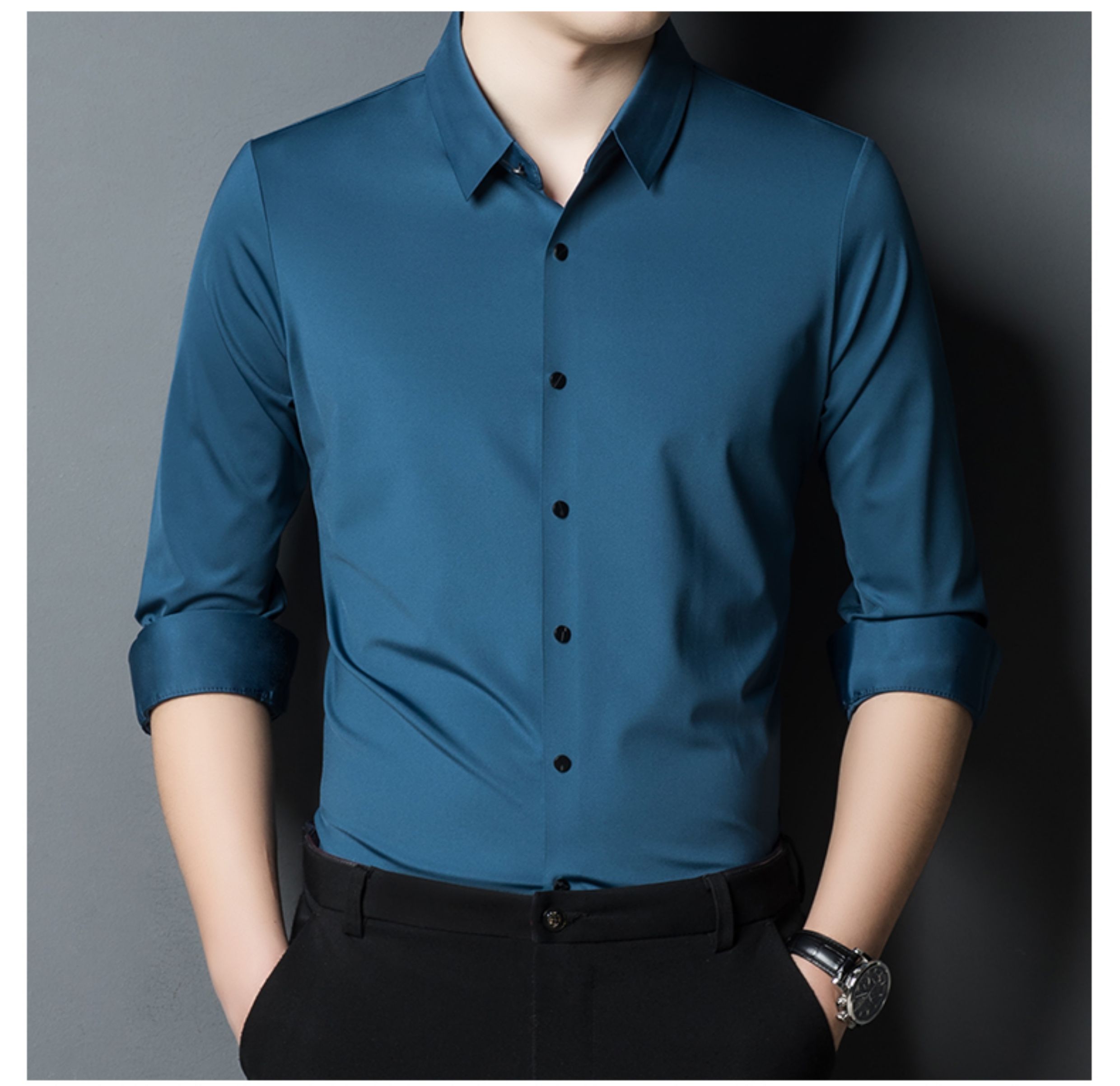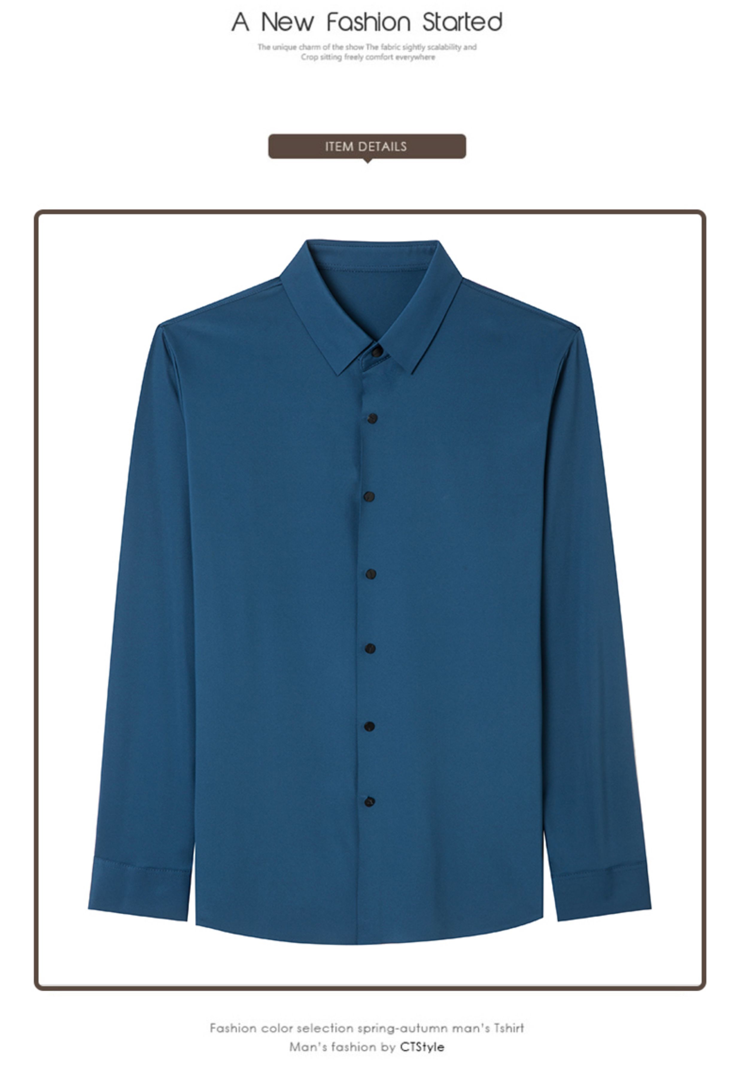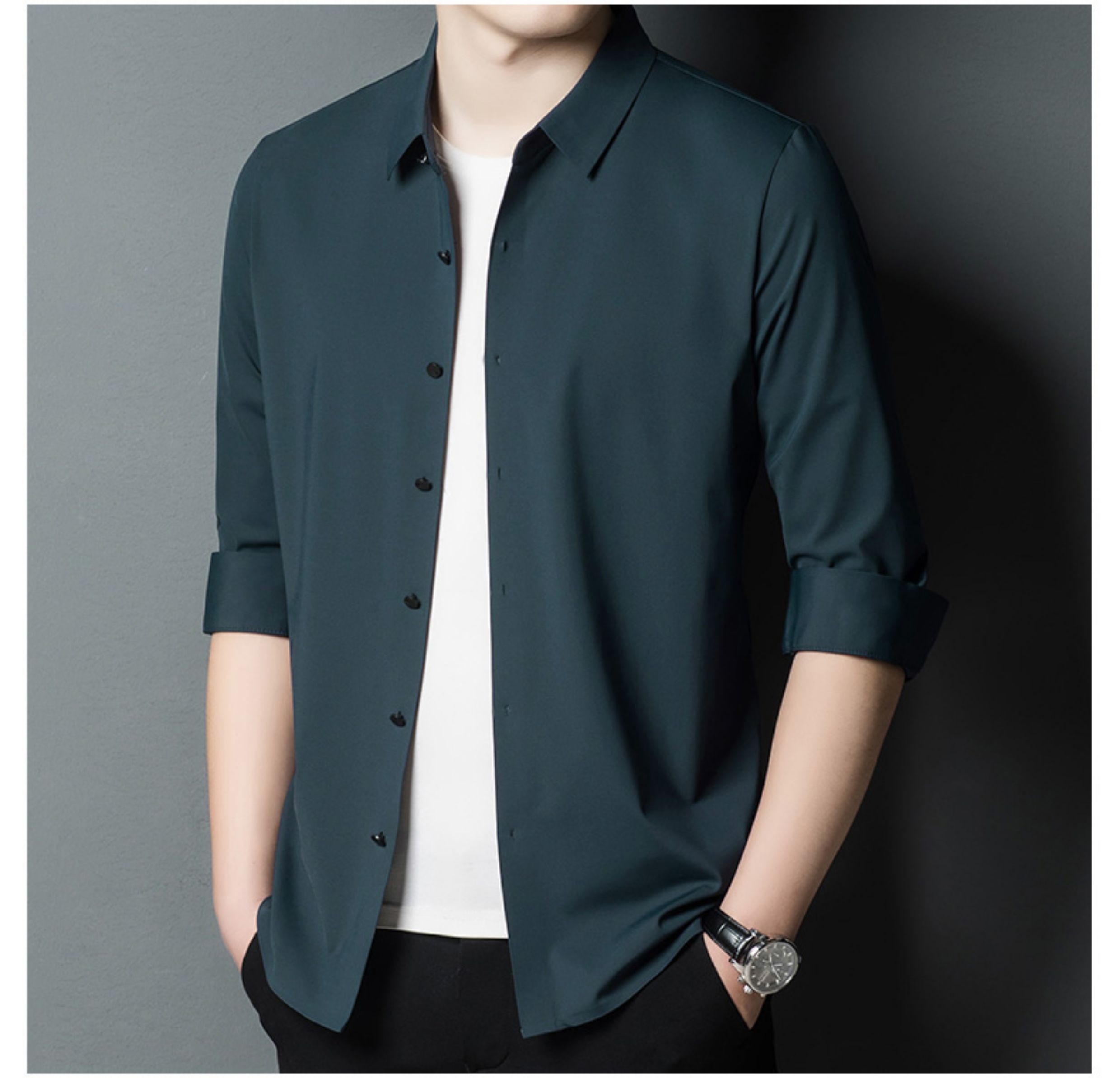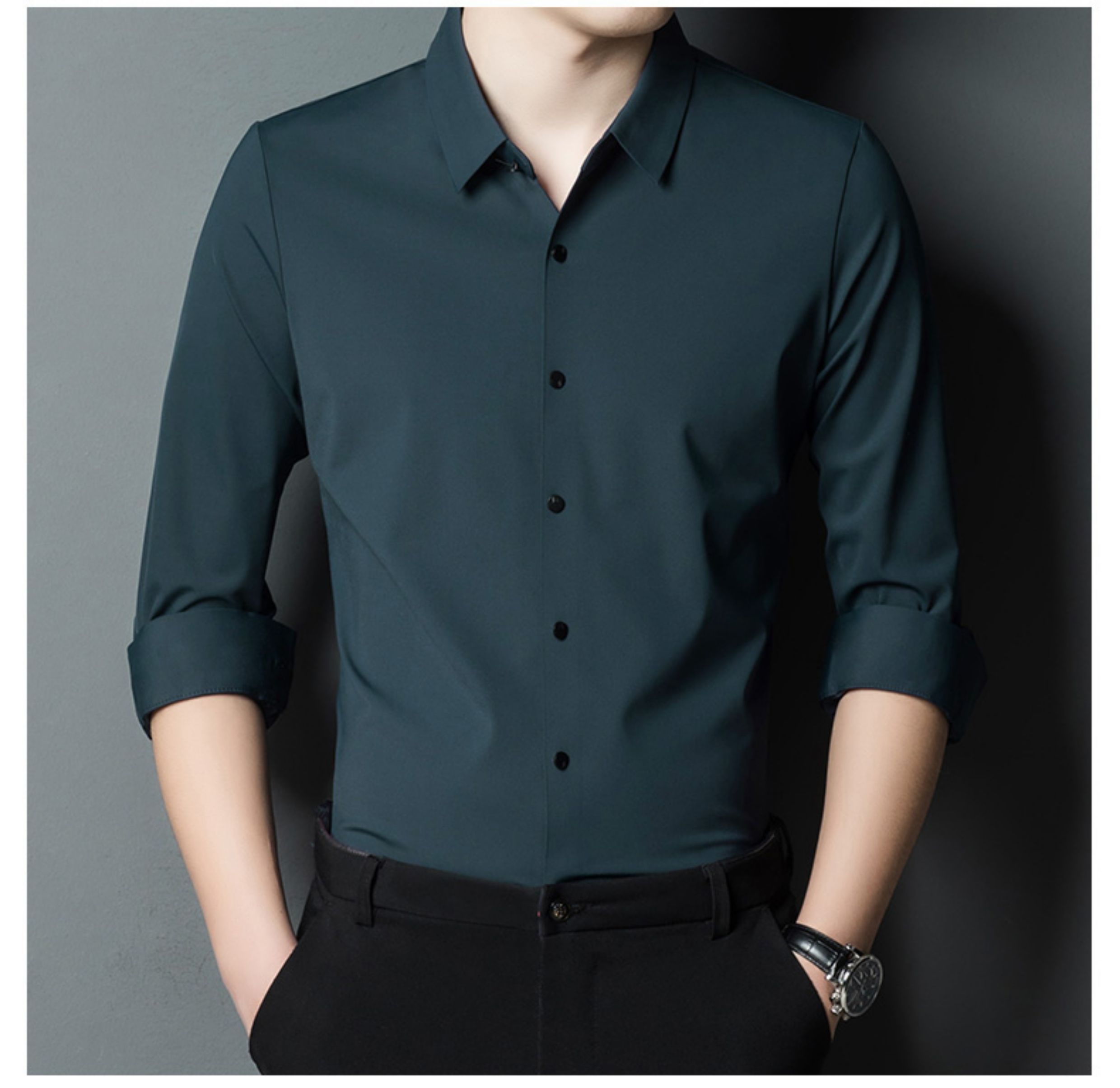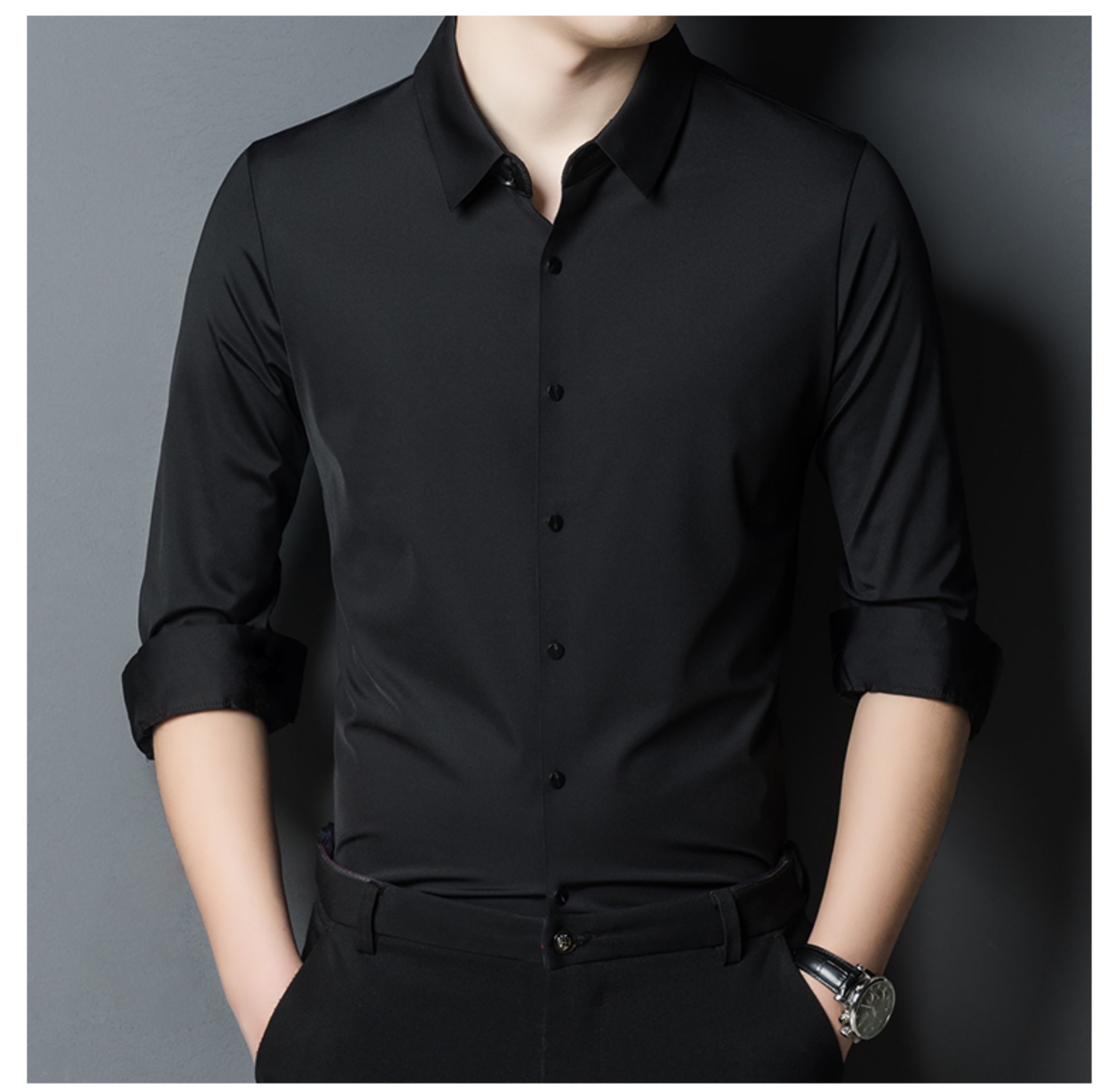 罗蒙无痕弹力衬衫男长袖春秋季新款垂感商务休闲免烫中年衬衣男士