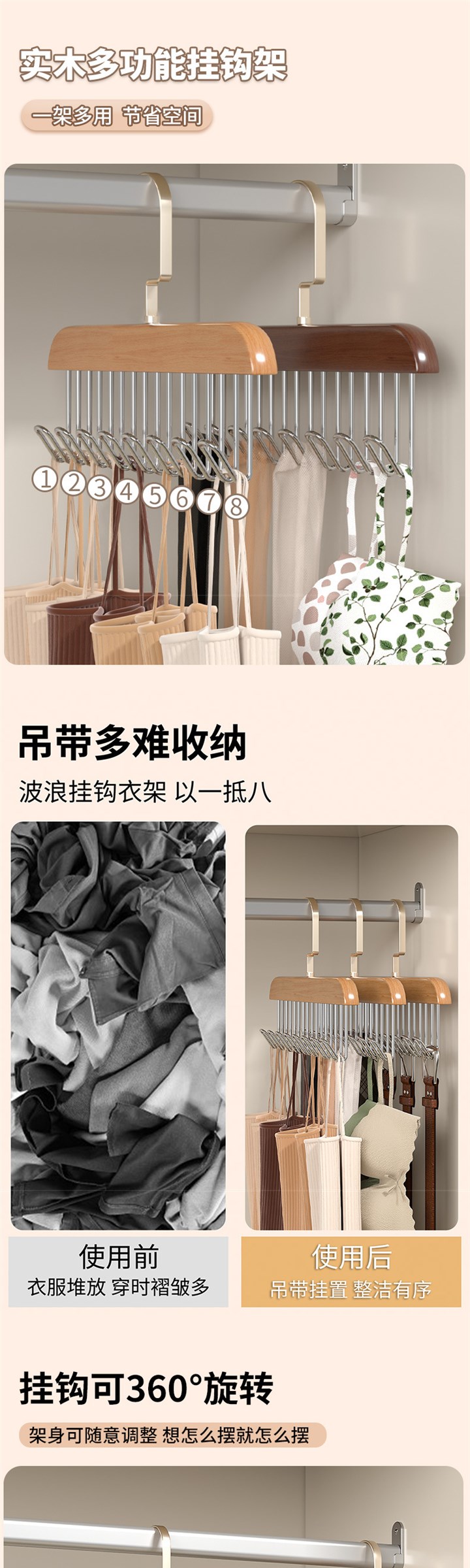 木质吊带衣架多功能内衣背心收纳神器家用宿舍实木挂钩波浪晾衣架