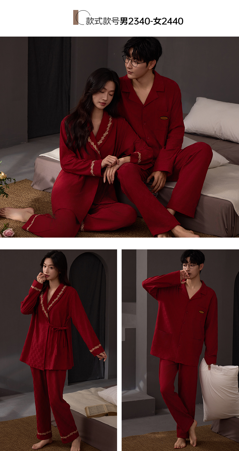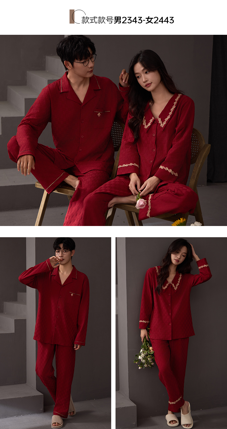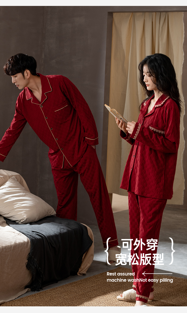 思馨坊红色睡衣女春秋款结婚新婚情侣纯棉家居服男士本命年可外穿
