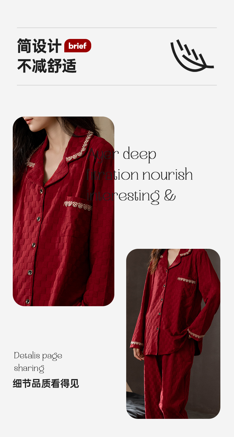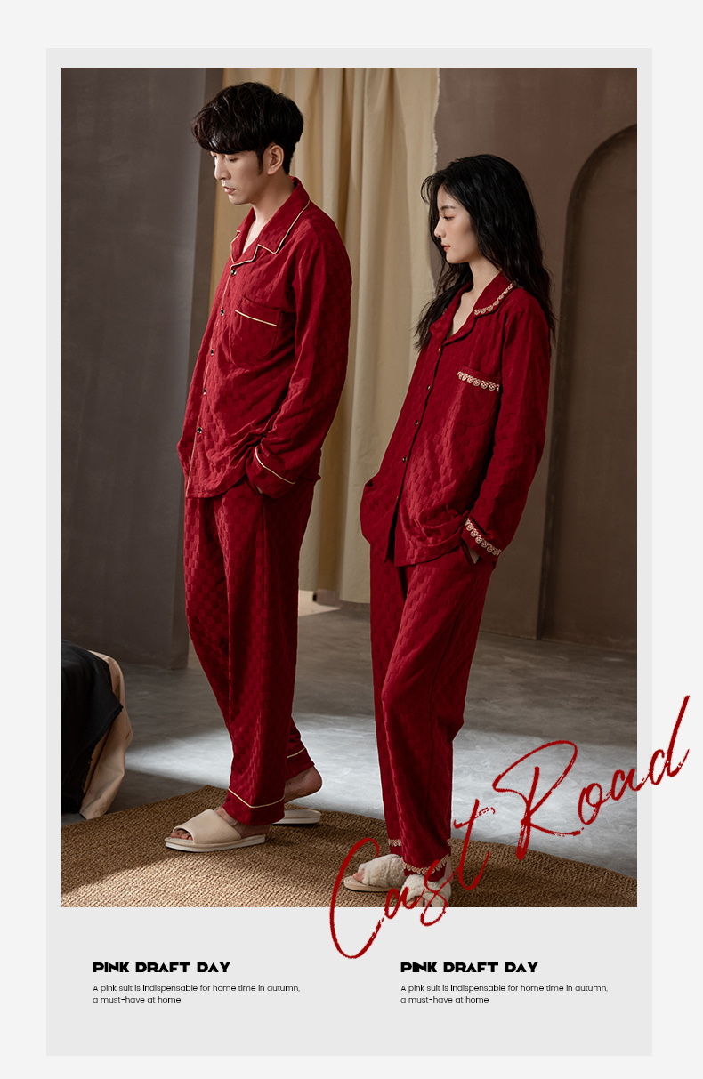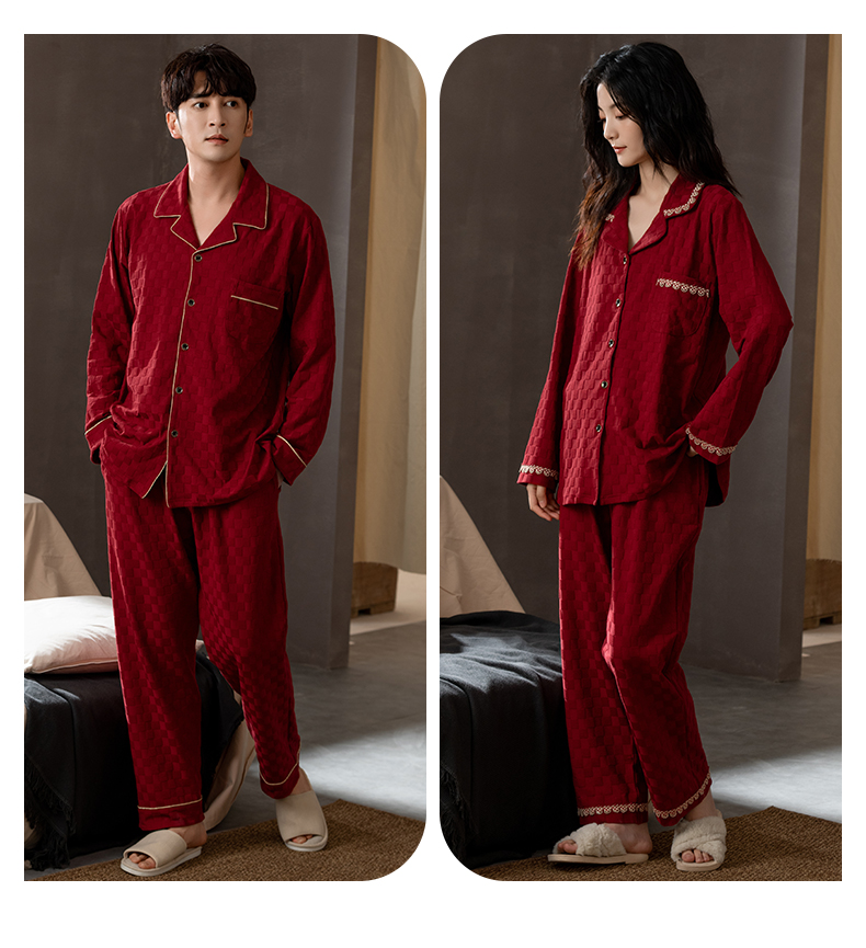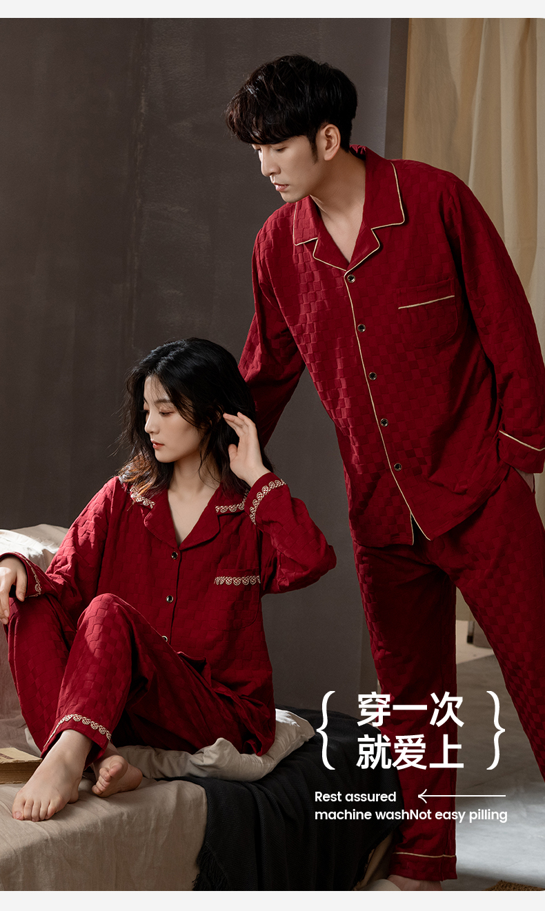 思馨坊红色睡衣女春秋款结婚新婚情侣纯棉家居服男士本命年可外穿
