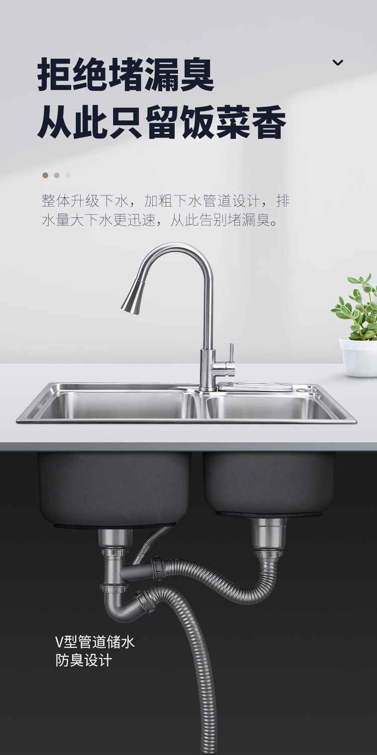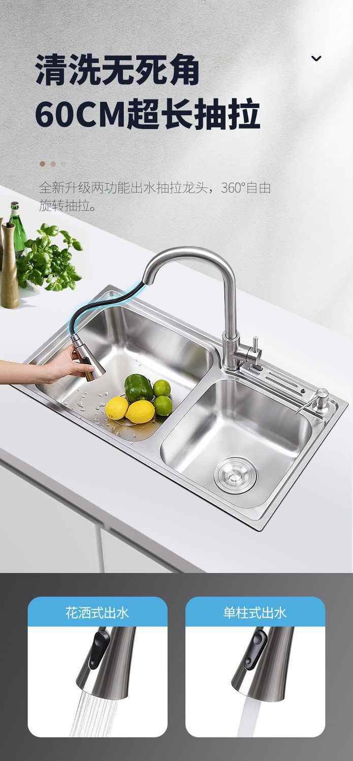 水斗台盆家用厨房洗手池洗菜盆一体全304不锈钢水槽双槽大尺寸