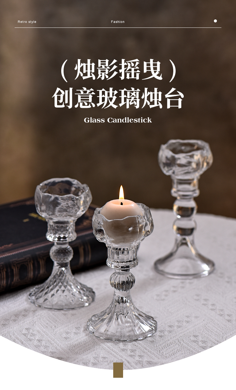 欧式复古ins高脚玻璃烛台家用蜡烛底座浪漫烛光晚餐拍照道具摆件