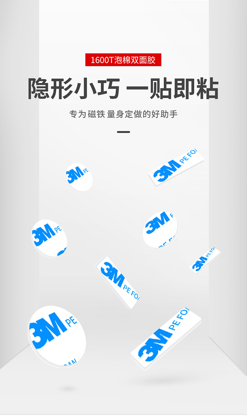 3M1600t磁铁双面胶强力高粘度背胶小贴纸贴片圆形长方形条型贴胶