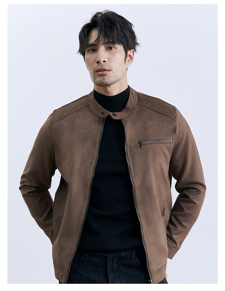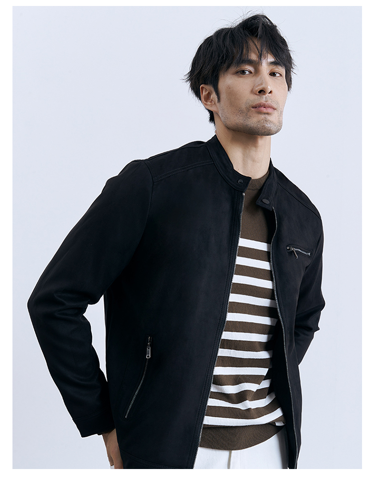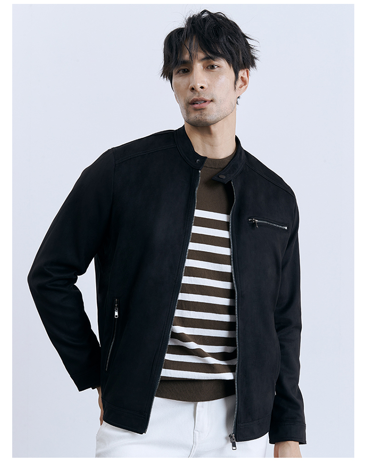 夏季雅痞绅装 麂皮绒休闲立领夹克男士百搭复古黑色皮衣拉链外套