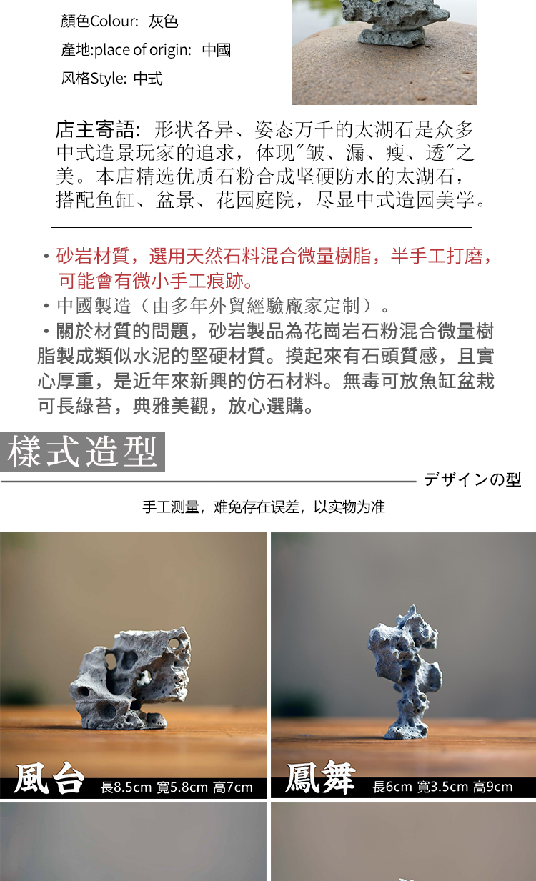 仿真太湖石微型假山摆件盆景绿植鱼缸水族创意中式造景户外装饰
