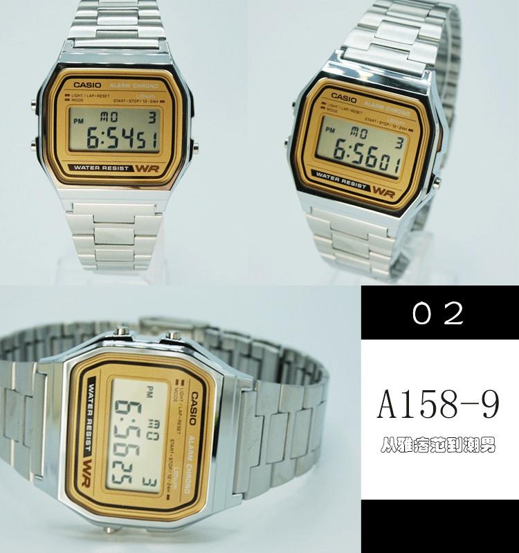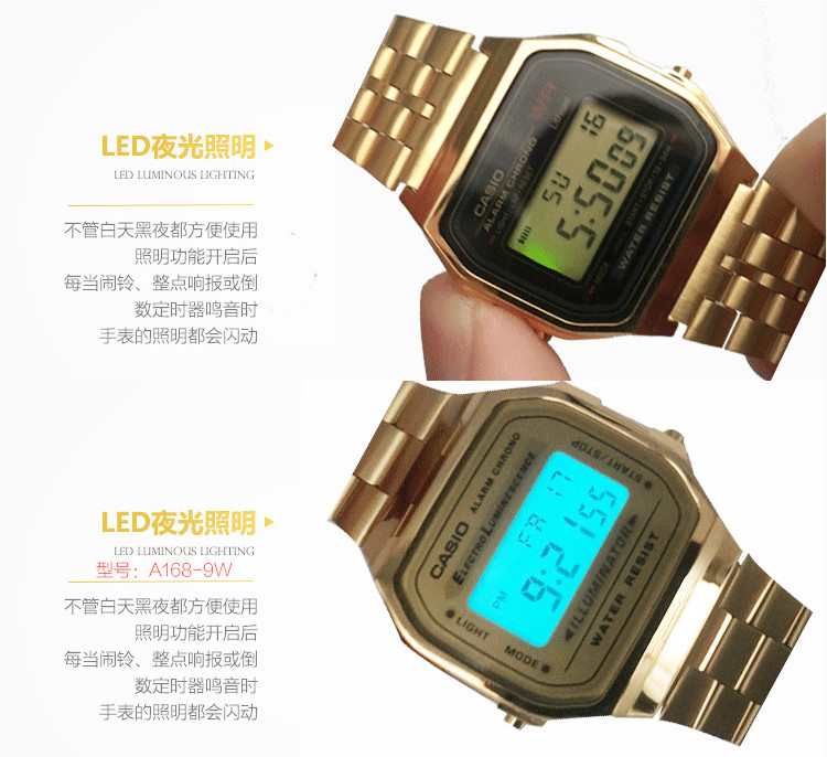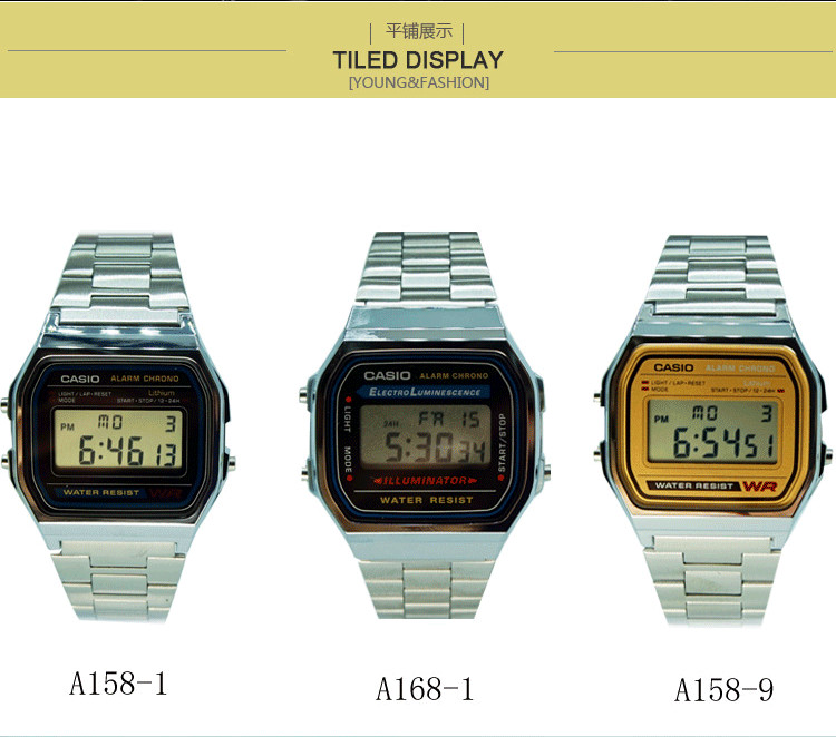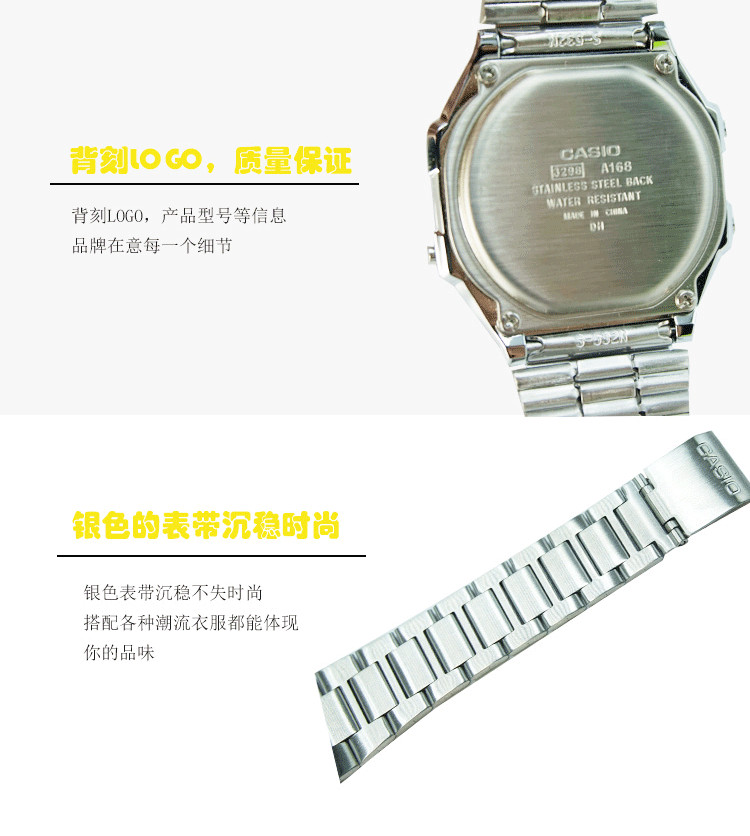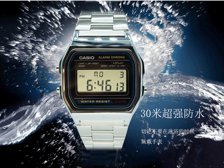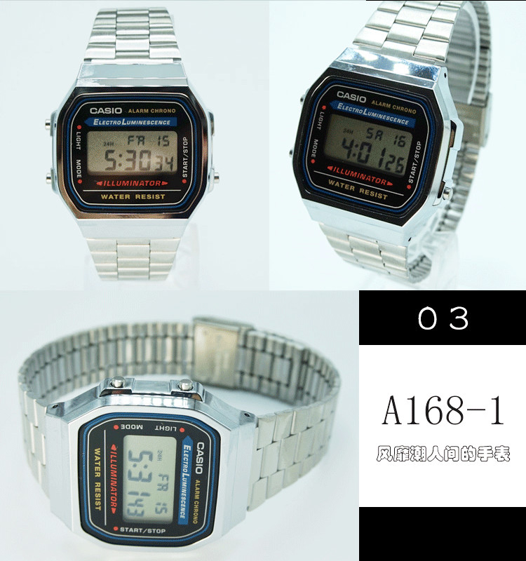 卡西欧CASIO A168WA-3A新款方块七年电力带闹钟秒表防水电子手表