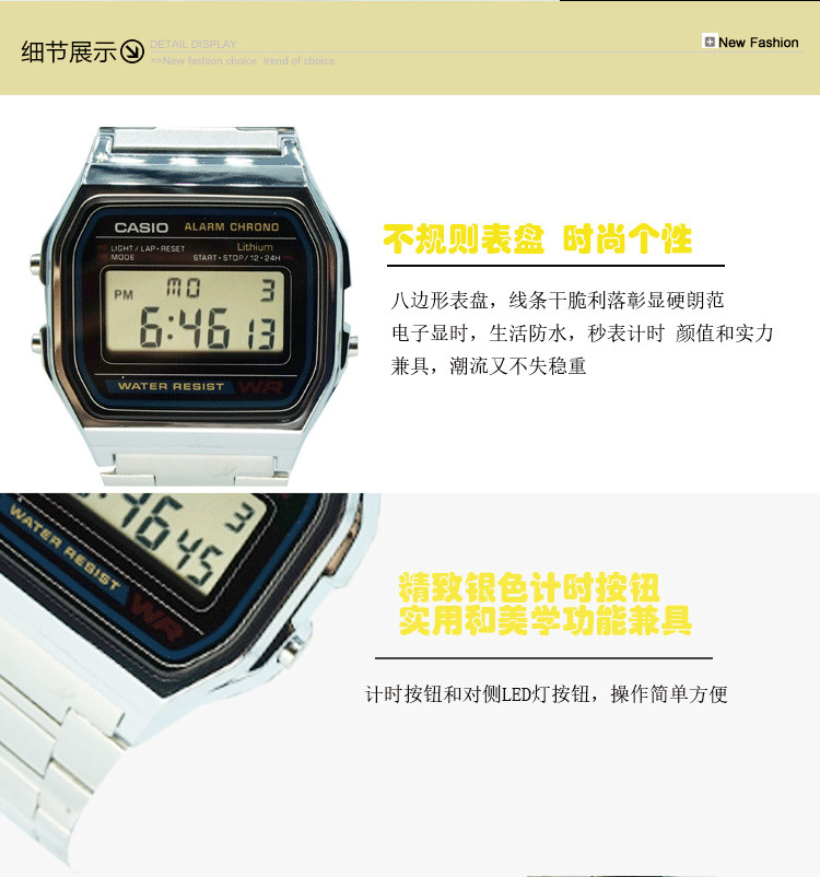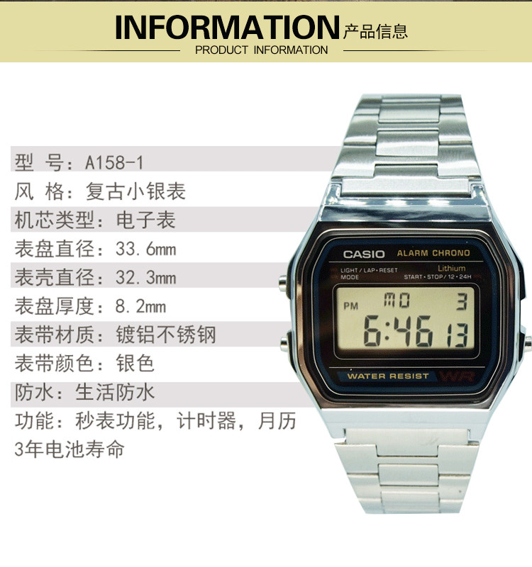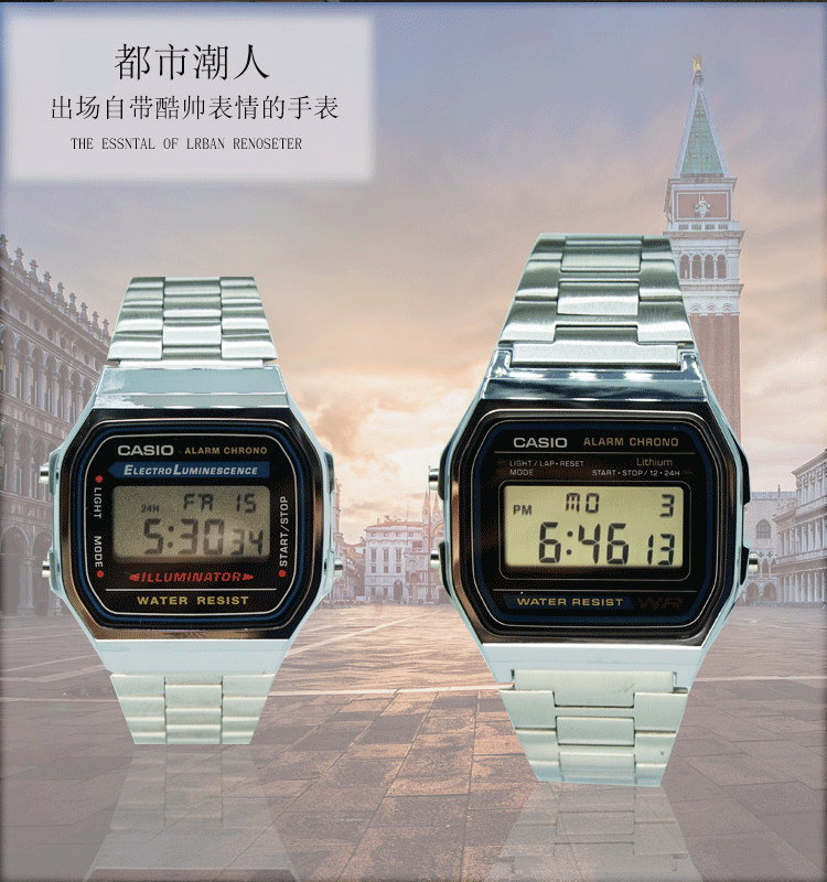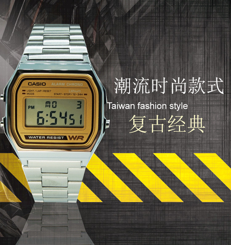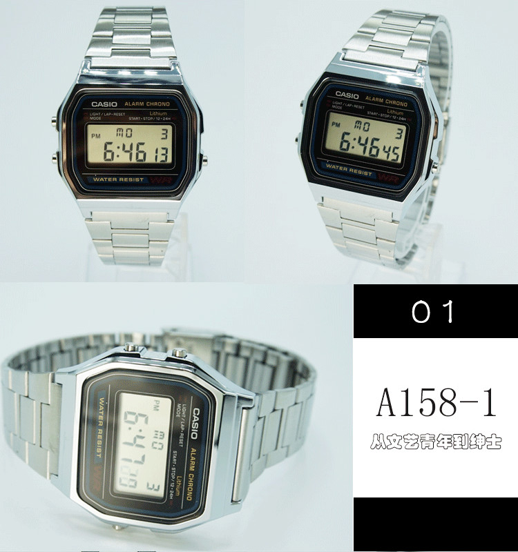 卡西欧CASIO A168WA-3A新款方块七年电力带闹钟秒表防水电子手表